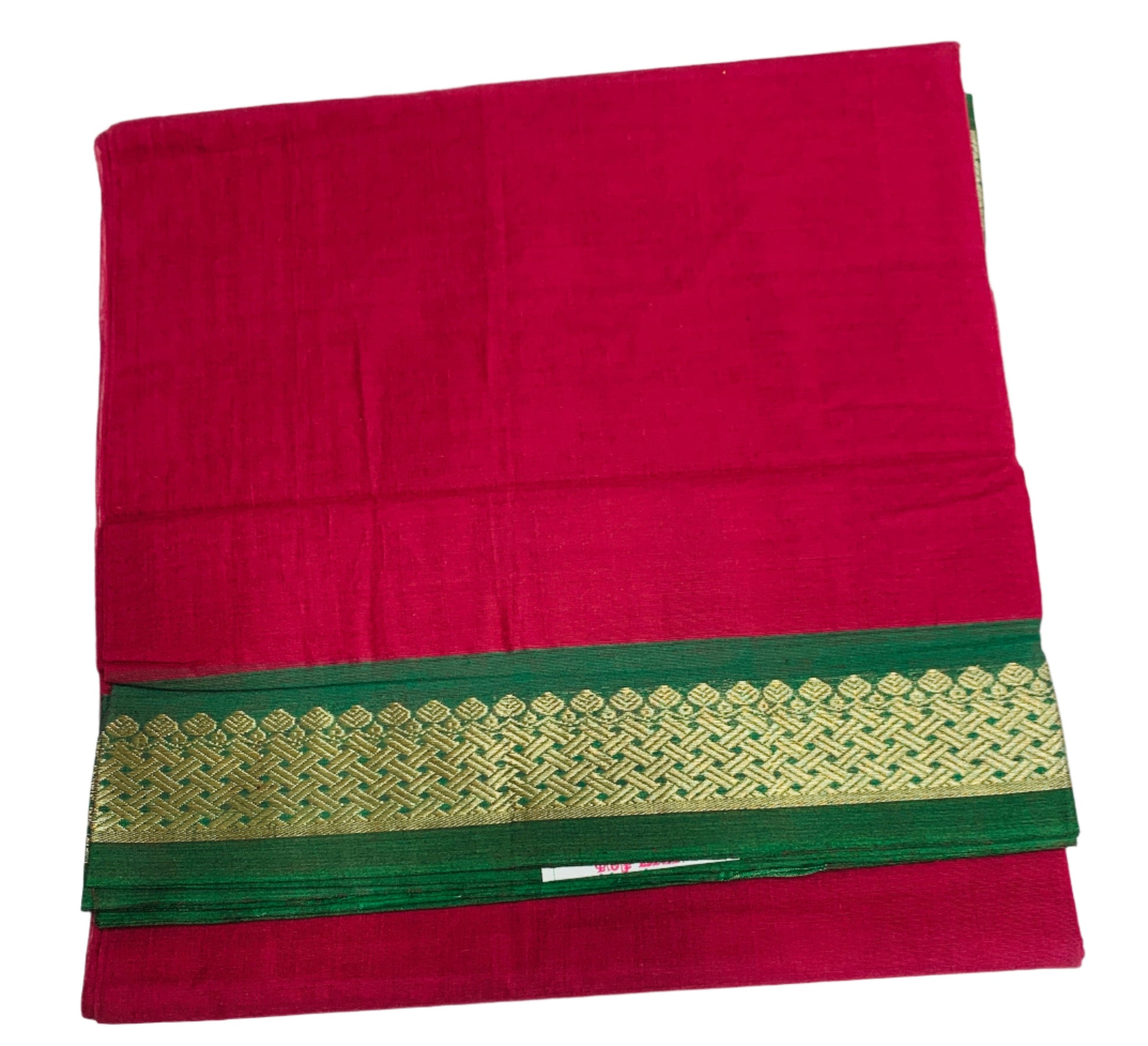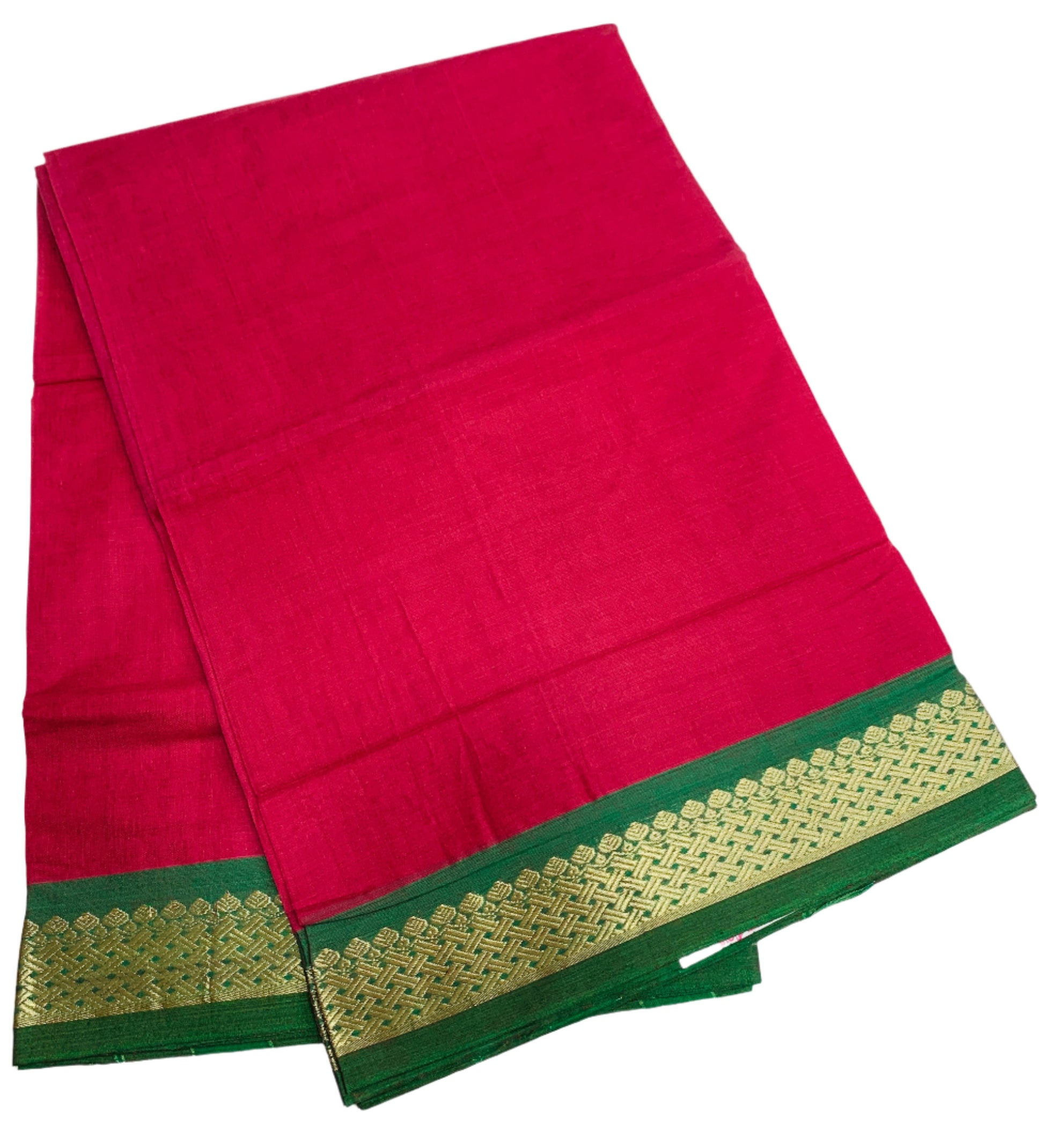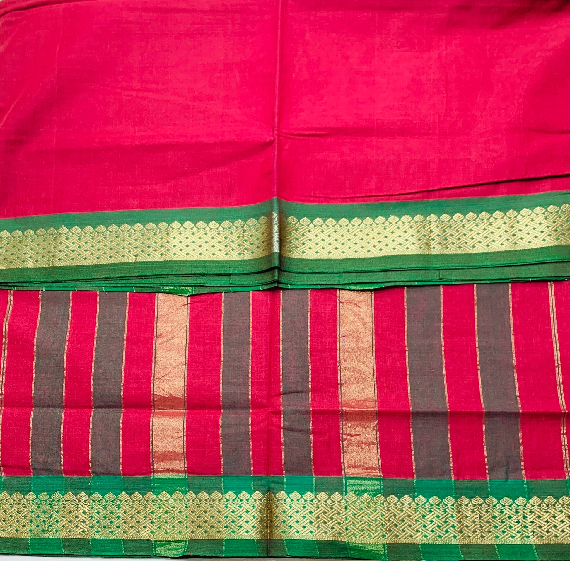 Chettinad Cotton Saree Maroon Shade with Green Border
