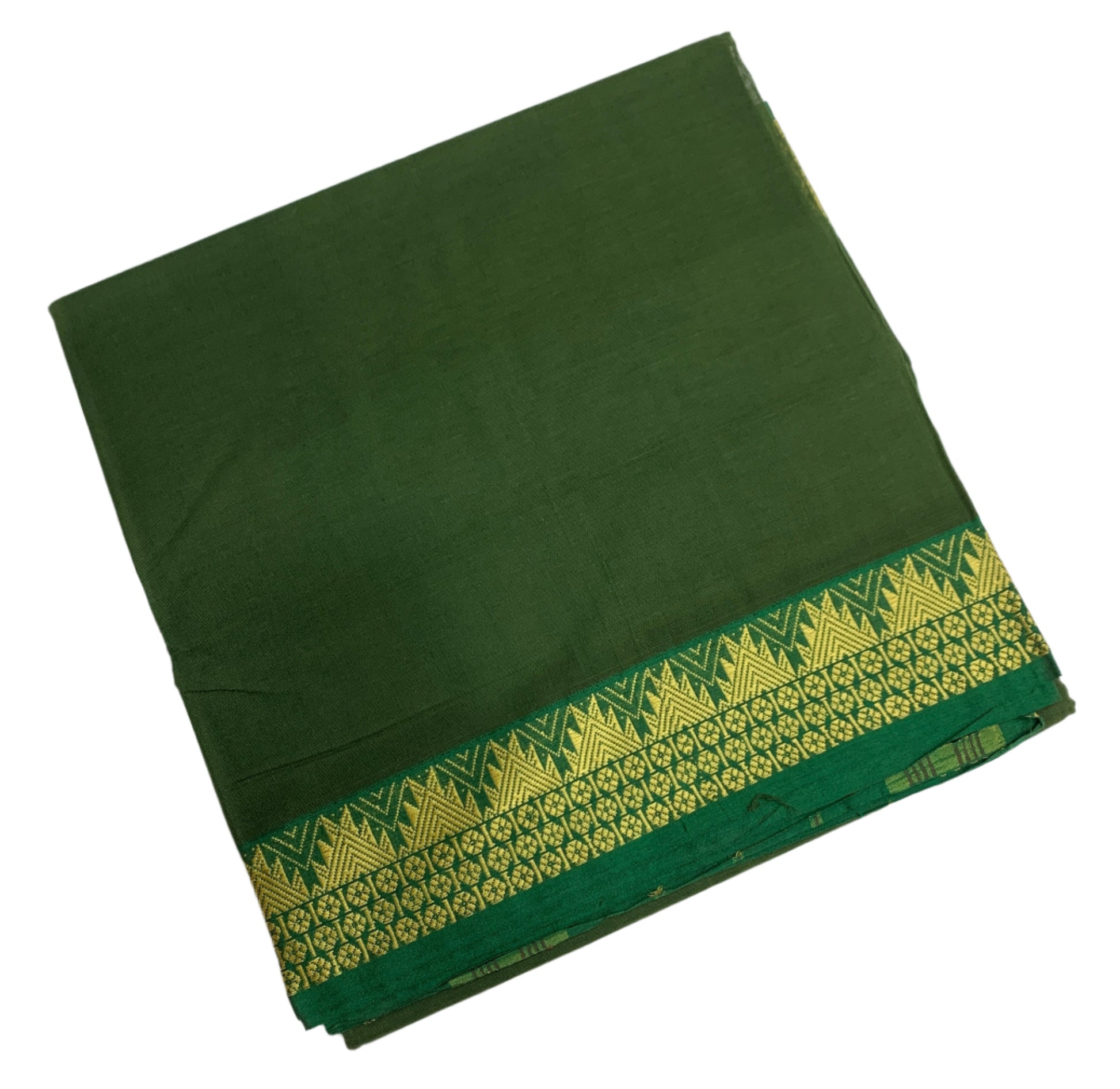 Chettinad Cotton Saree Olive Green Colour with Gopuram Design Border.