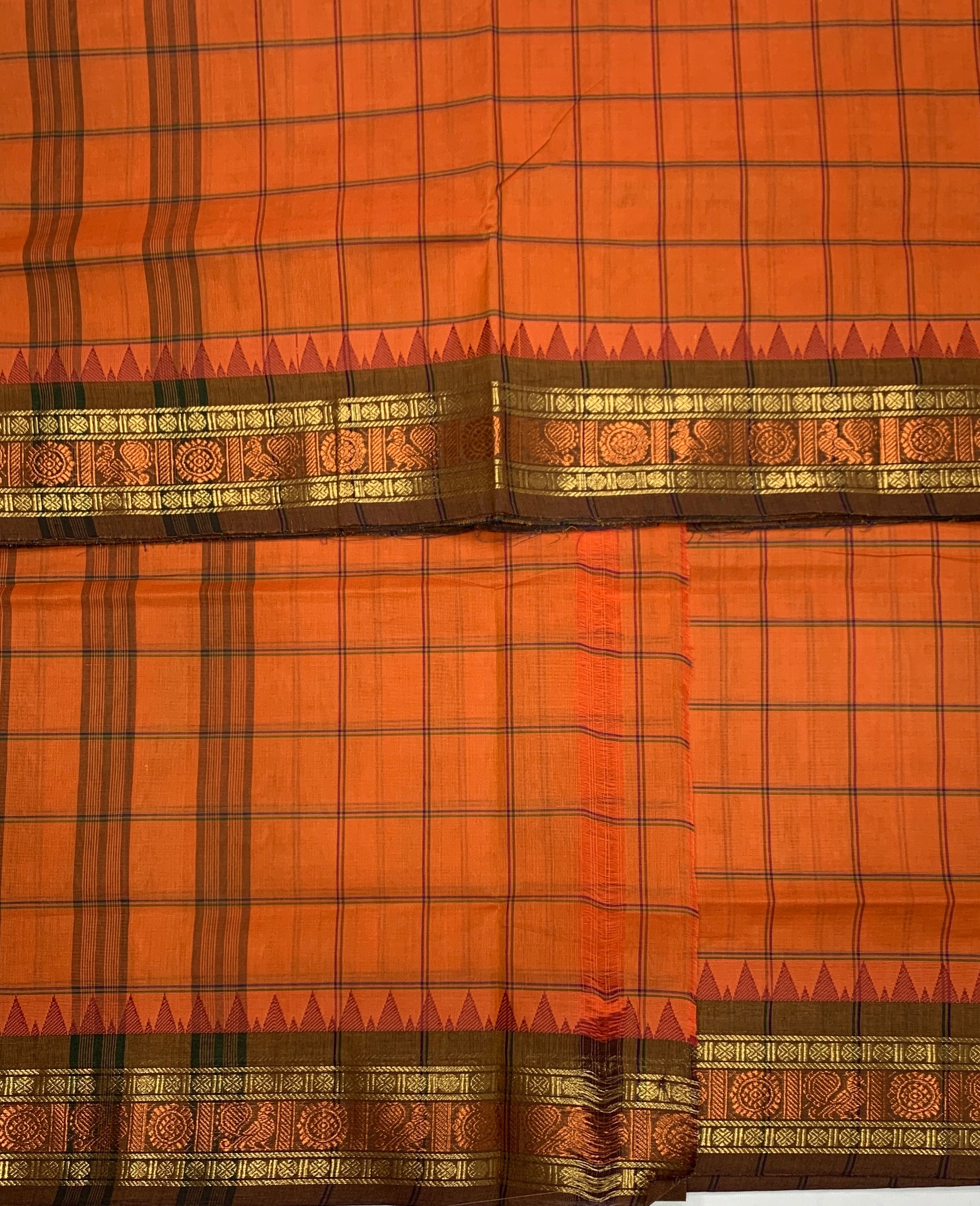 Chettinad Cotton Saree Orange Shade with Brown Border