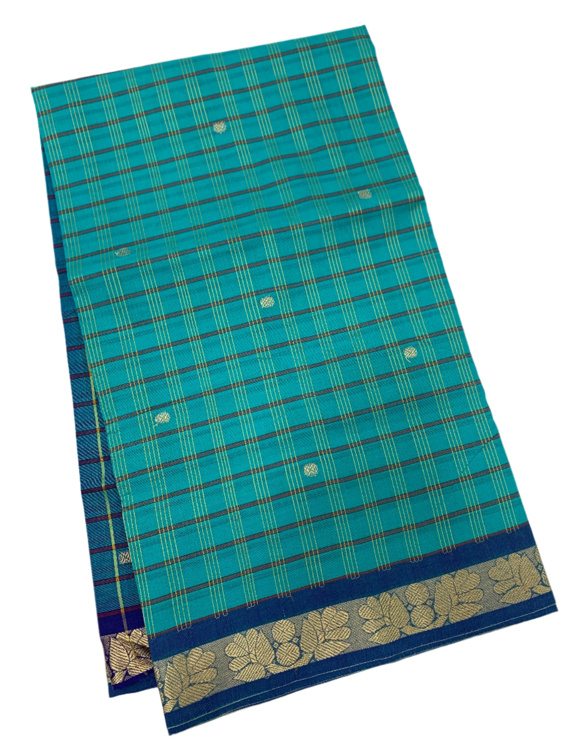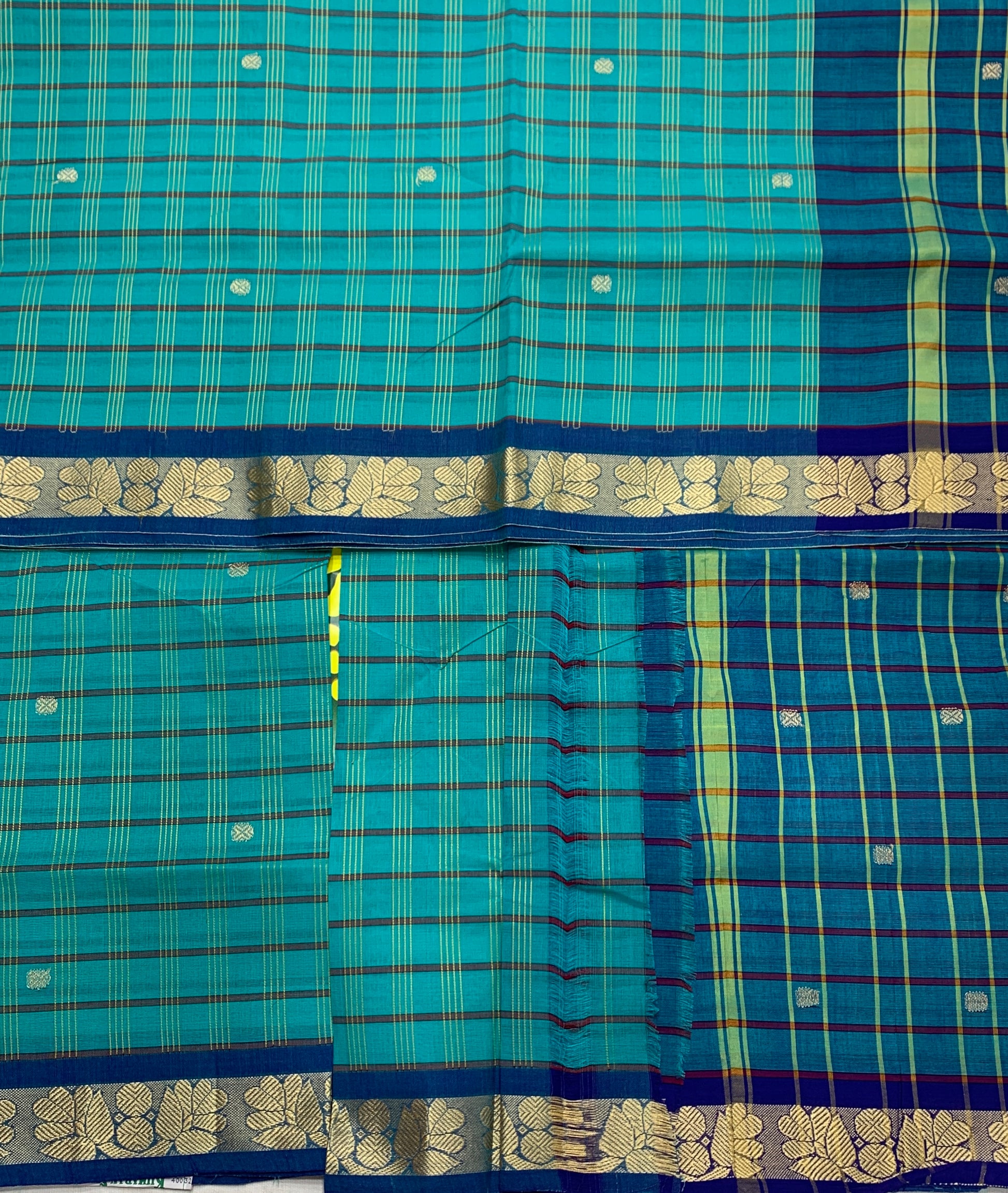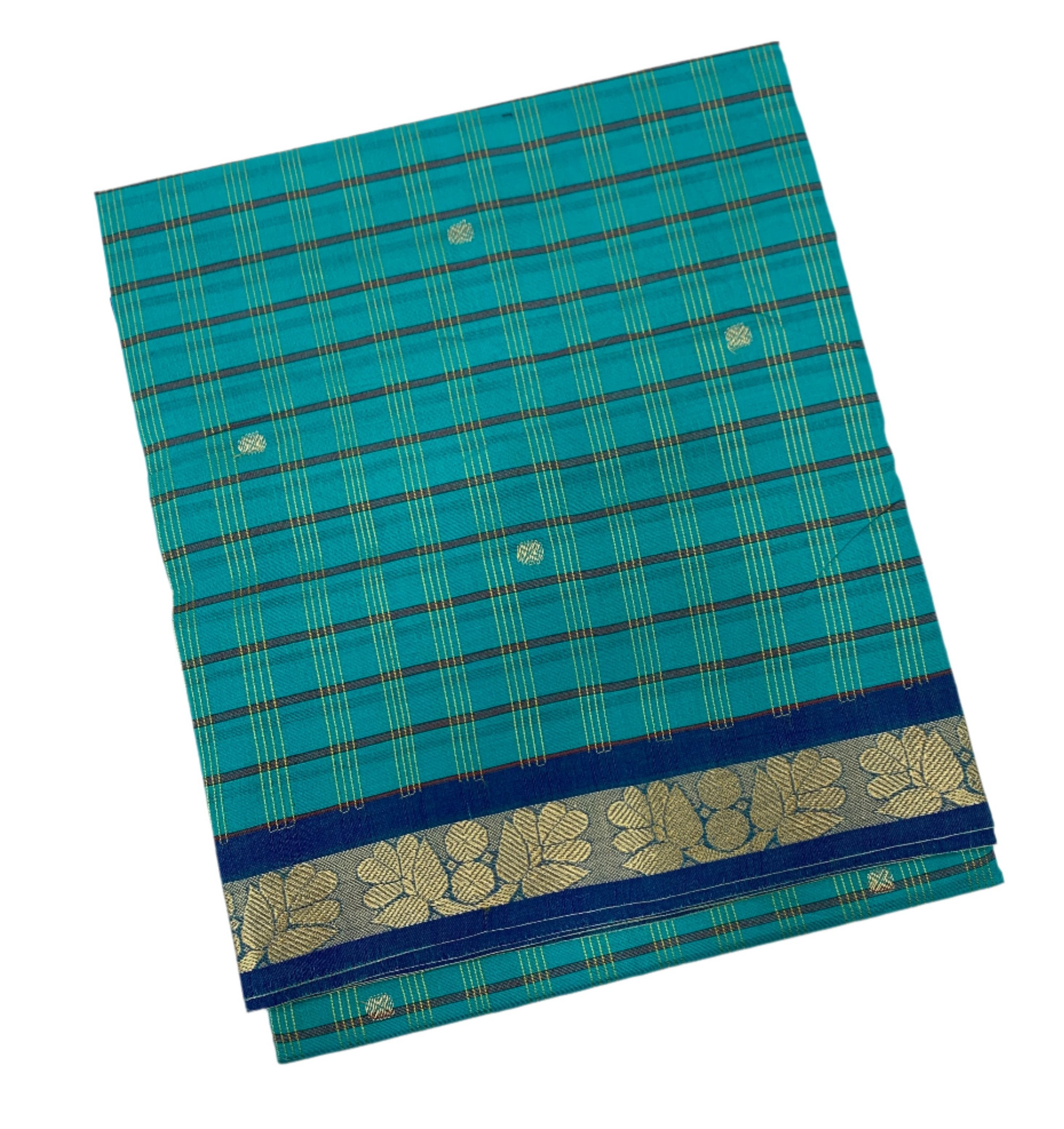 Beautiful Rama Blue shade Chettinad cotton Saree with Blue Border.Light weight and easy to drape.