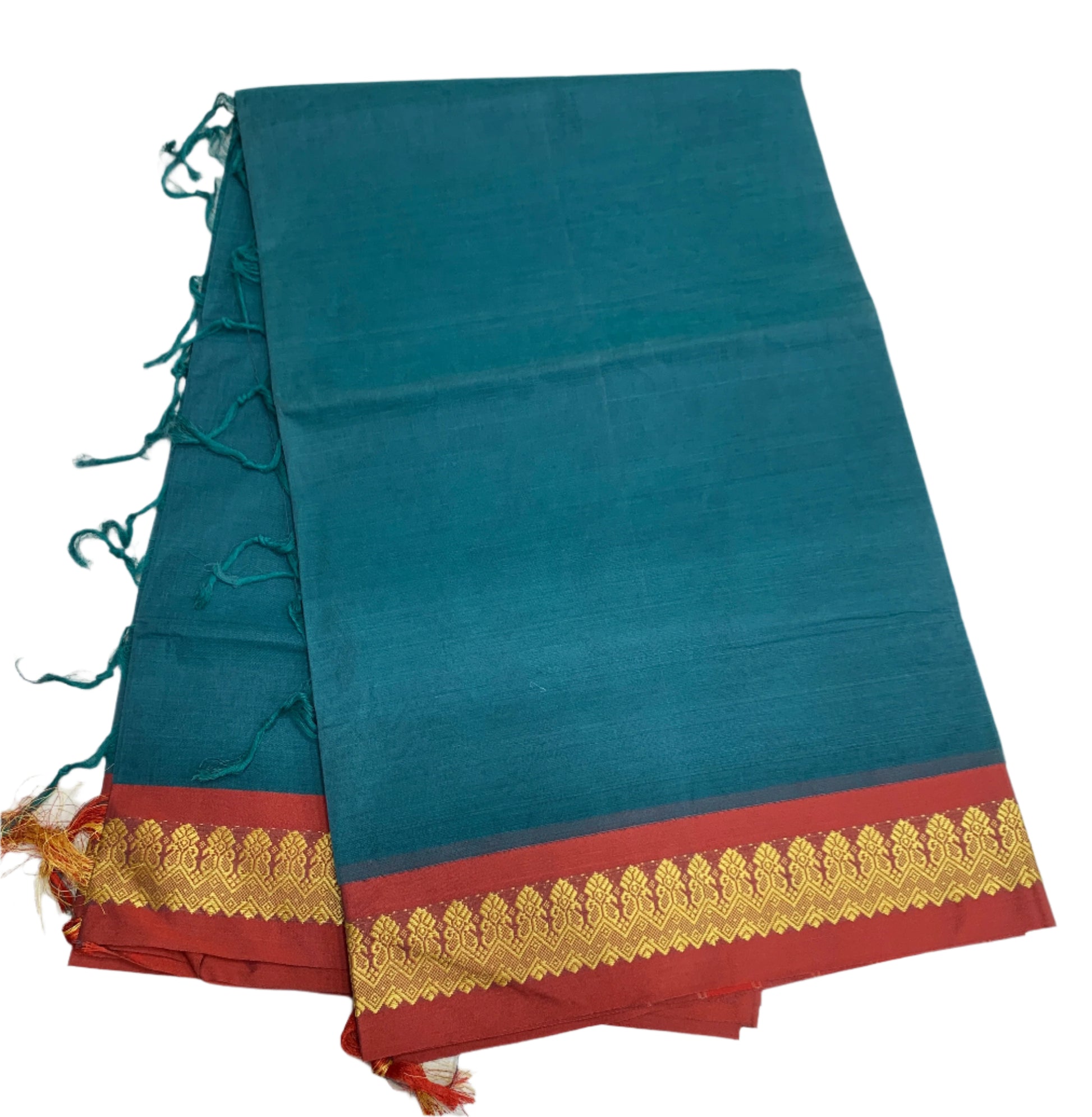 Chettinad Cotton Saree Rama Green Colour with Maroon Border