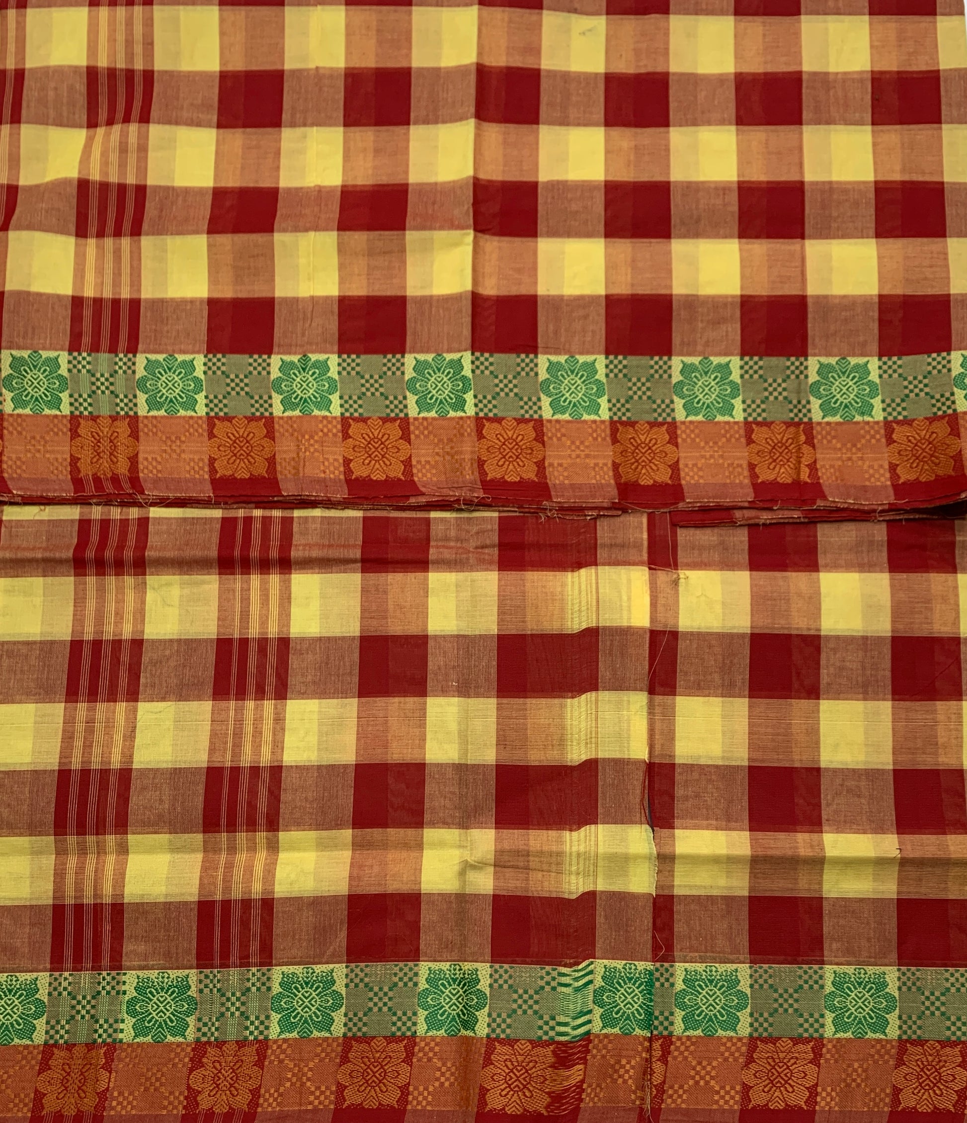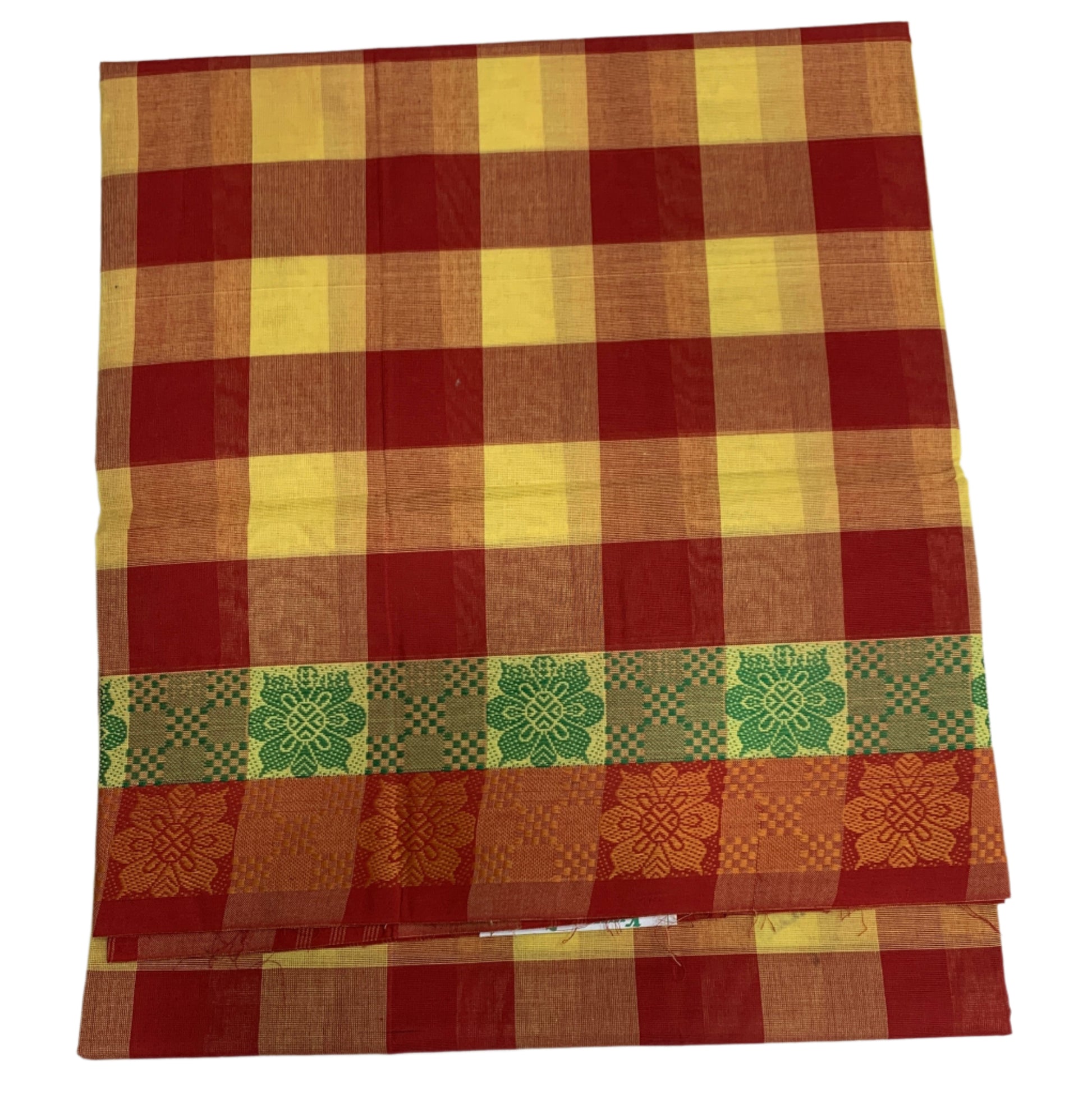 Chettinad Cotton Saree Red and Yellow Colour with Checked Design.