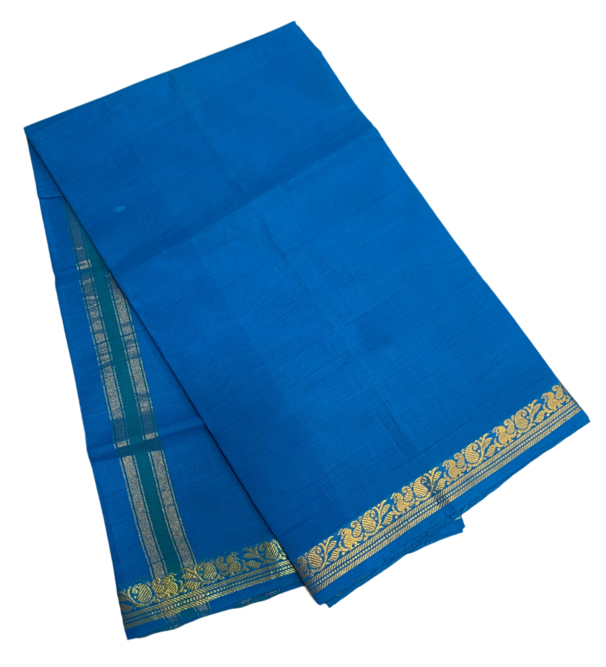 Chettinad Cotton Saree Sky Blue Colour with Mango and Peacock Design