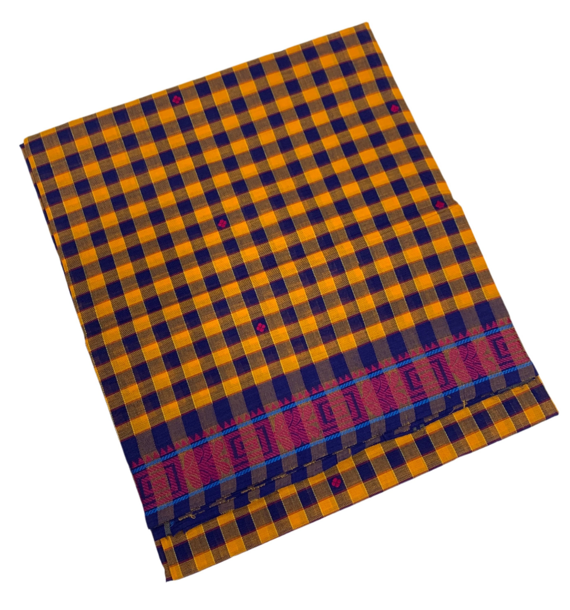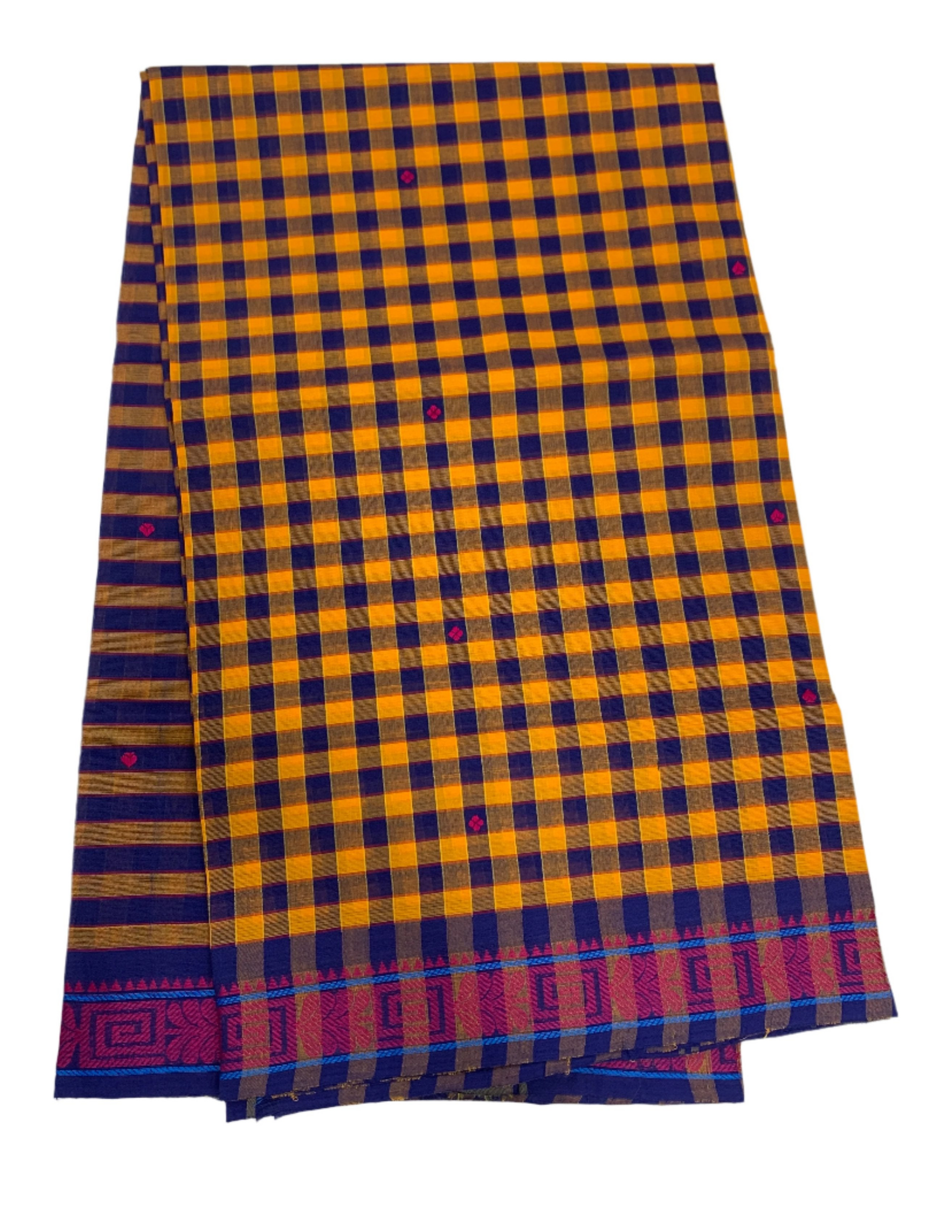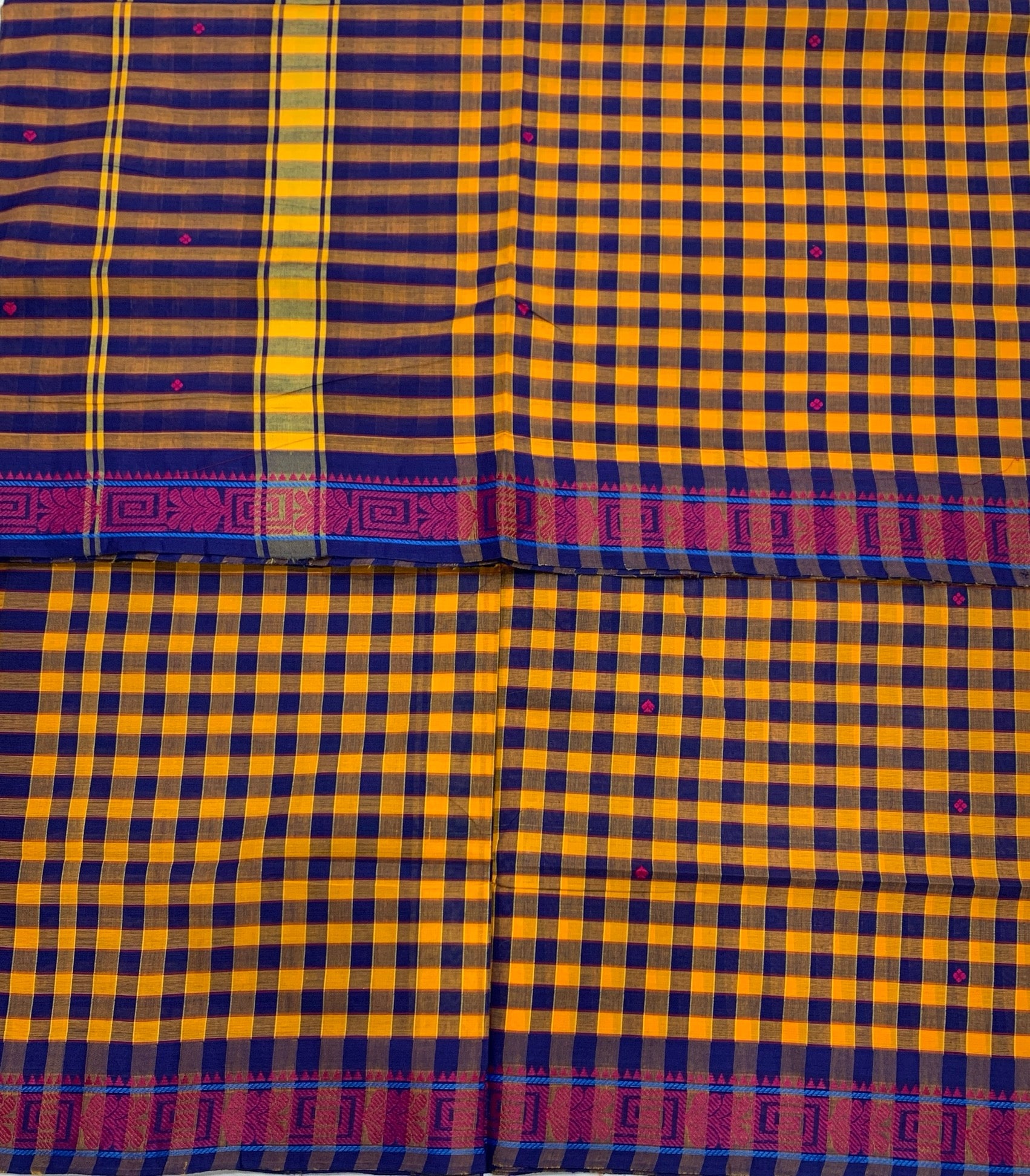 Beautiful Yellow shade Chettinad cotton Saree with Blue Border.Light weight and easy to drape.