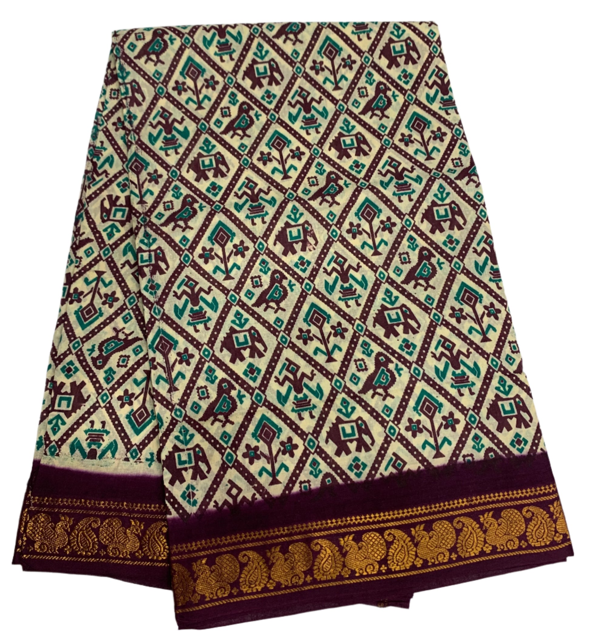 Chettinad Sungudi Cotton Cream Colour with Brown Colour Border