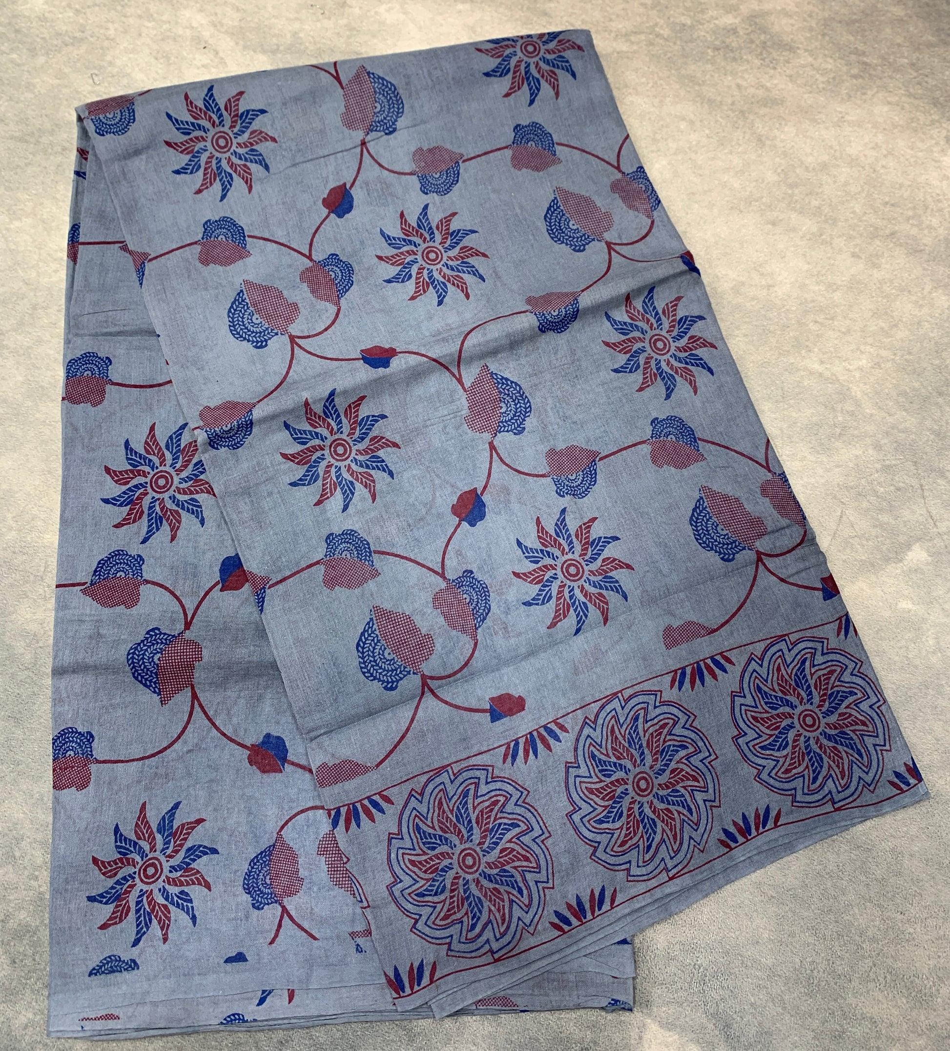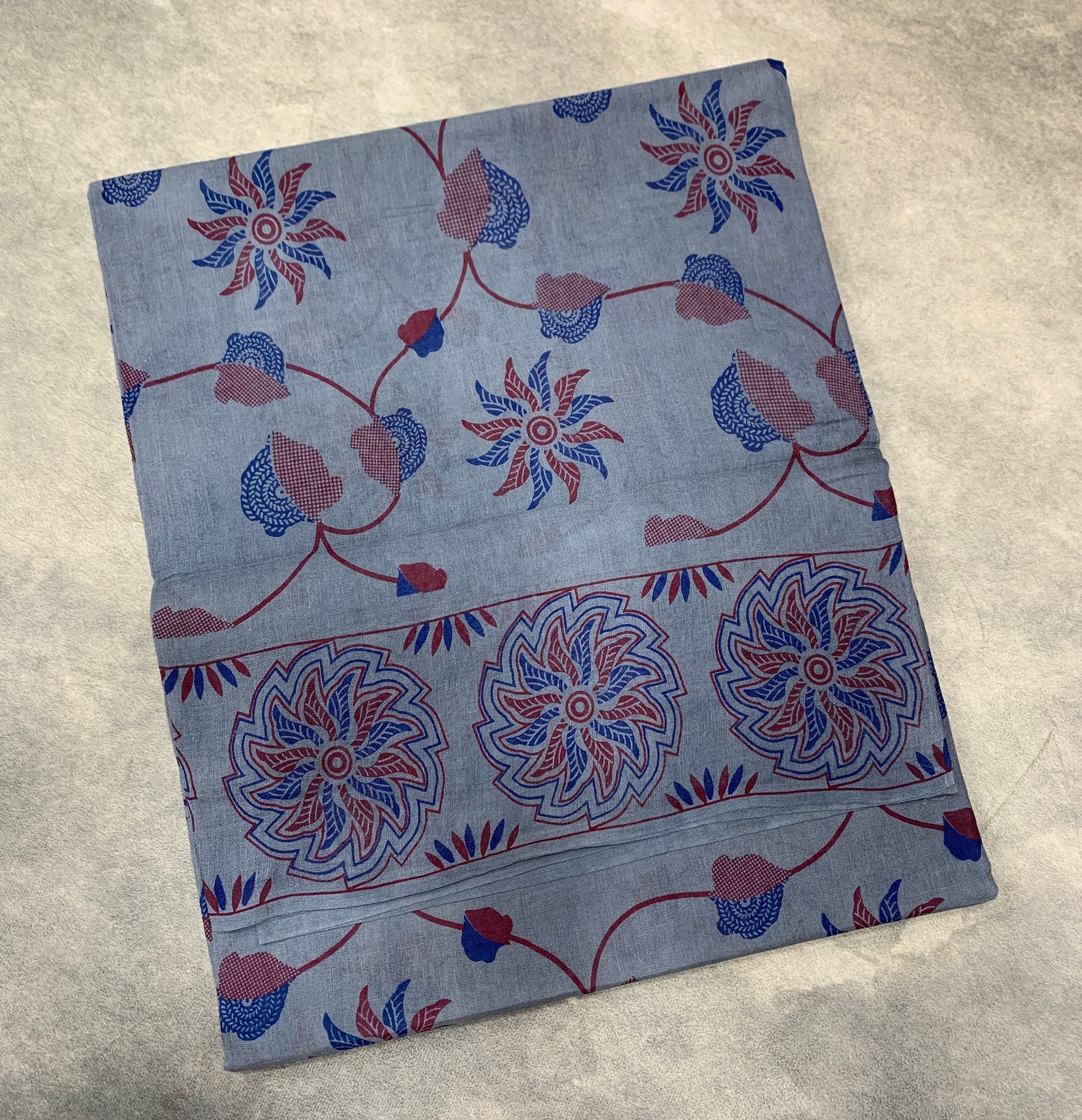 Chettinad Sungudi Cotton Gray Colour with Floral Design