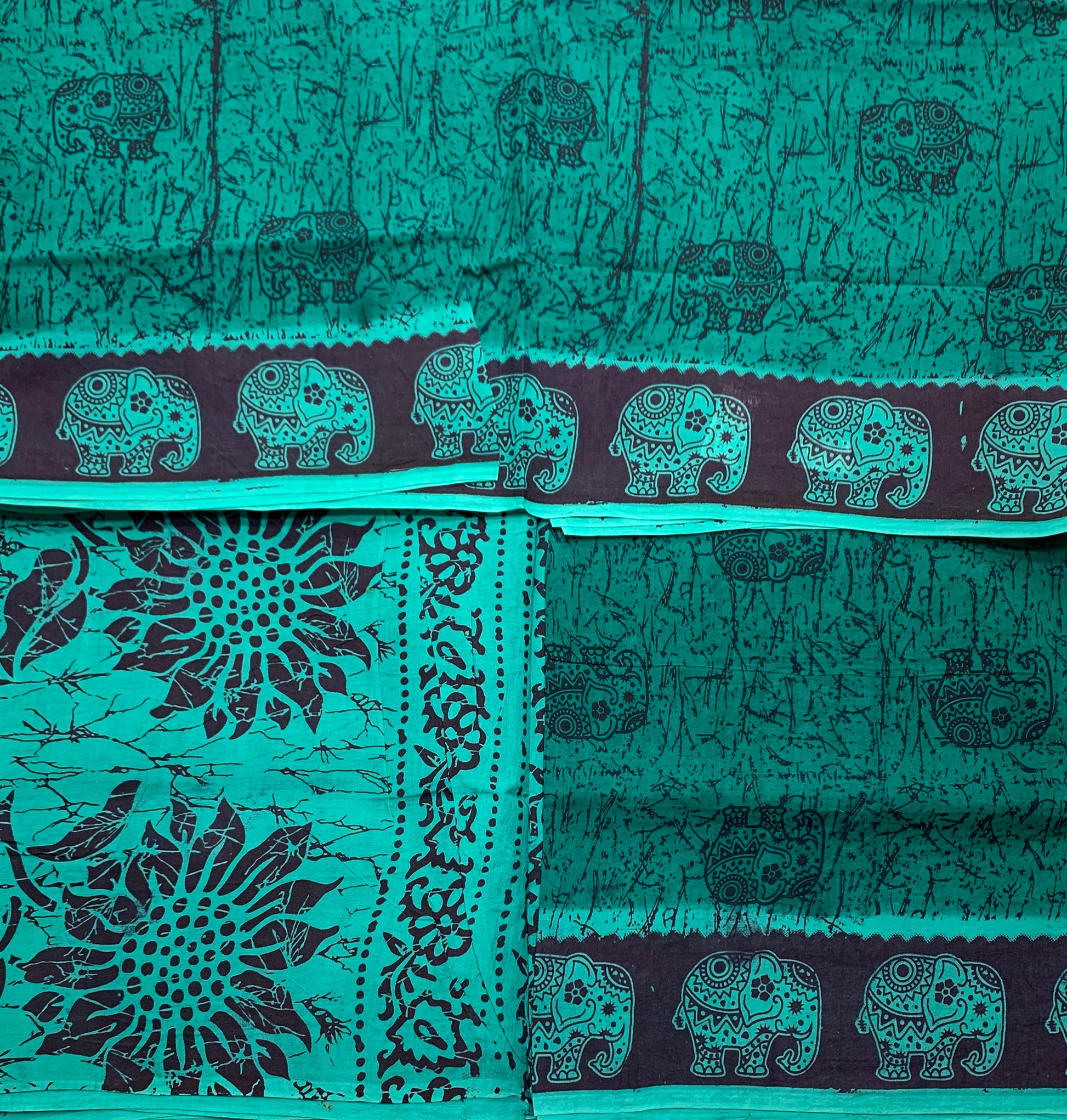 Chettinad Sungudi Cotton Green Colour with Navy Blue Colour Border . Light weight and easy to drape.