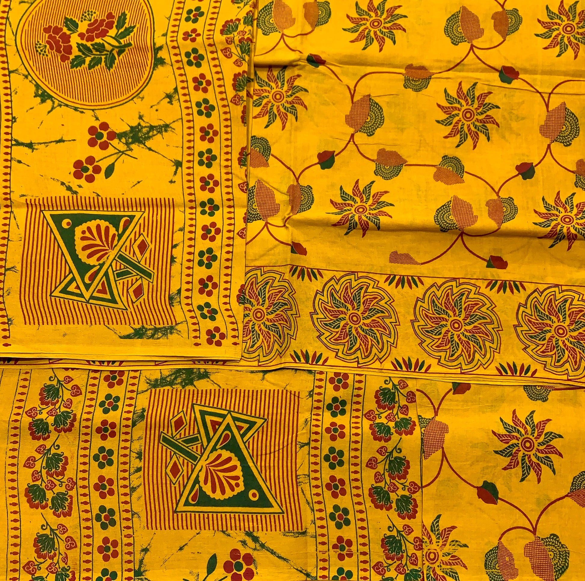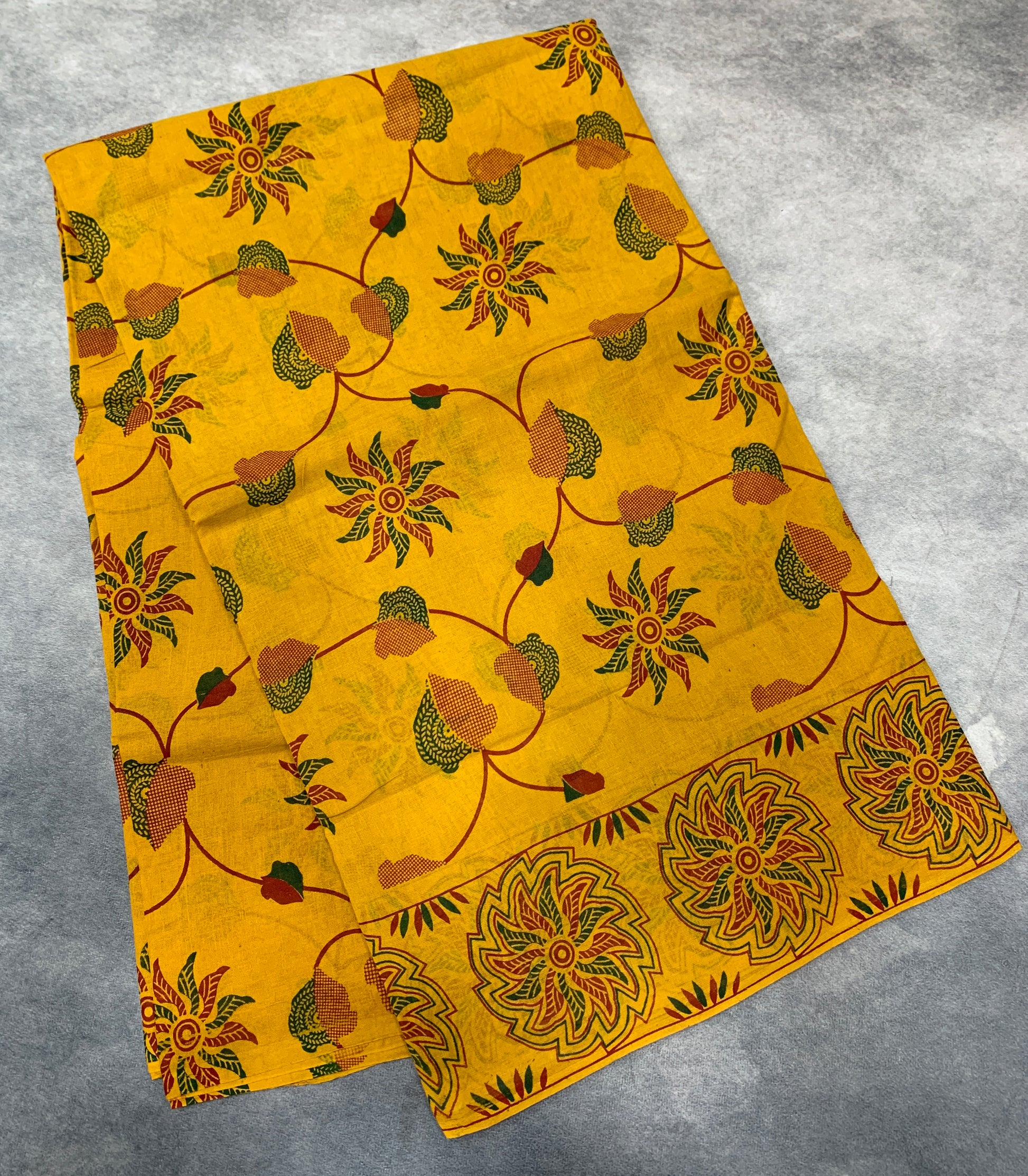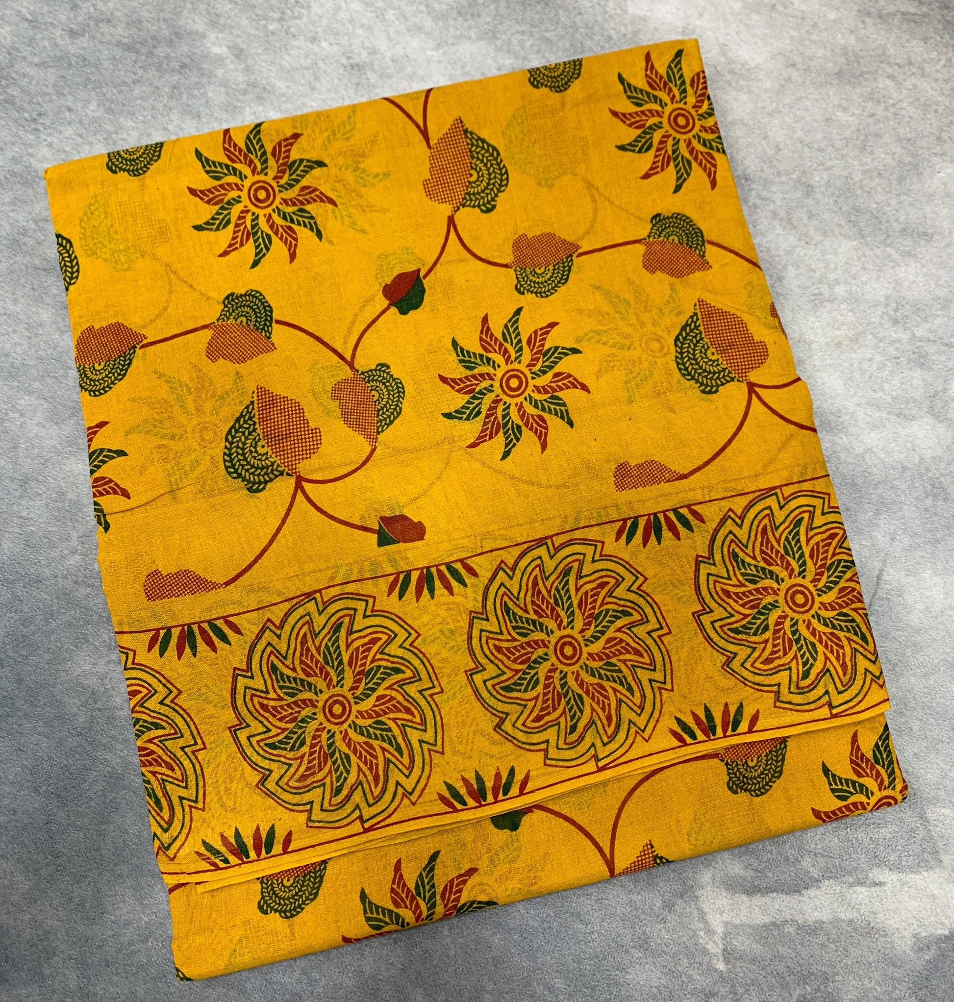 Chettinad Sungudi Cotton Mustard Colour with Floral Design.