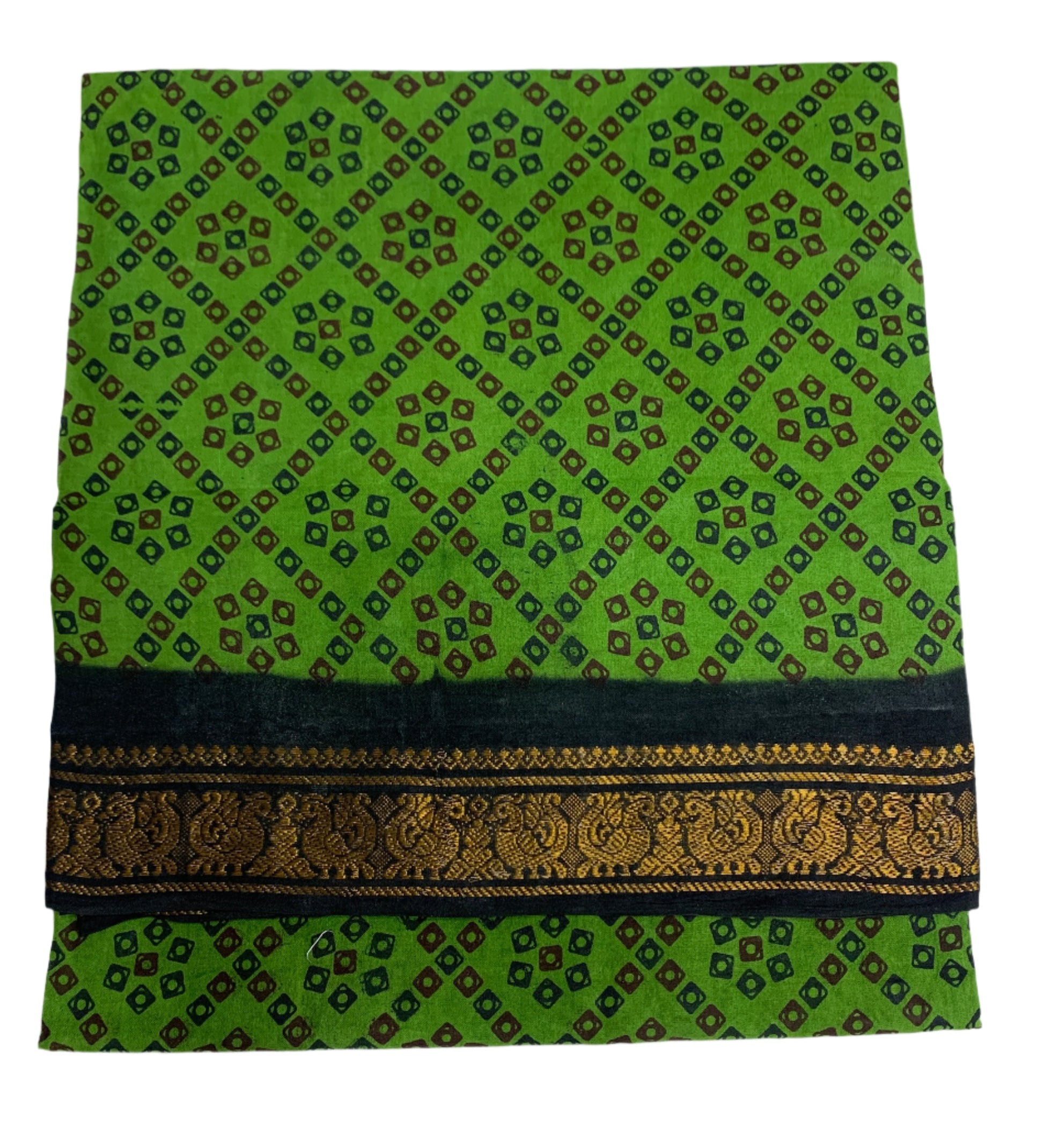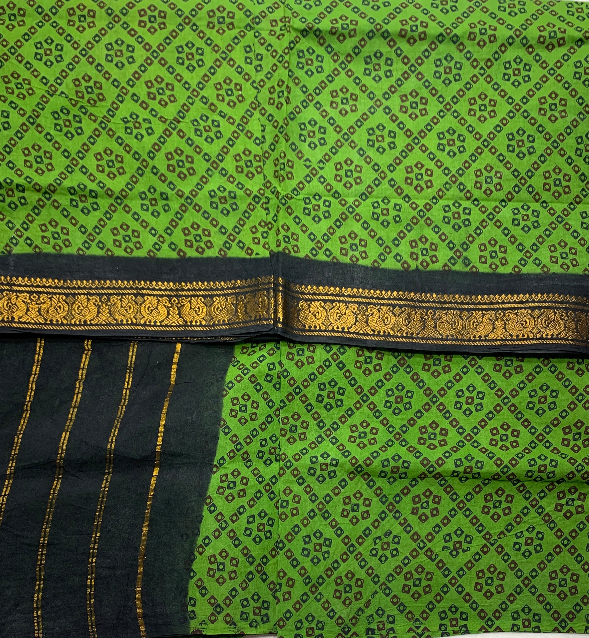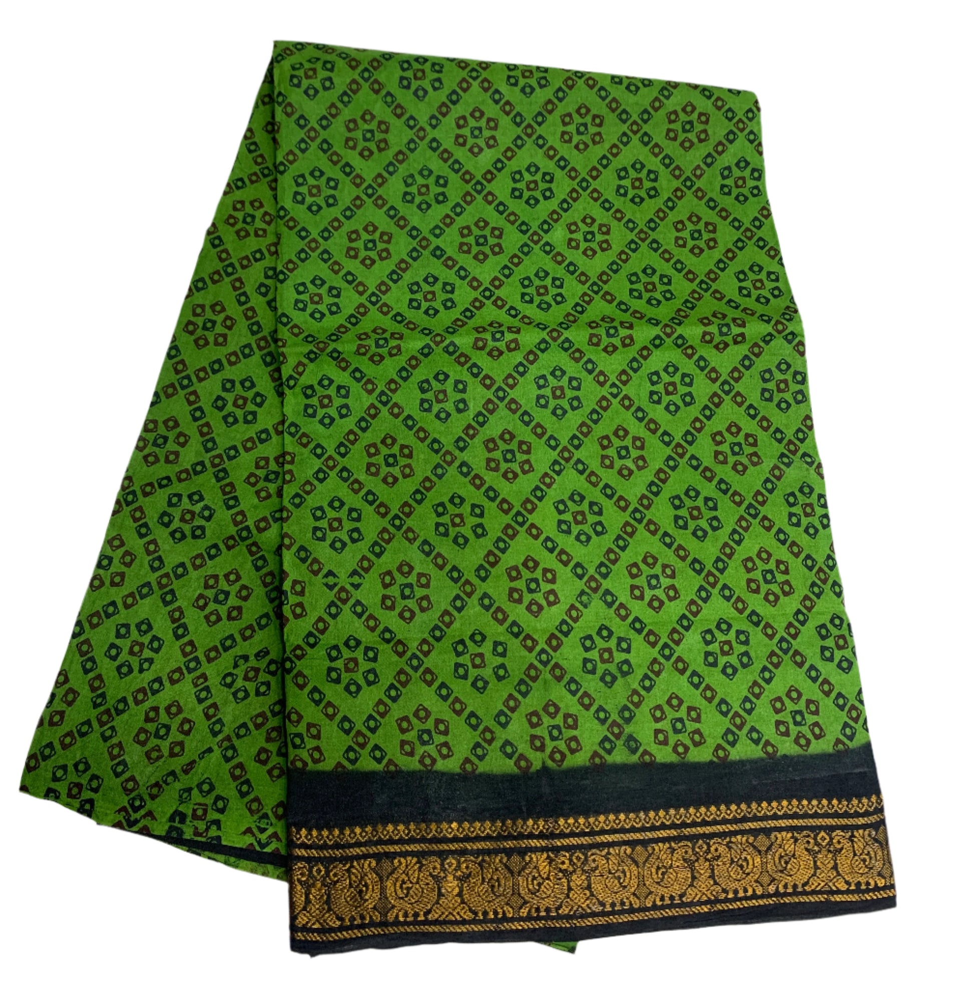 Chettinad Sungudi Cotton Olive Green Colour with Block Green Border . Light weight and easy to drape.