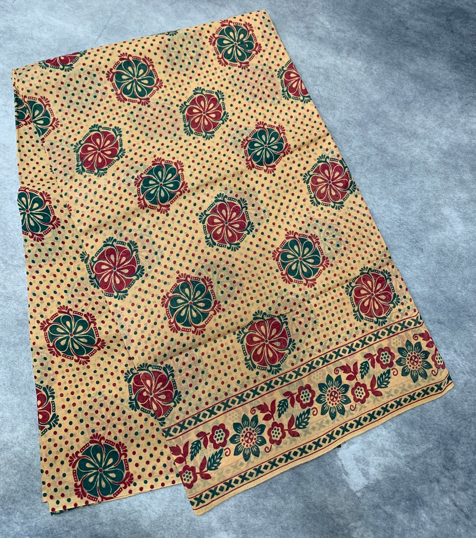 Chettinad Sungudi Cotton Sandal Colour with Floral Design