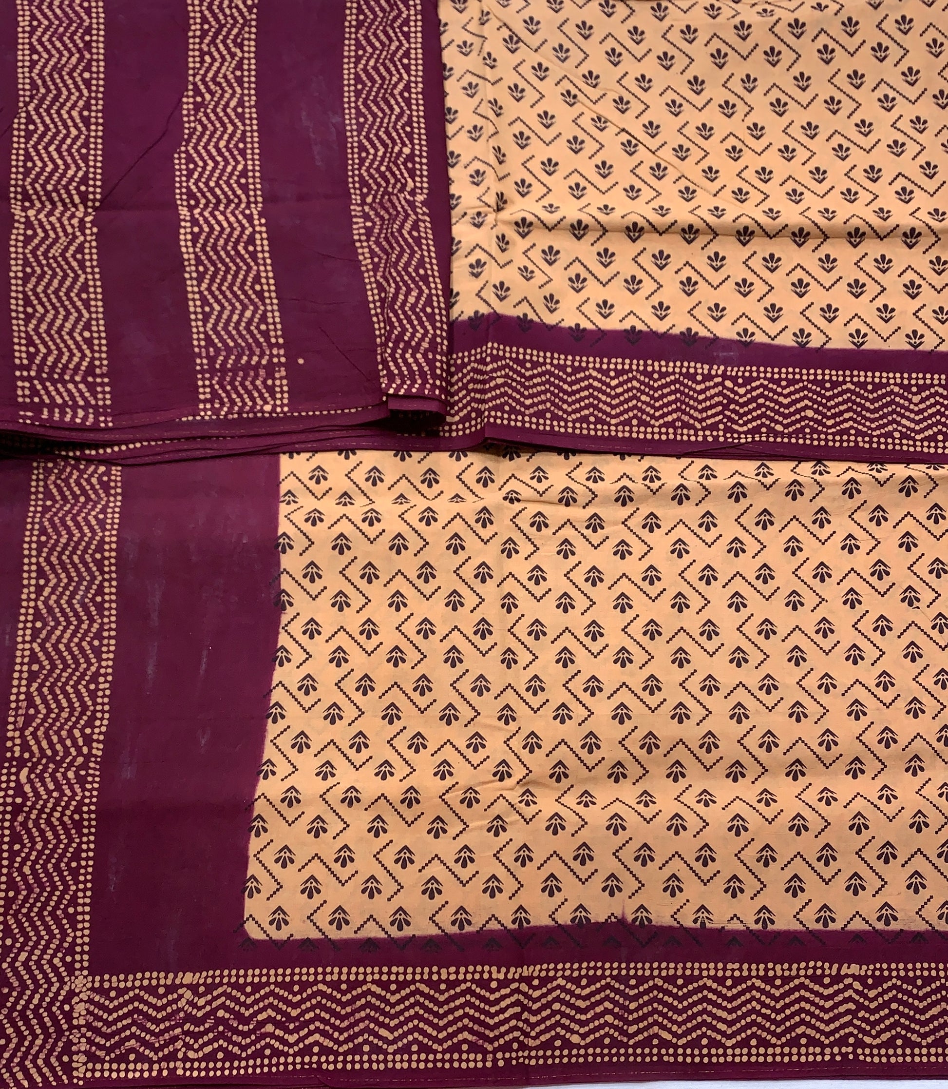 Chettinad Sungudi Cotton Sandal Colour with Magenta Colour Border . Light weight and easy to drape.