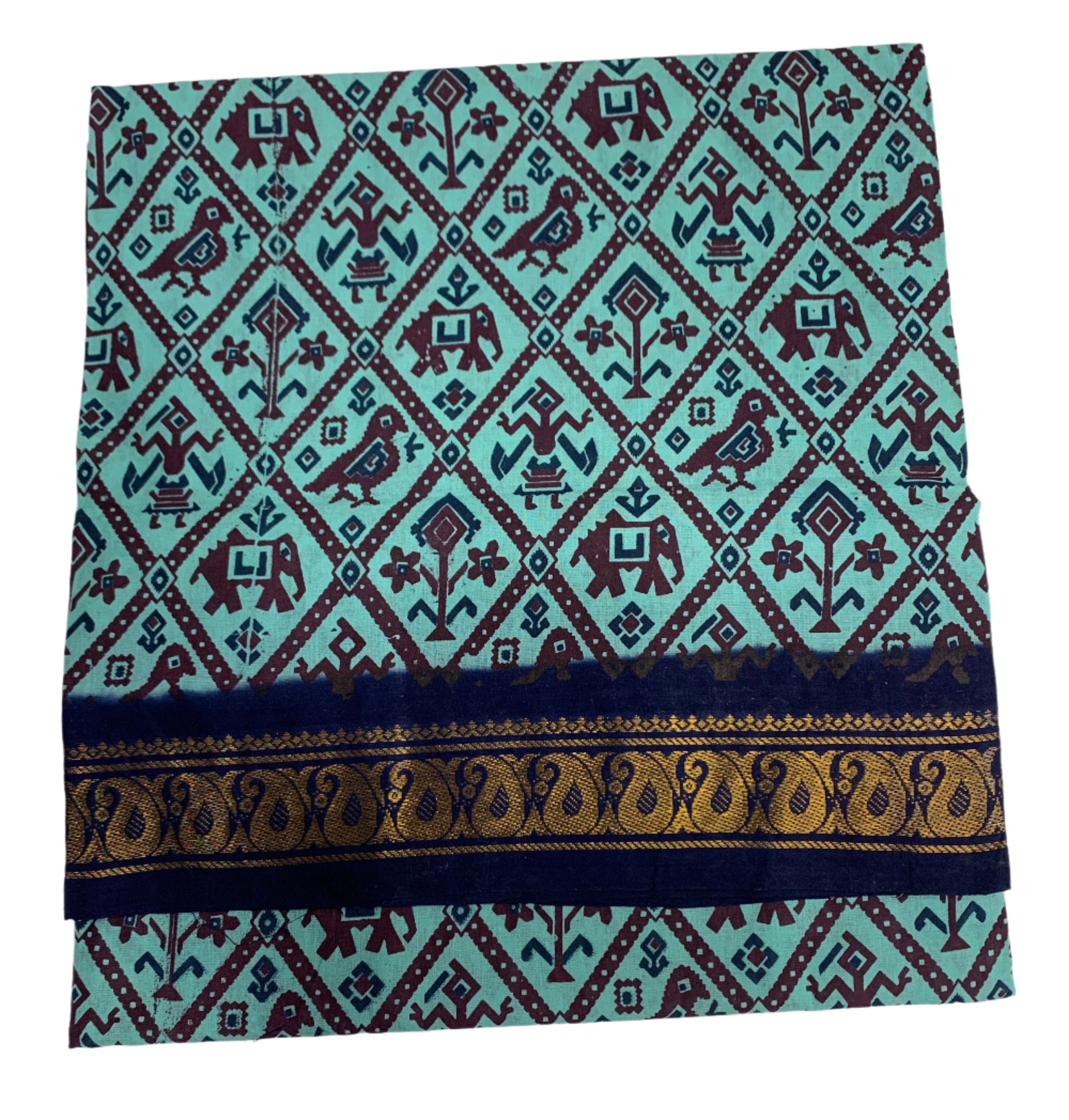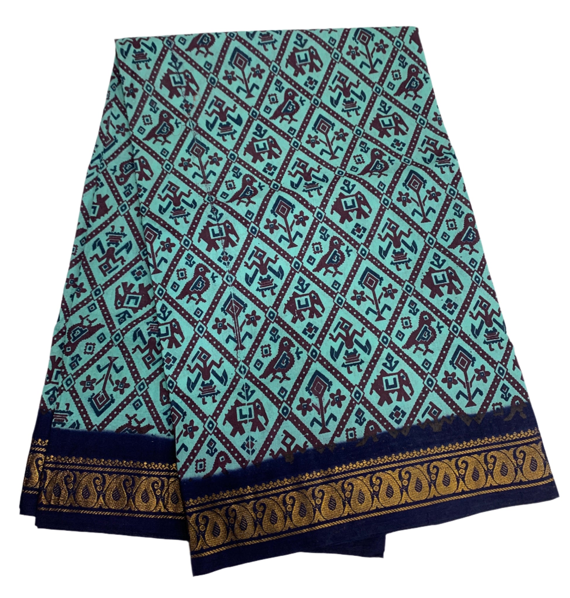 Chettinad Sungudi Cotton Sapphire Colour with Navy Blue Border . Light weight and easy to drape.
