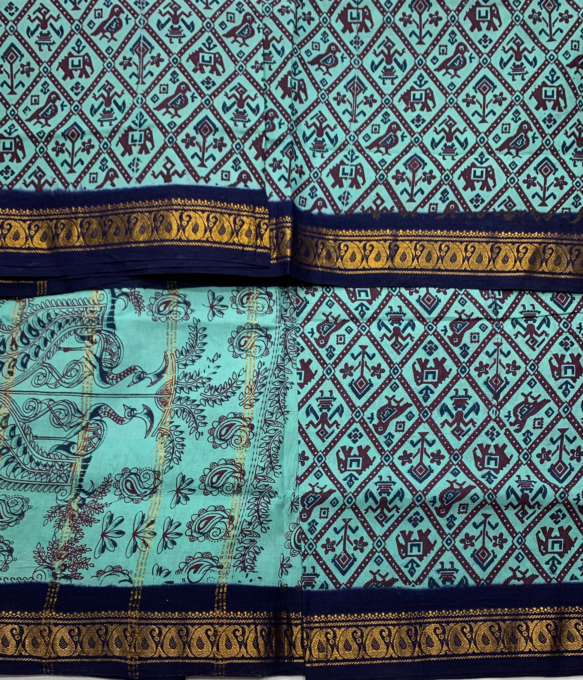 Chettinad Sungudi Cotton Sapphire Colour with Navy Blue Border
