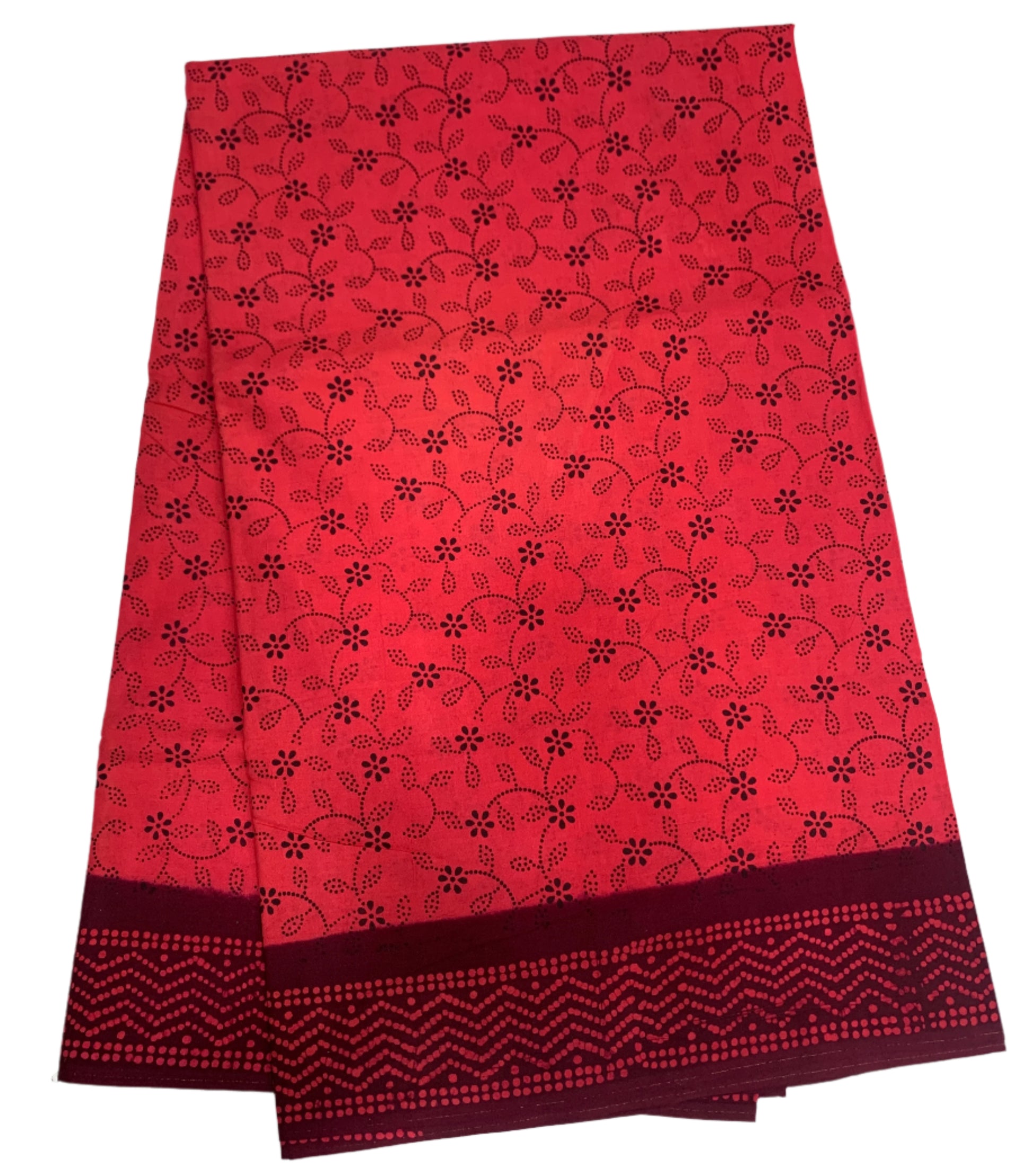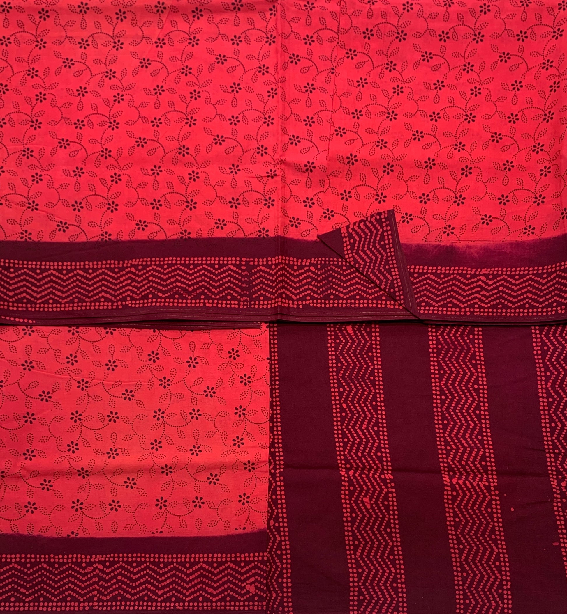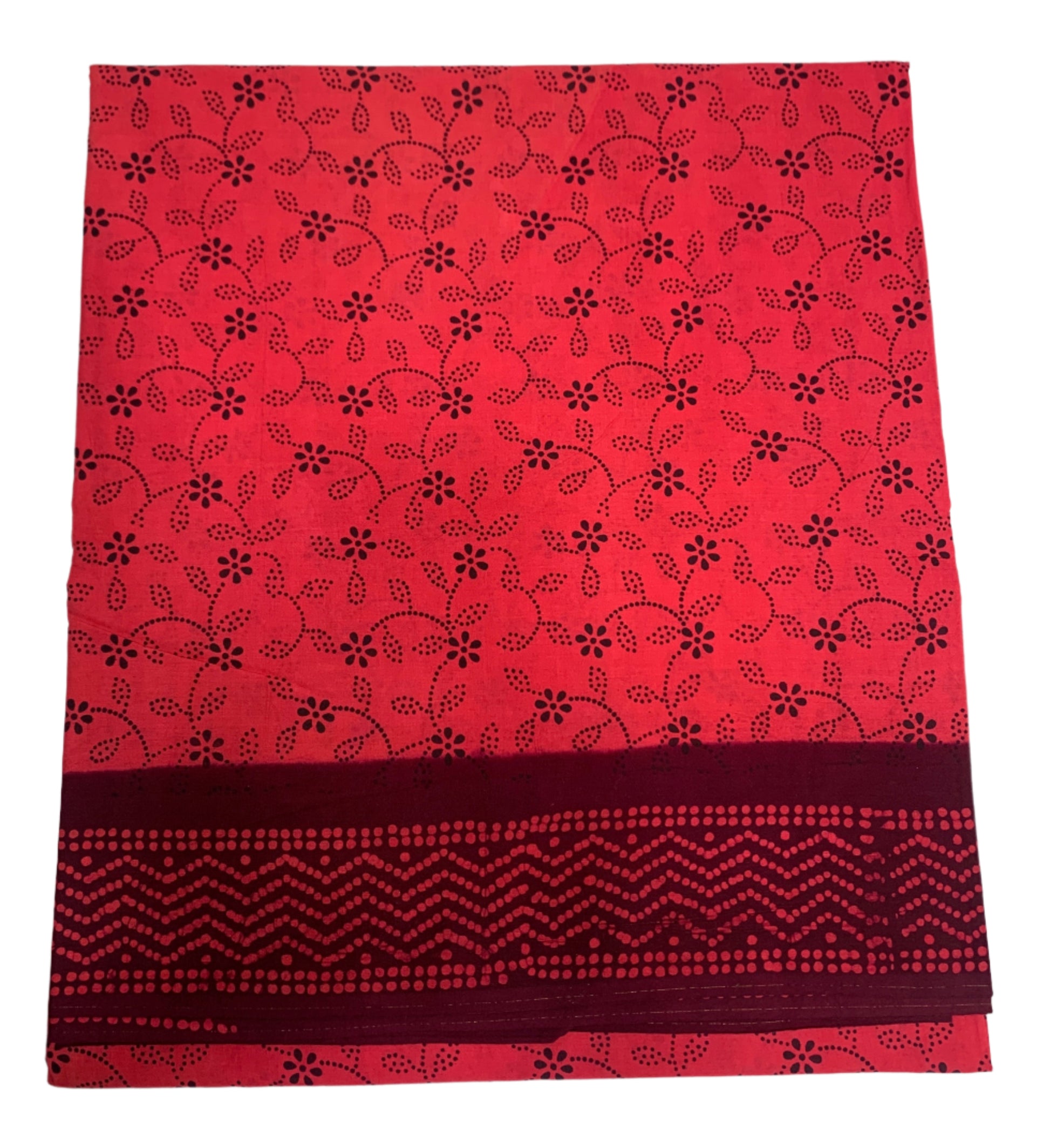 Chettinad Sungudi Cotton Tomato Red Colour with Printed Saree with Brown Colour Border. Light weight and easy to drape.