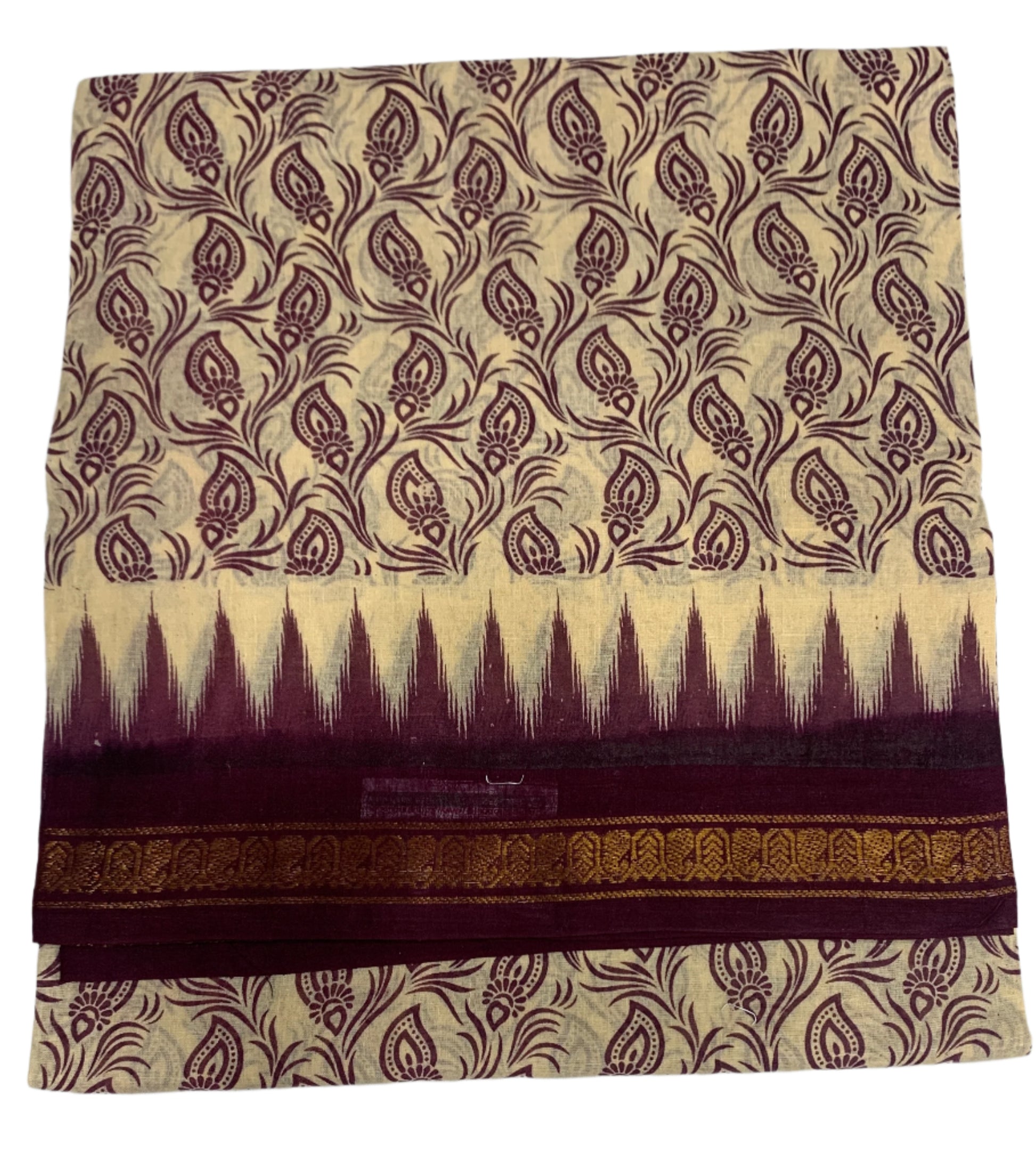 Chettinad Sungudi Cotton Tussar Colour with Brown Colour Border . Light weight and easy to drape.