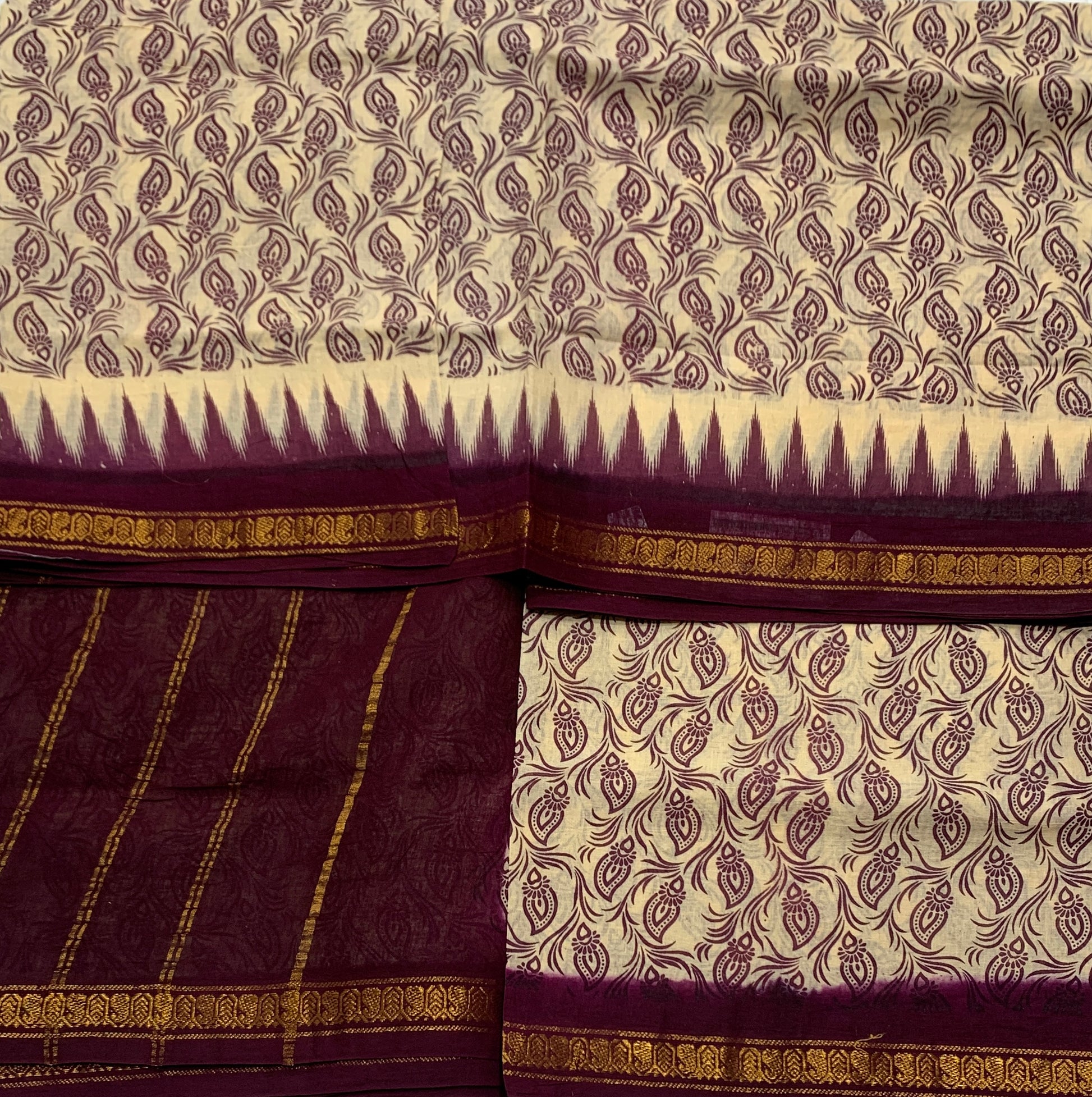 Chettinad Sungudi Cotton Tussar Colour with Brown Border