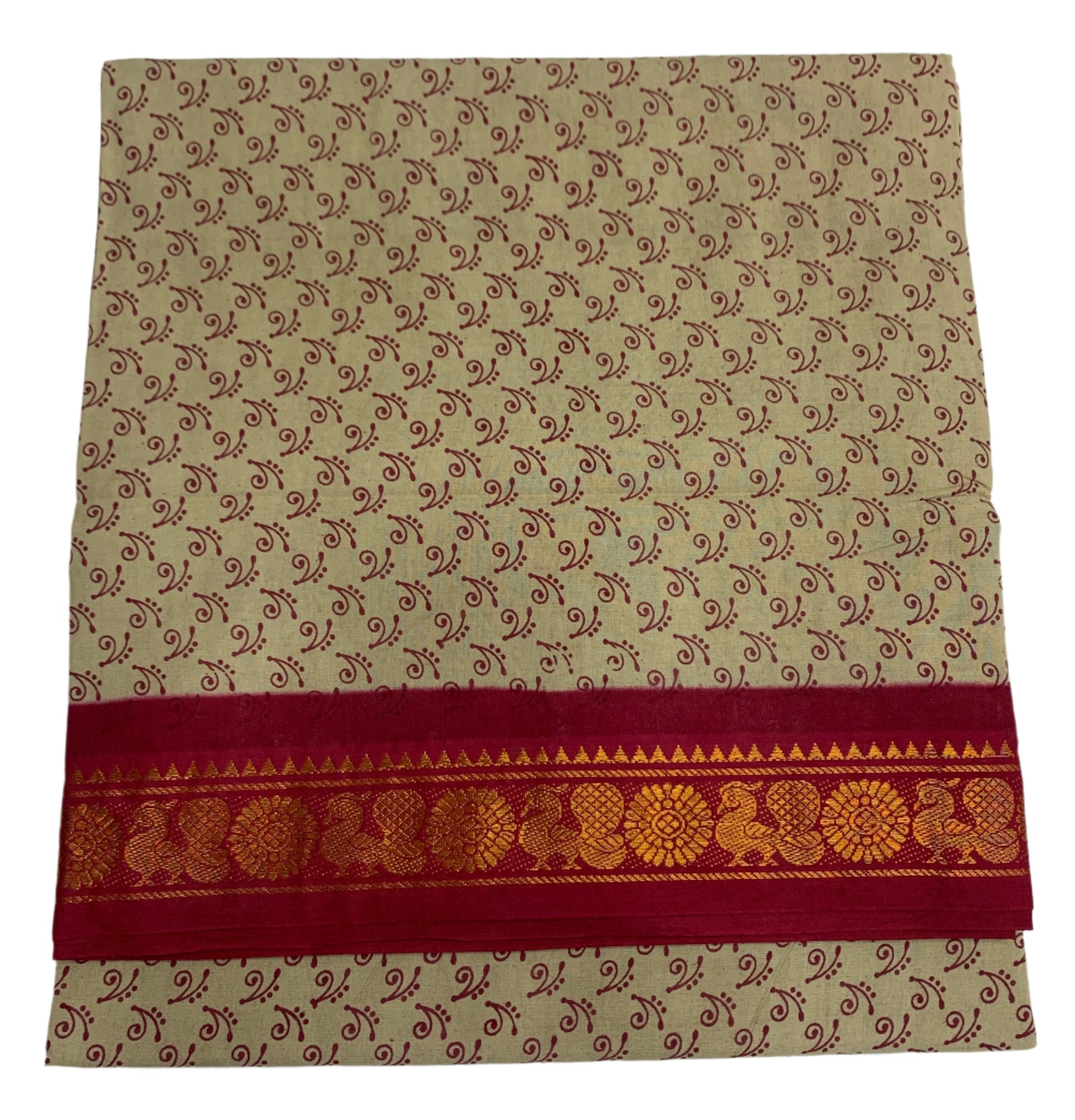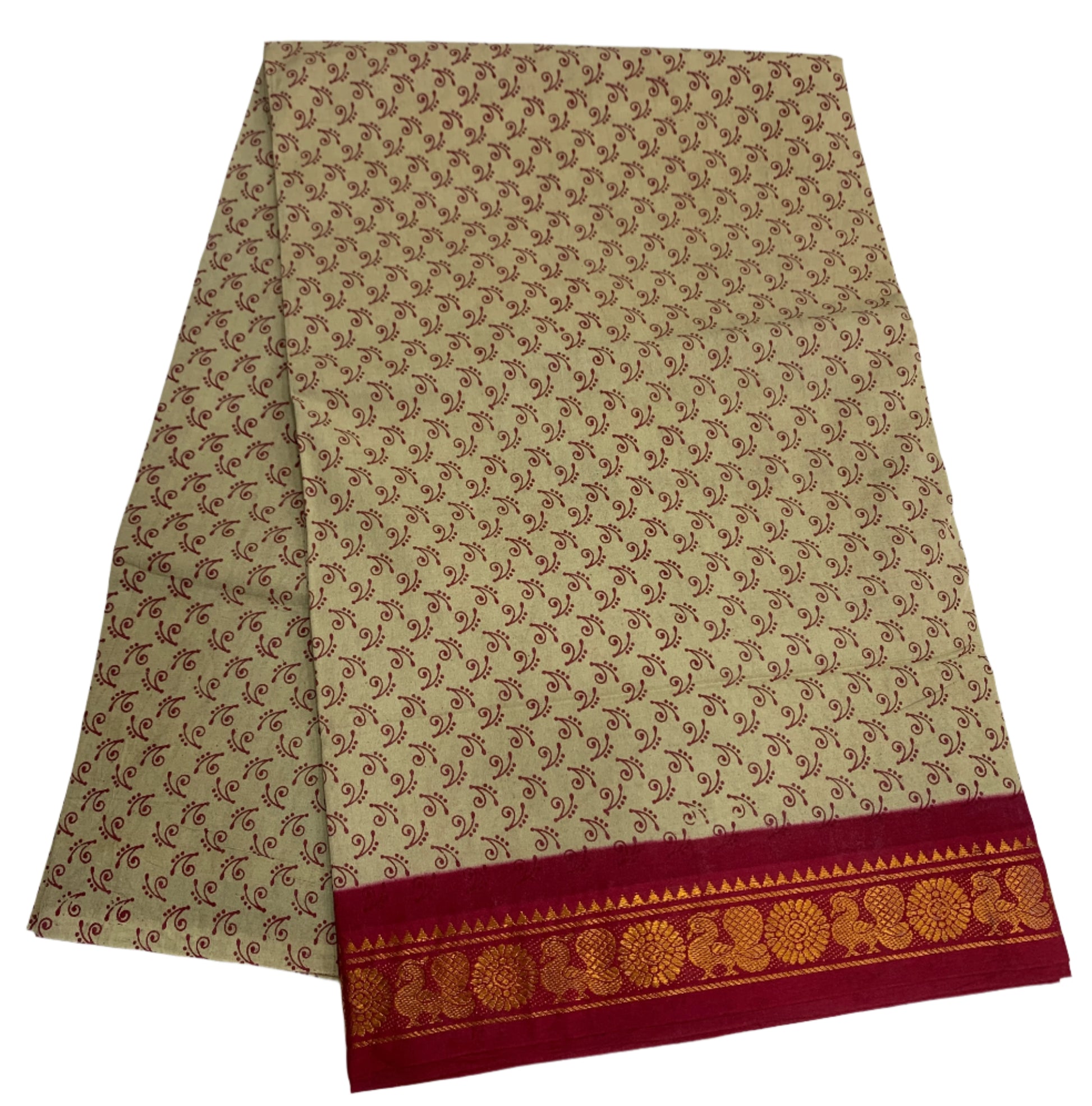 Chettinad Sungudi Cotton Tussar Colour with Maroon Colour Border . Light weight and easy to drape.
