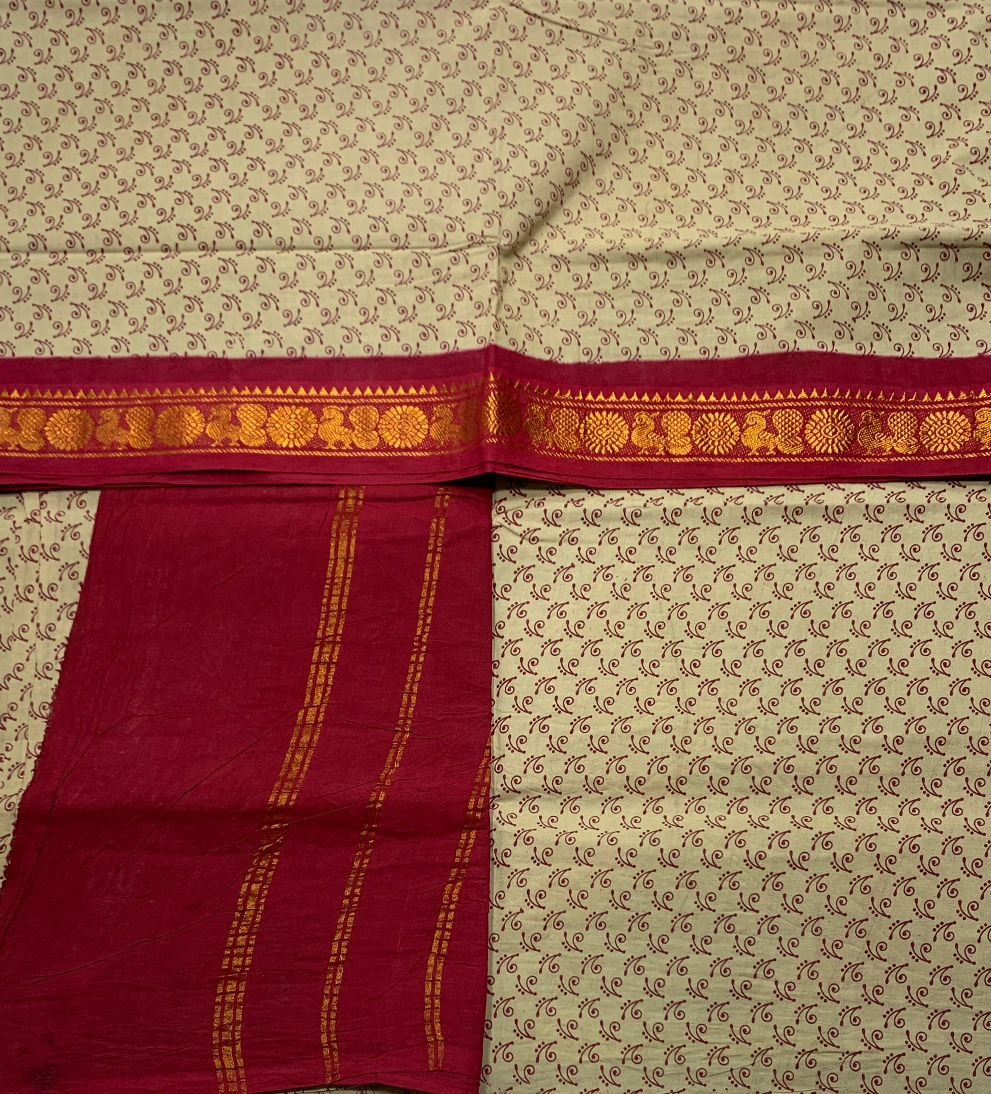 Chettinad Sungudi Cotton Tussar Colour with Maroon Border