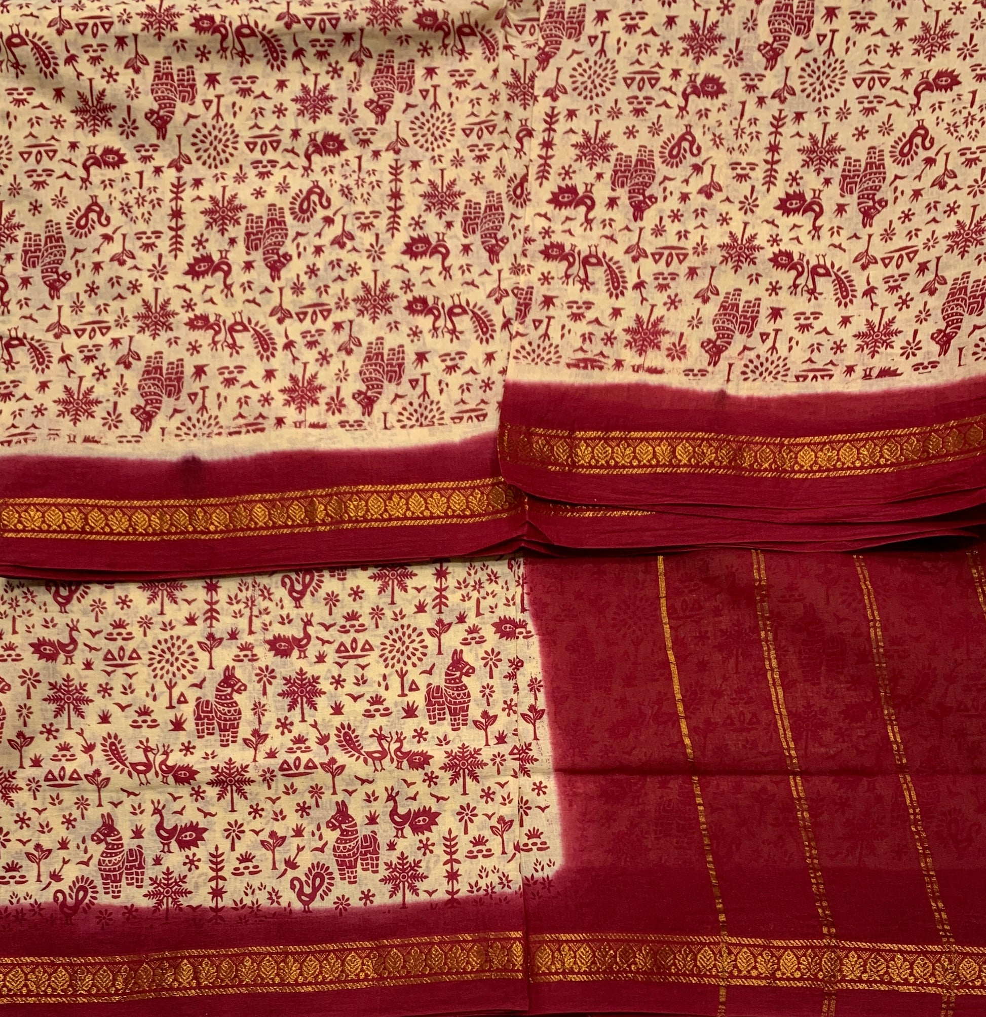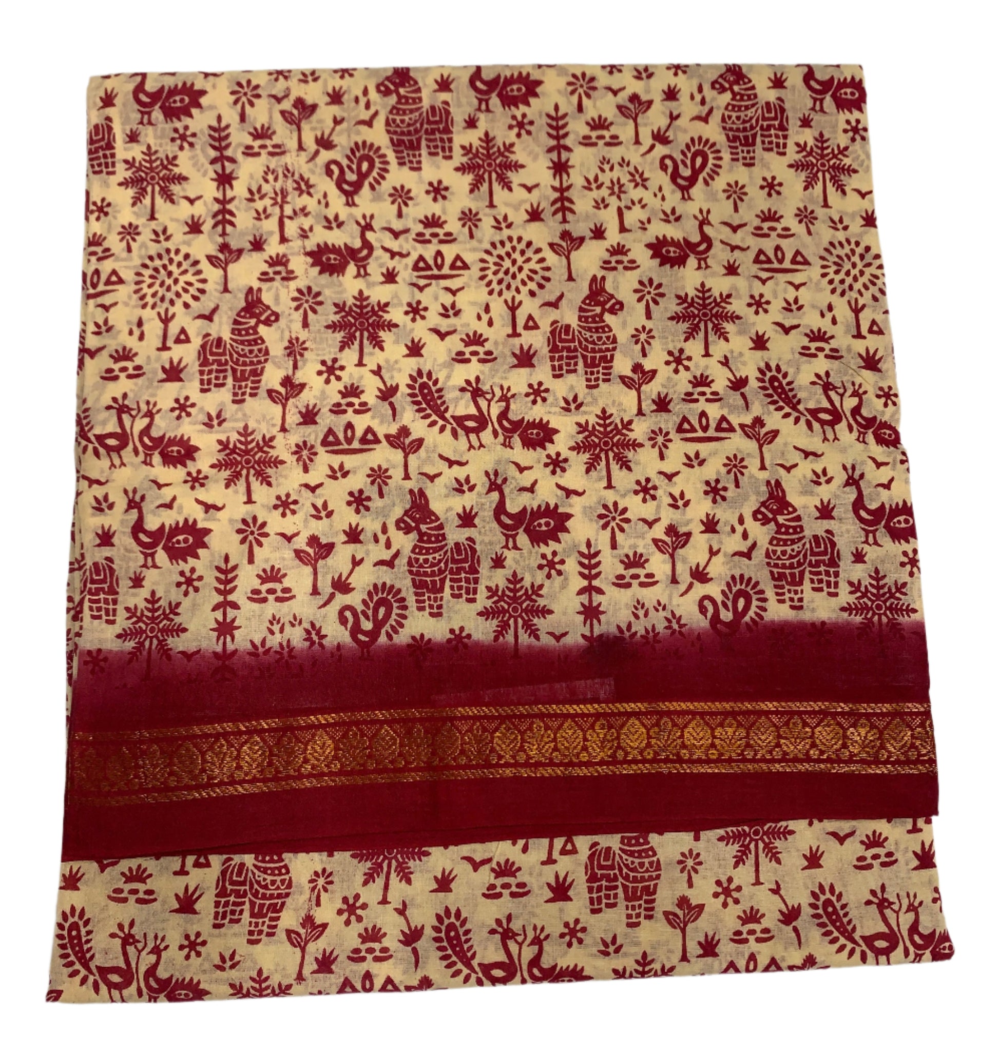 Chettinad Sungudi Cotton Tussar Colour with Maroon Border