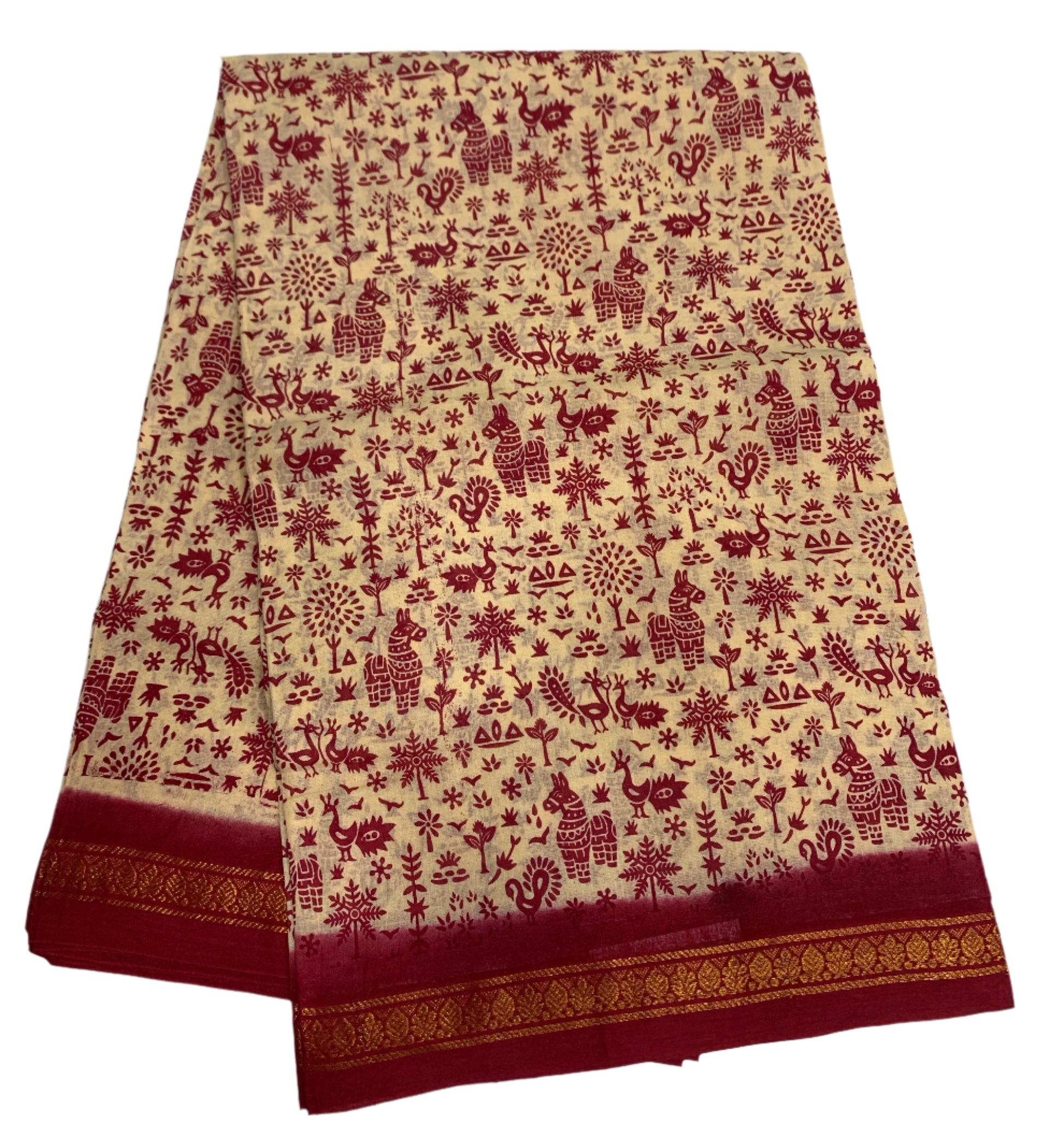 Chettinad Sungudi Cotton Tussar Colour with Maroon Colour Border . Light weight and easy to drape.