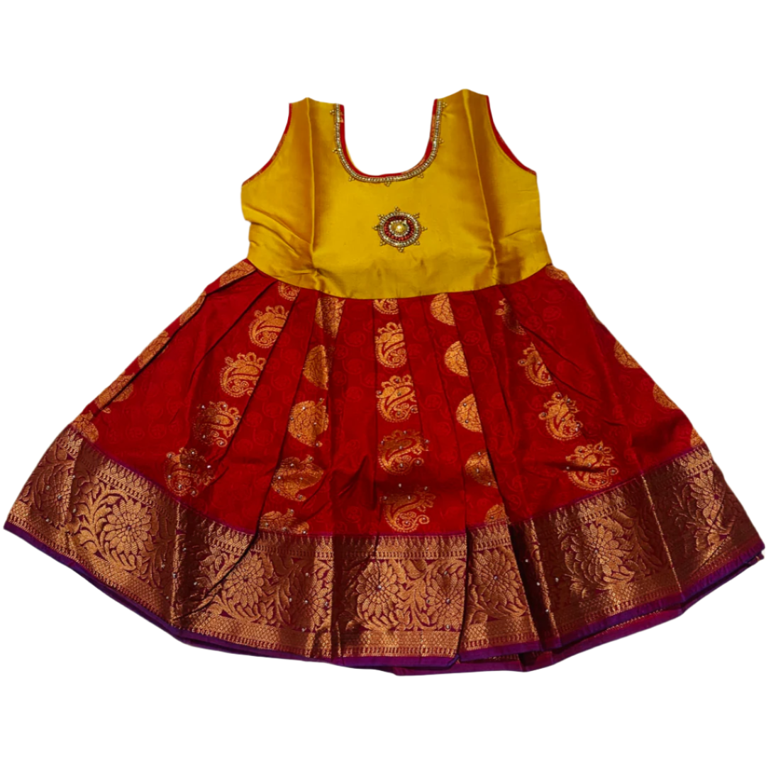 One Piece Ethnic Lehanga-Golden& Maroon-3 Year Baby.