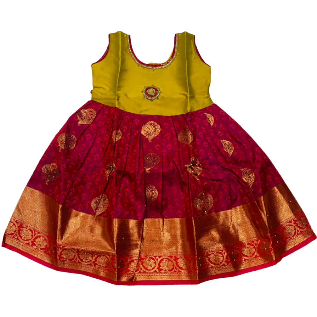 One Piece Ethnic Lehanga- Green & Maroon-2 Year Baby