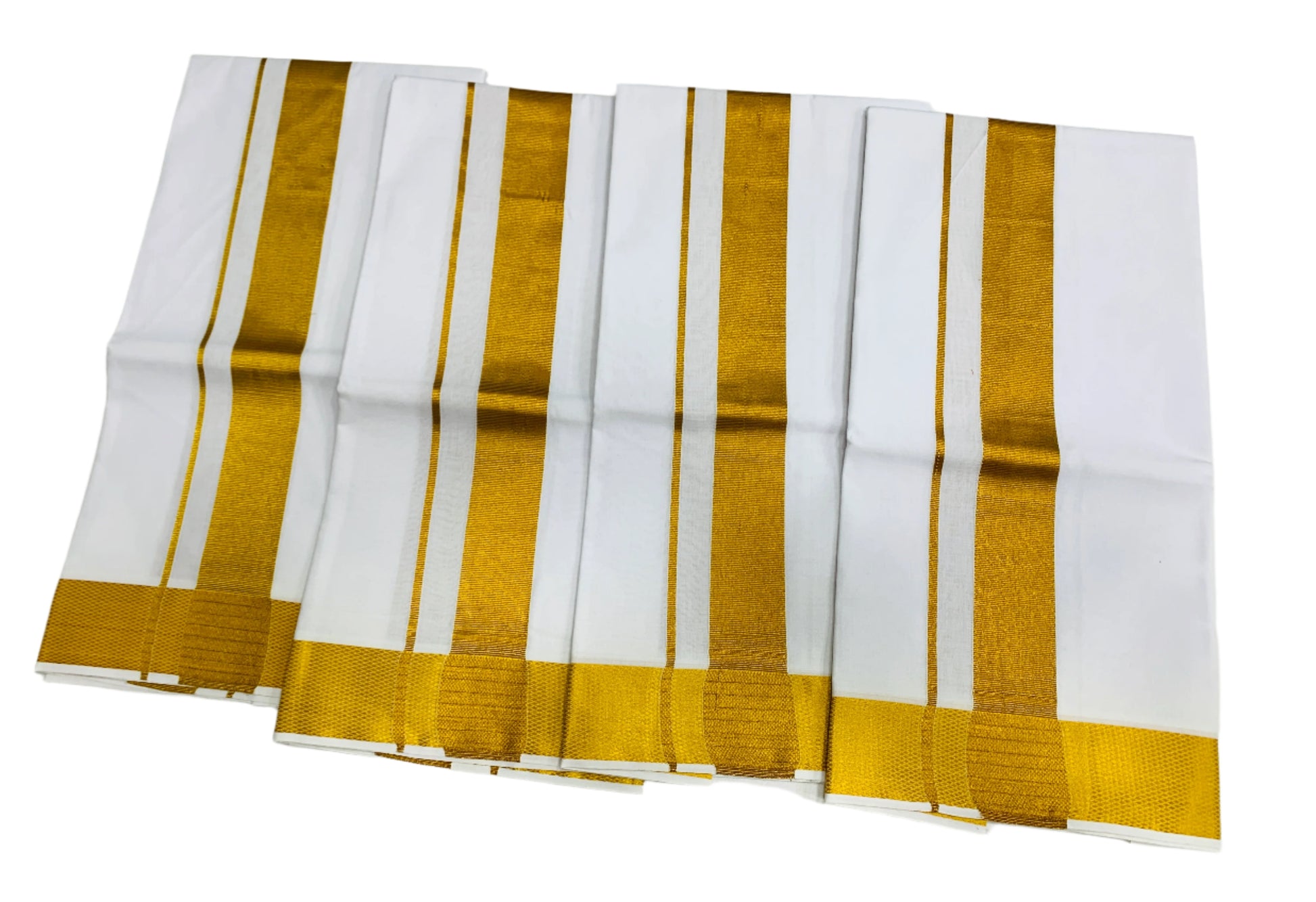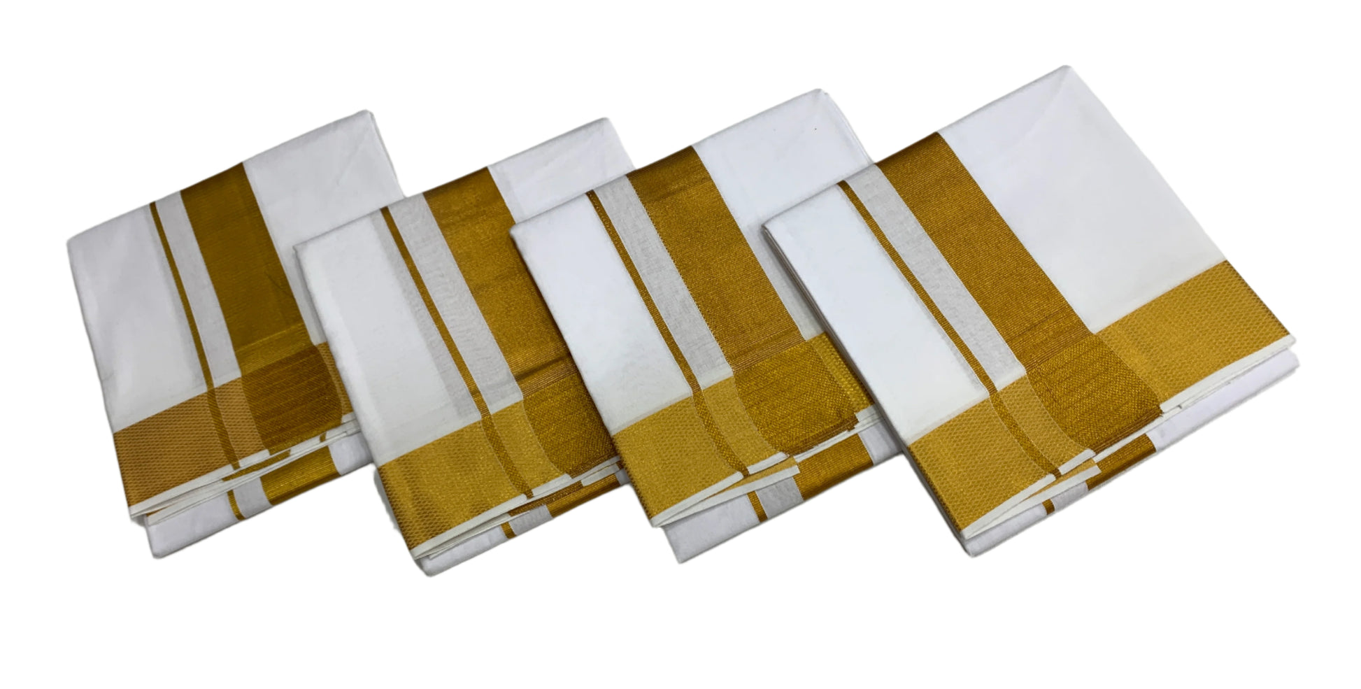 Cotton Dhoti White 4 Mulam with Big Zari Border - Pack of 4