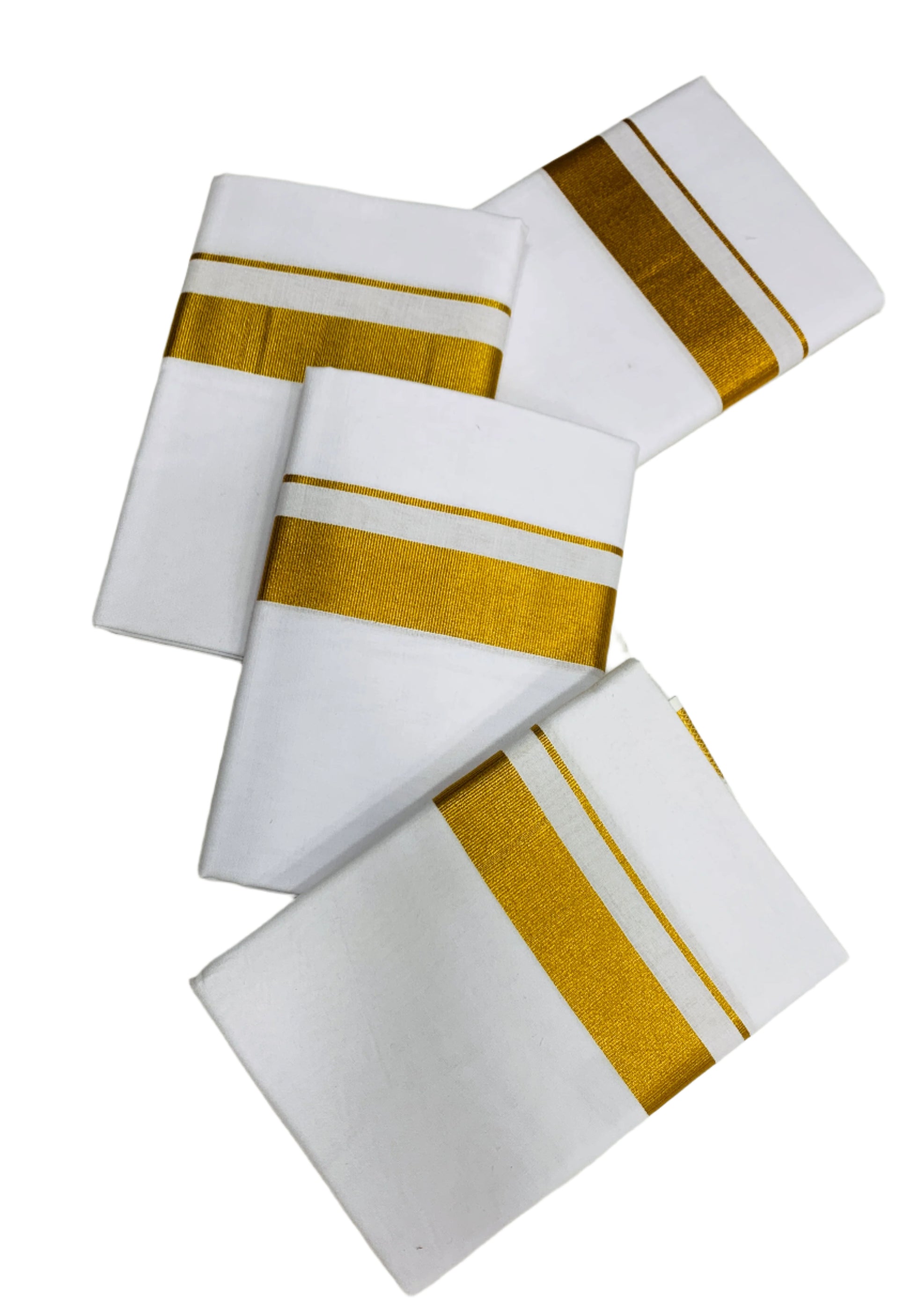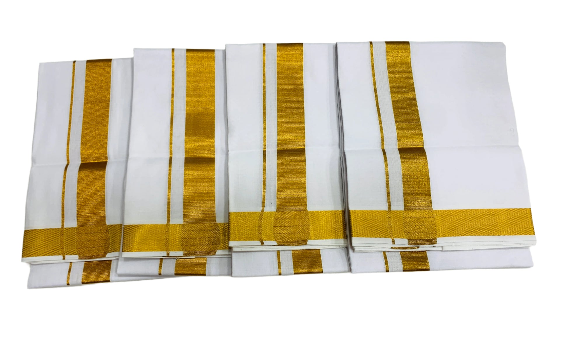 Cotton Dhoti White 4 Mulam with Zari Border - Pack of 4