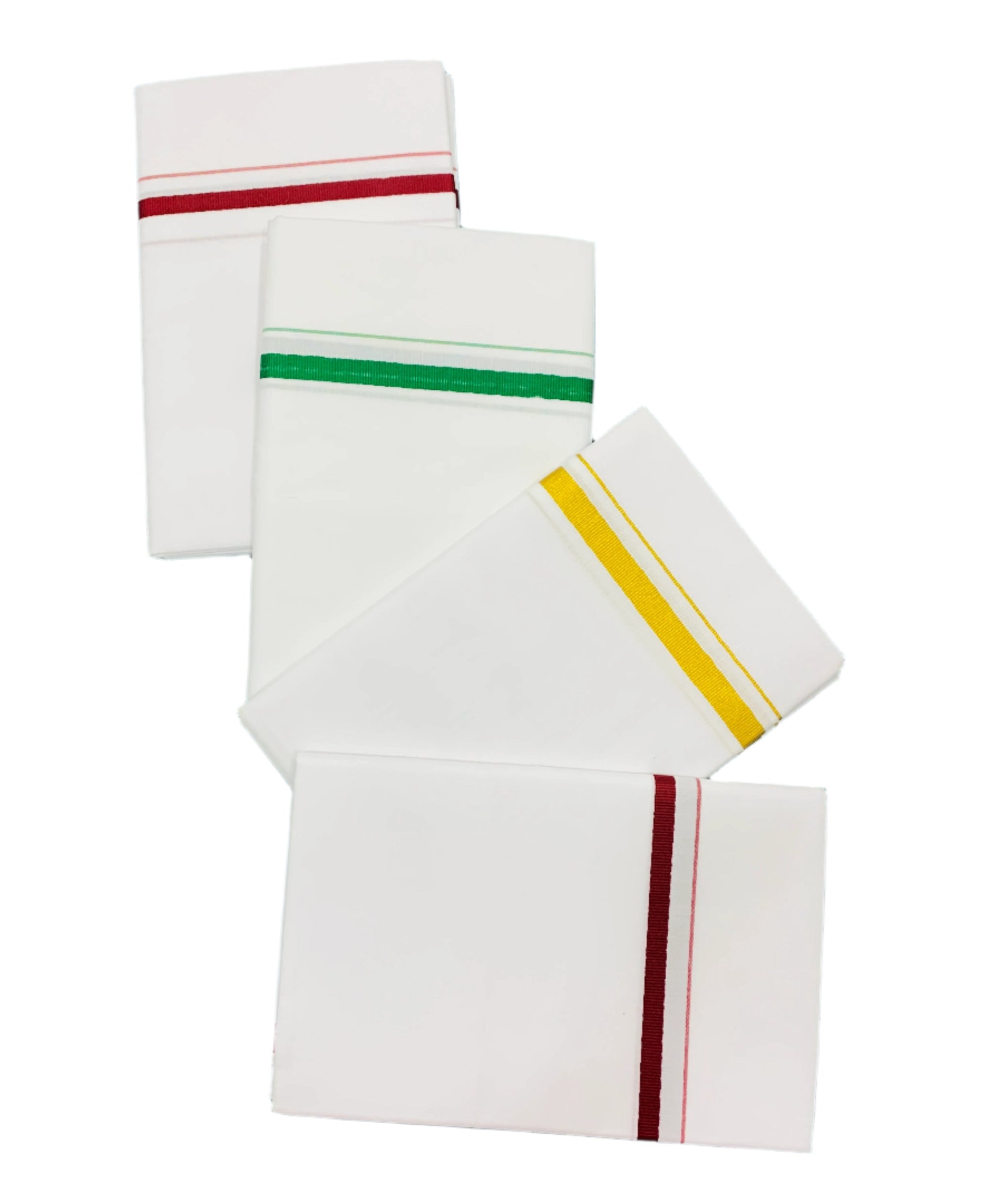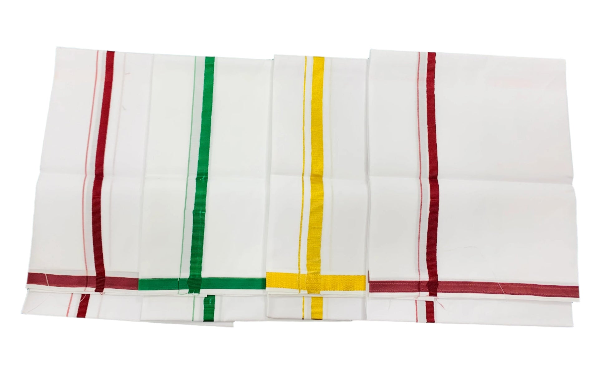 Cotton Dhoti 4 Mulam White Colour with Small Border - Pack of 4