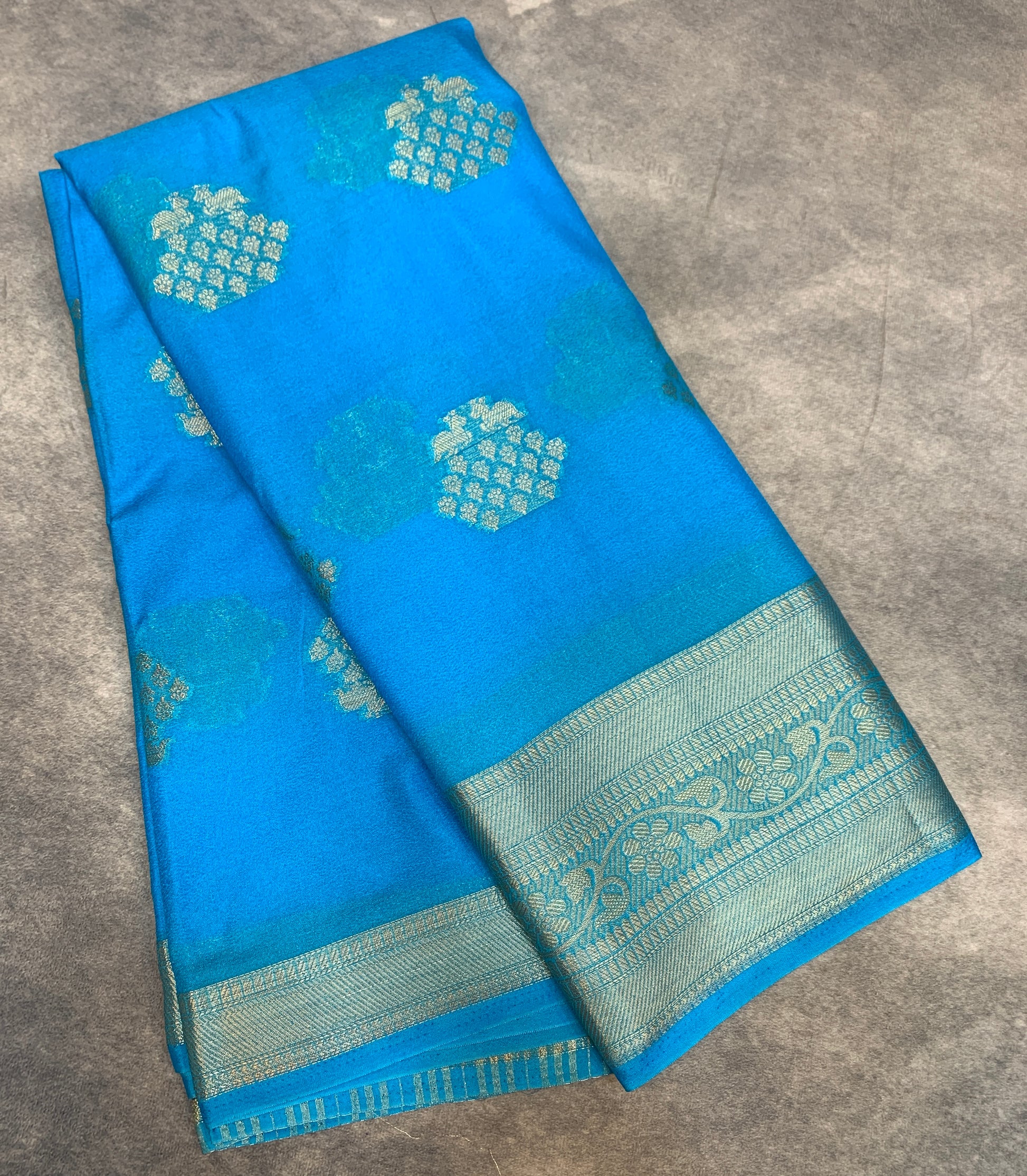 Crepe Saree Light Sky Blue Colour with Sliver Zari work Border.