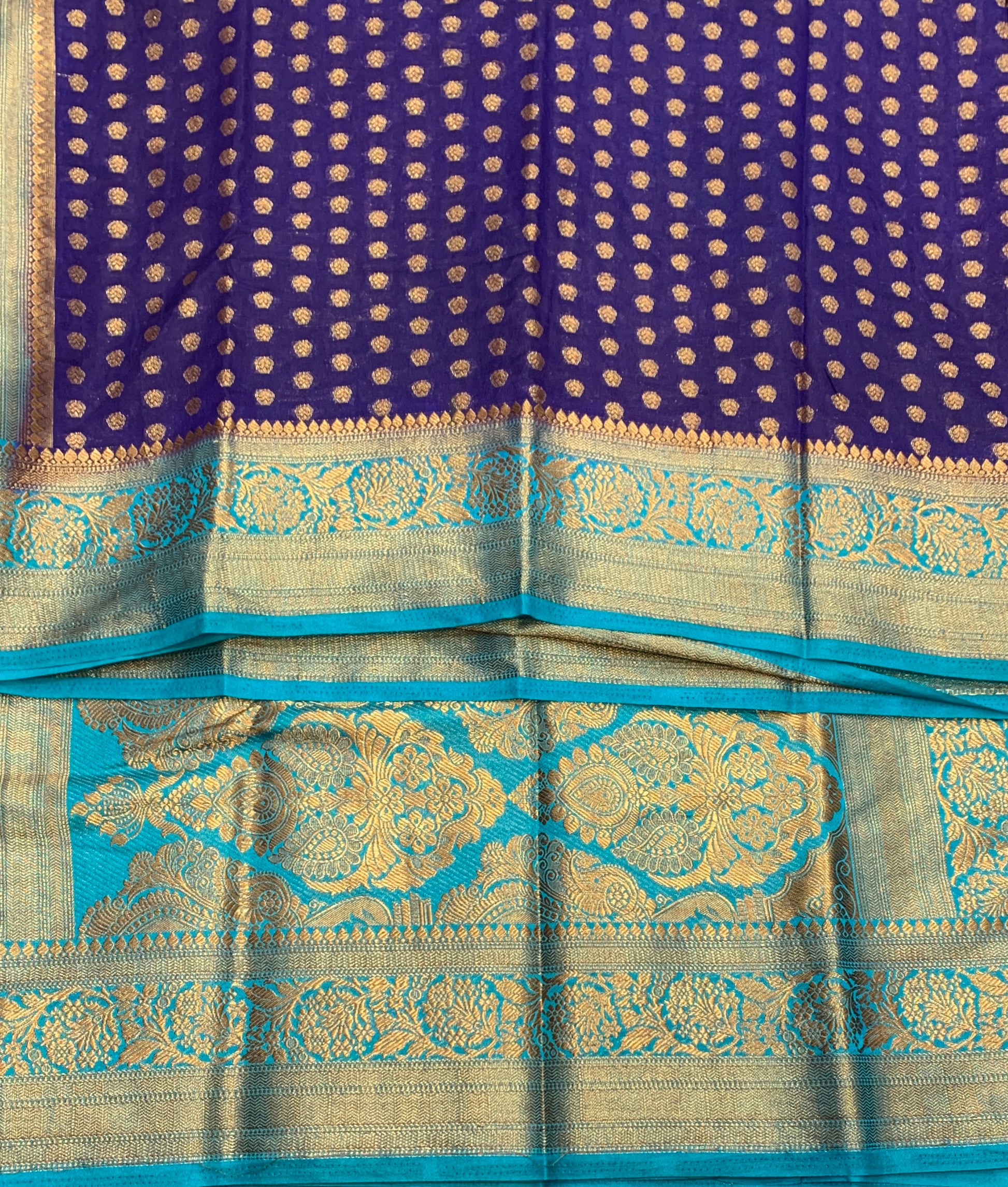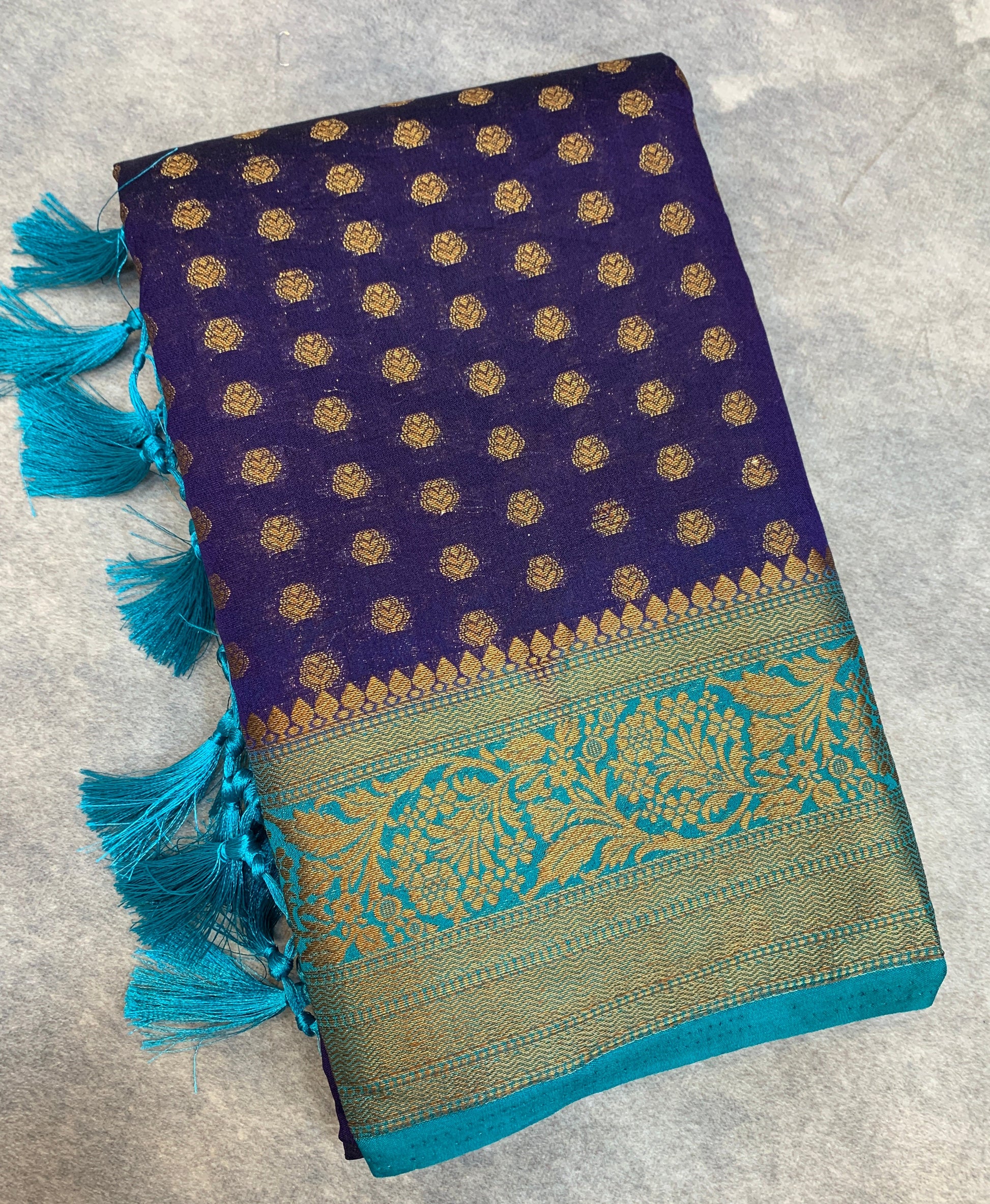 Crepe Saree Navy Blue Colour with Sky Blue Border.
