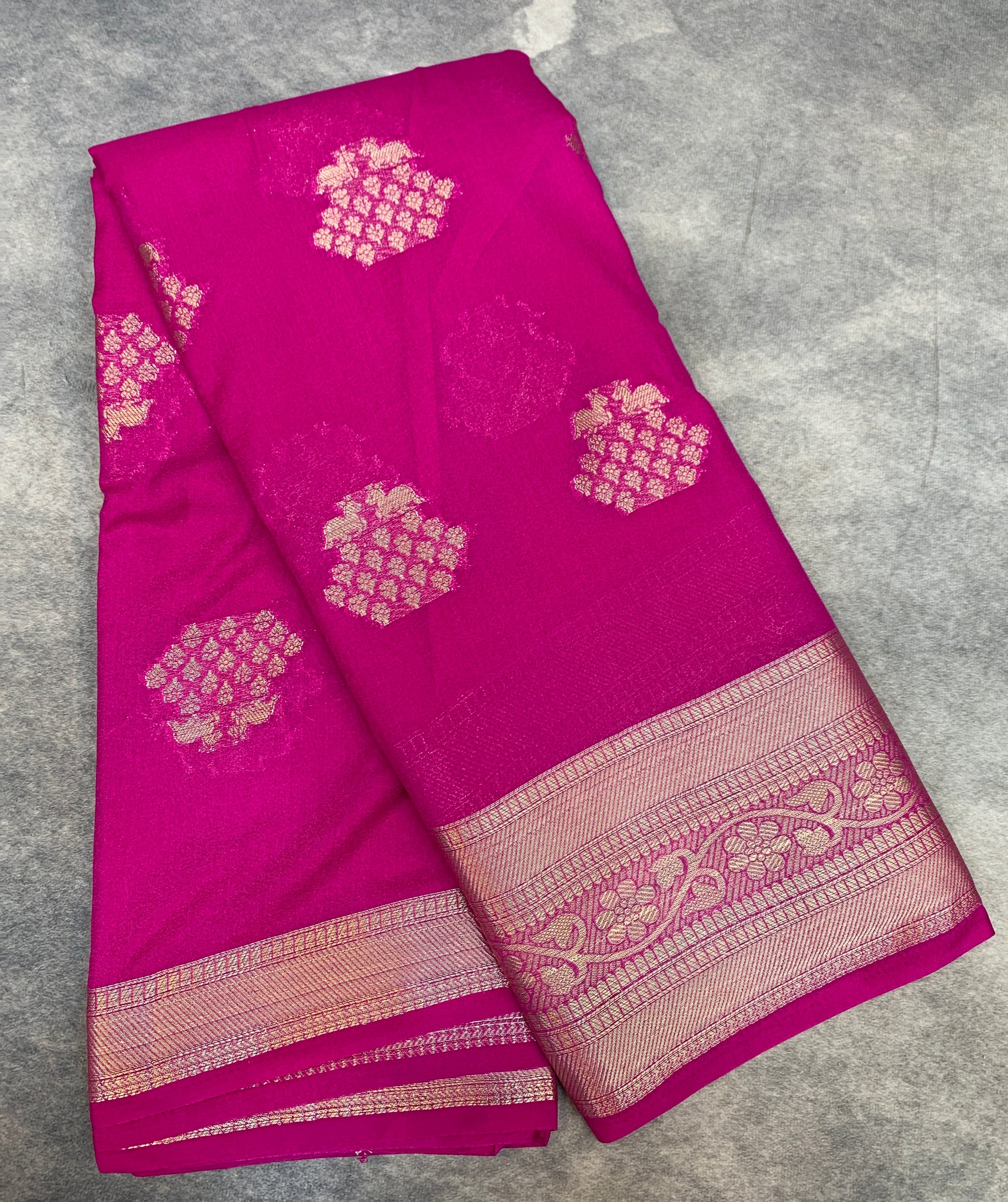 Crepe Saree Pink Colour with Sliver Zari work Border