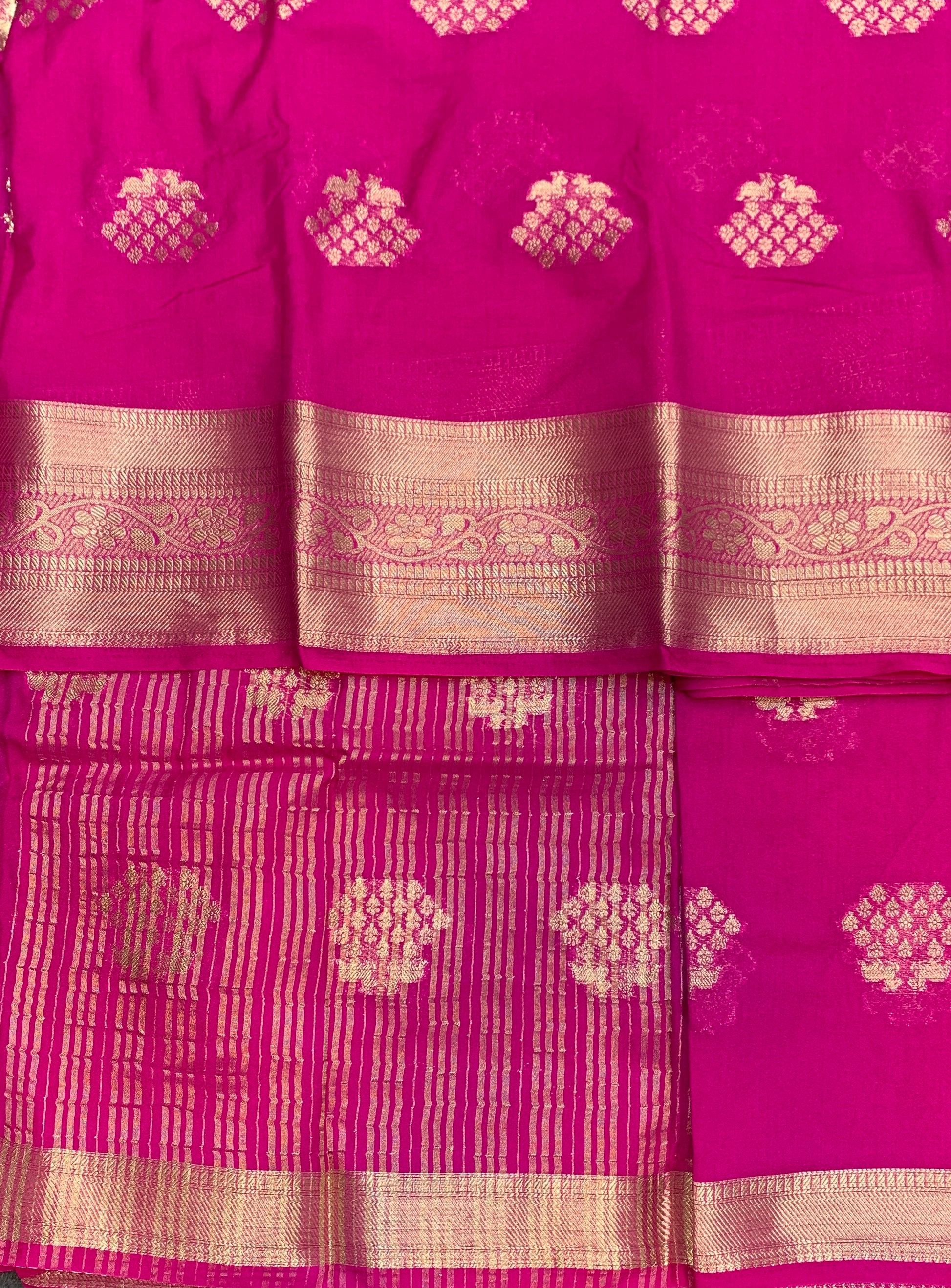 Crepe Saree Pink Colour with Sliver Zari work Border.