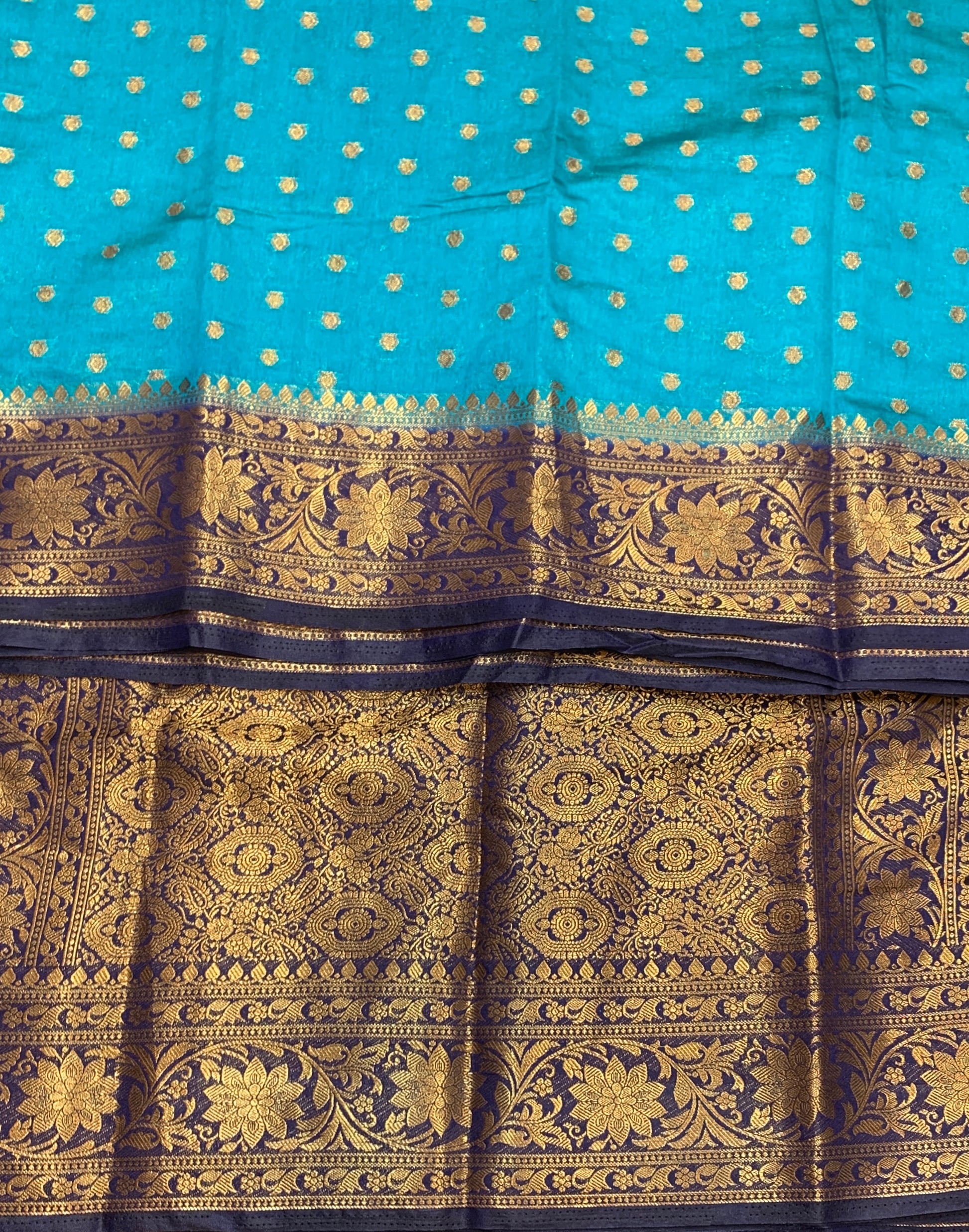 Crepe Saree Sky Blue Colour with Navy Blue Border