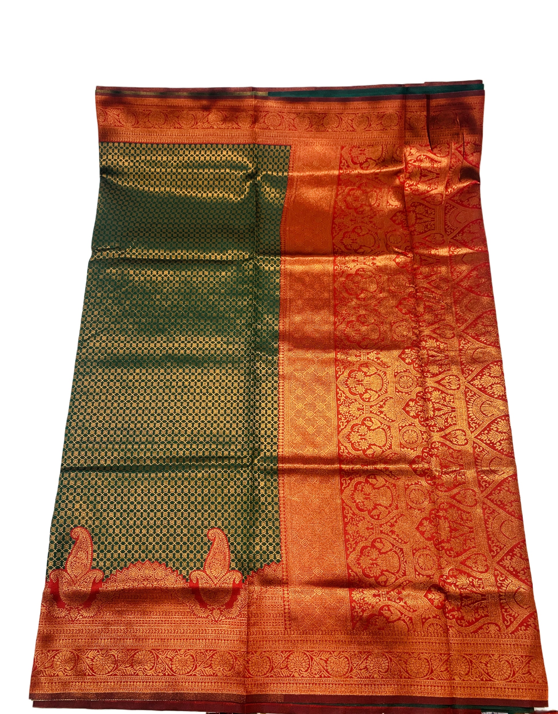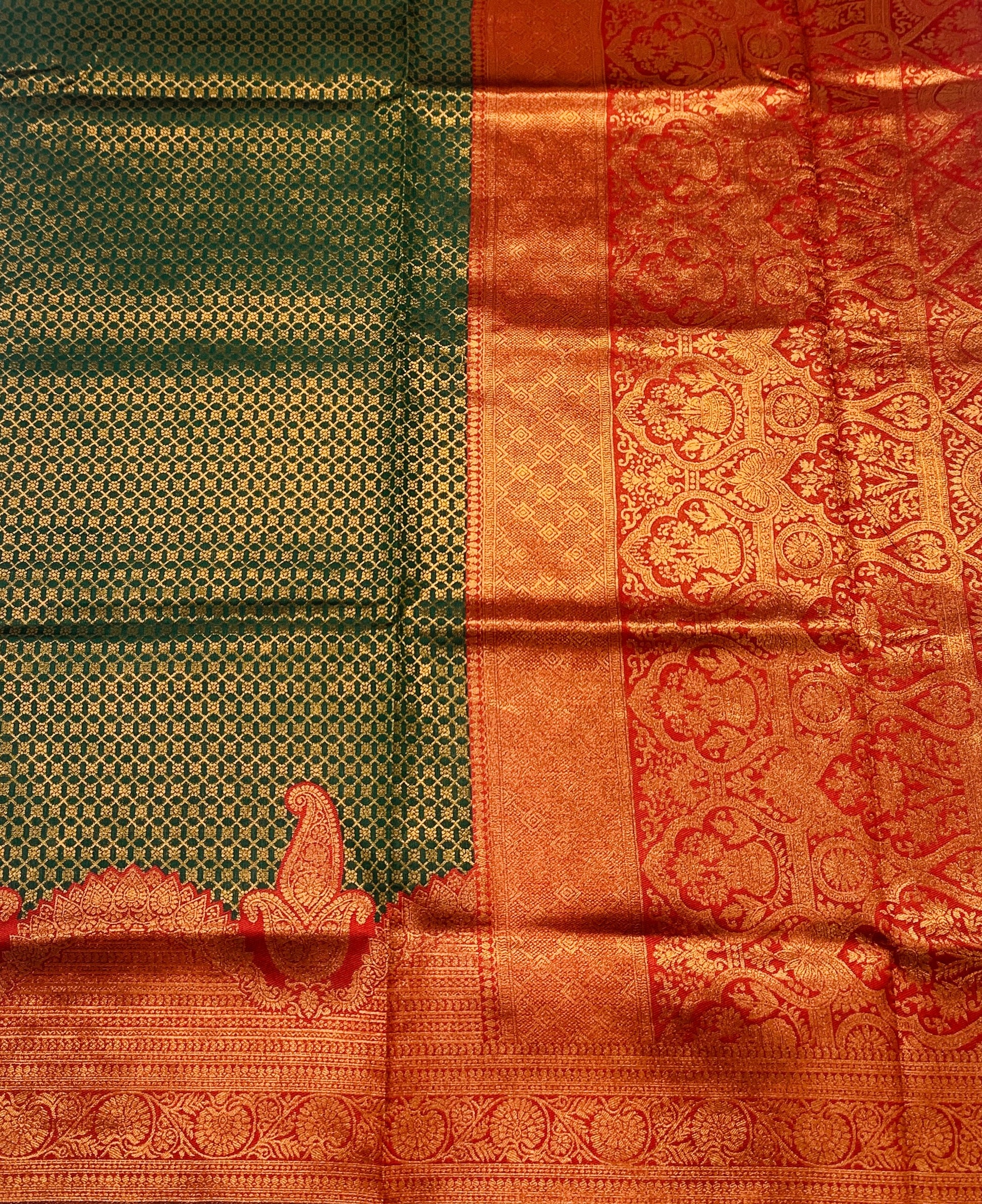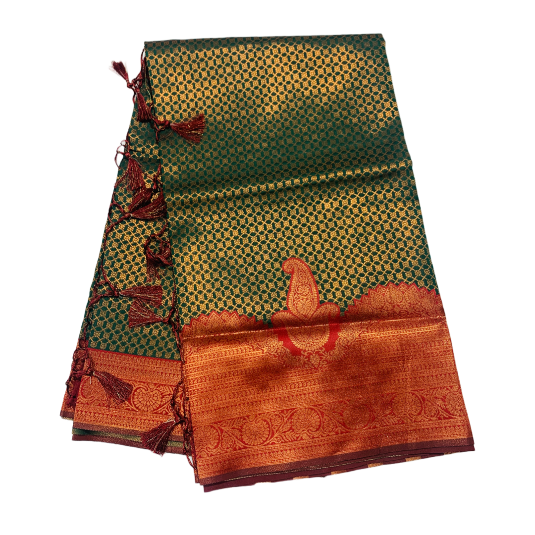 Dark Green shade saree with Maroon Border