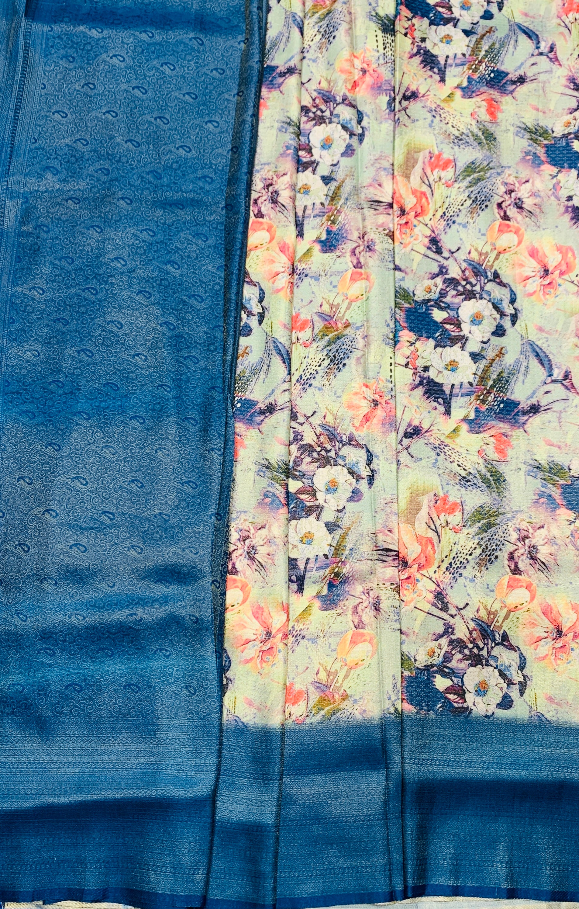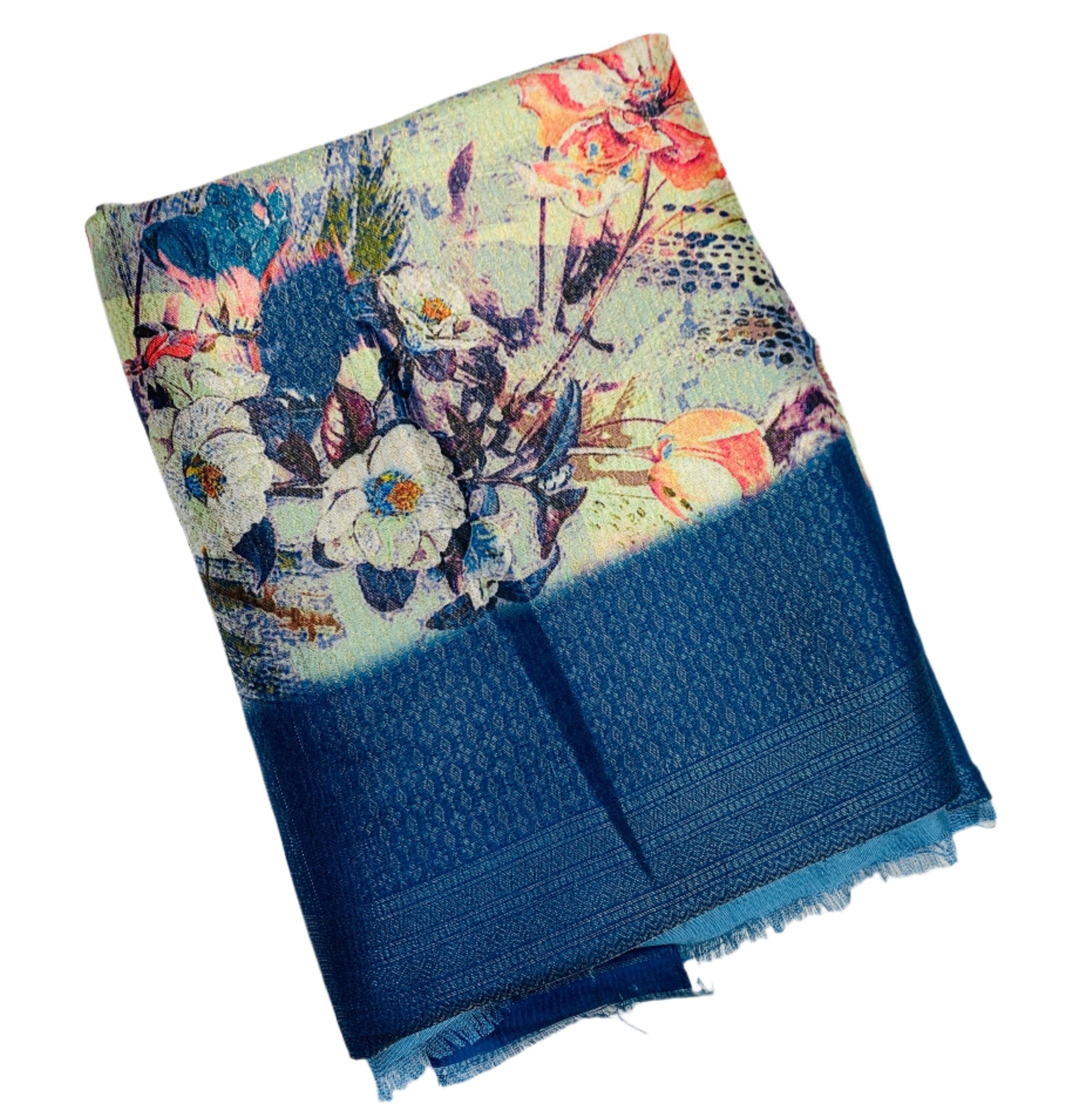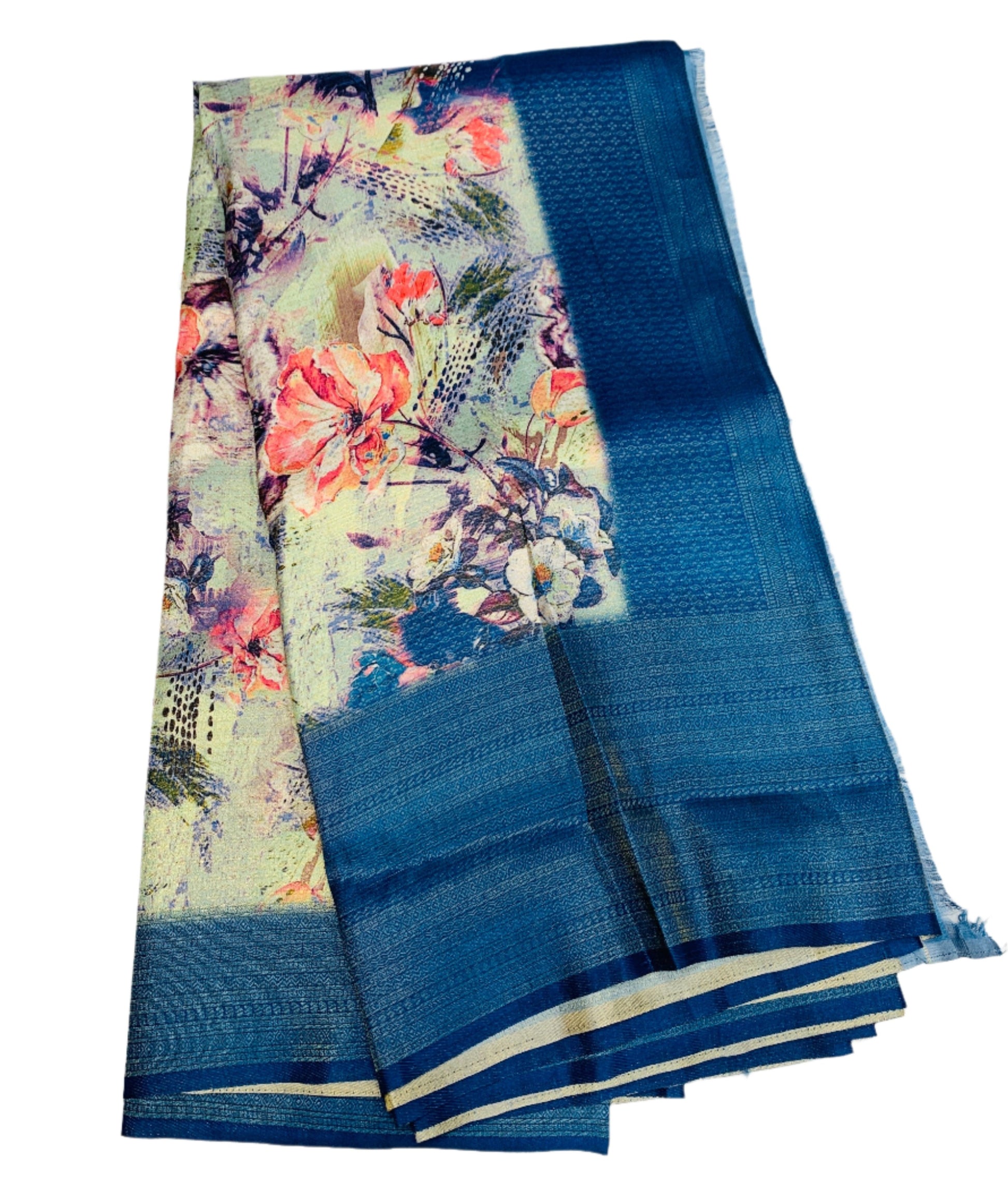 Digital Print Silk Saree Blue Colour with Floral Pattern