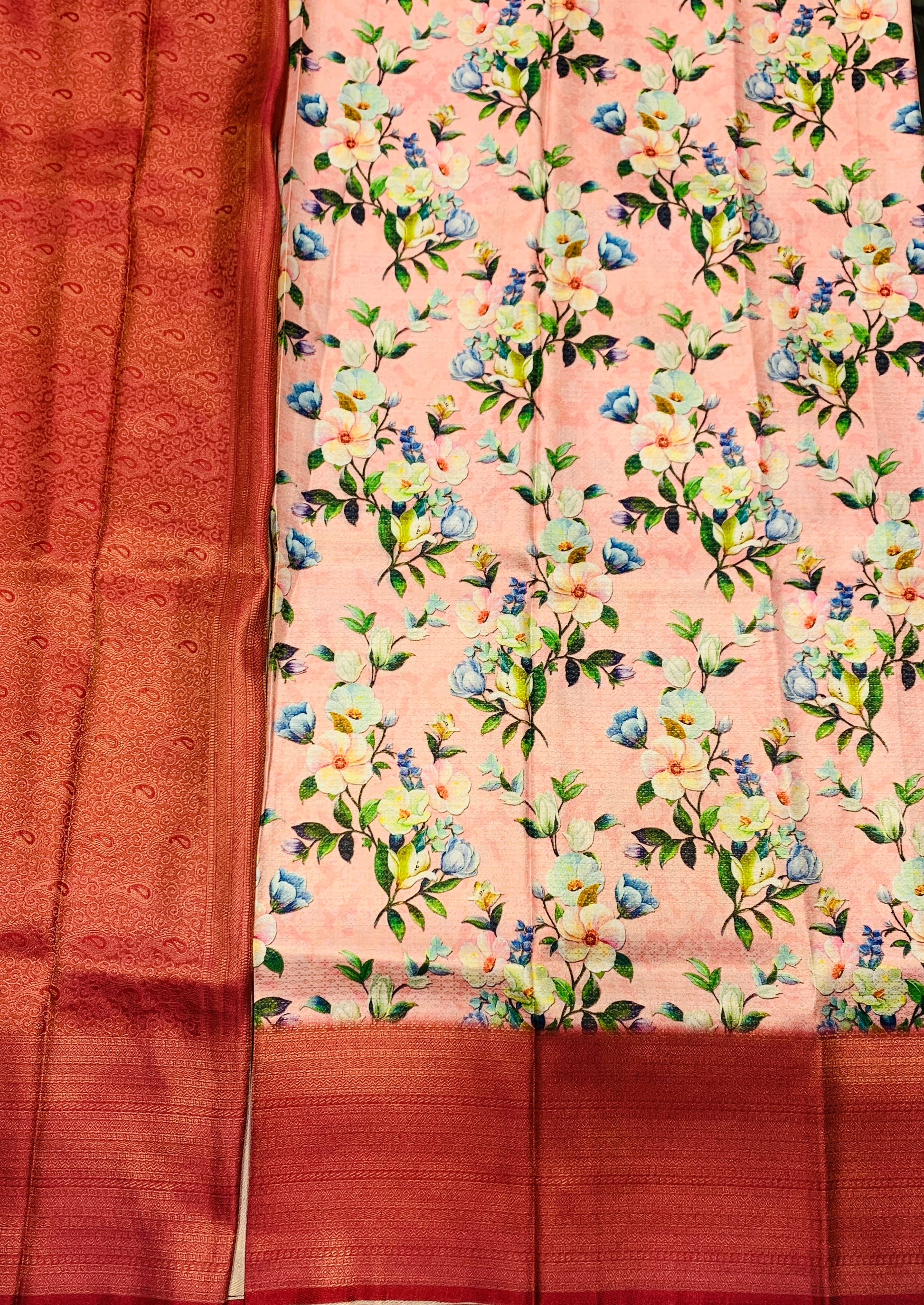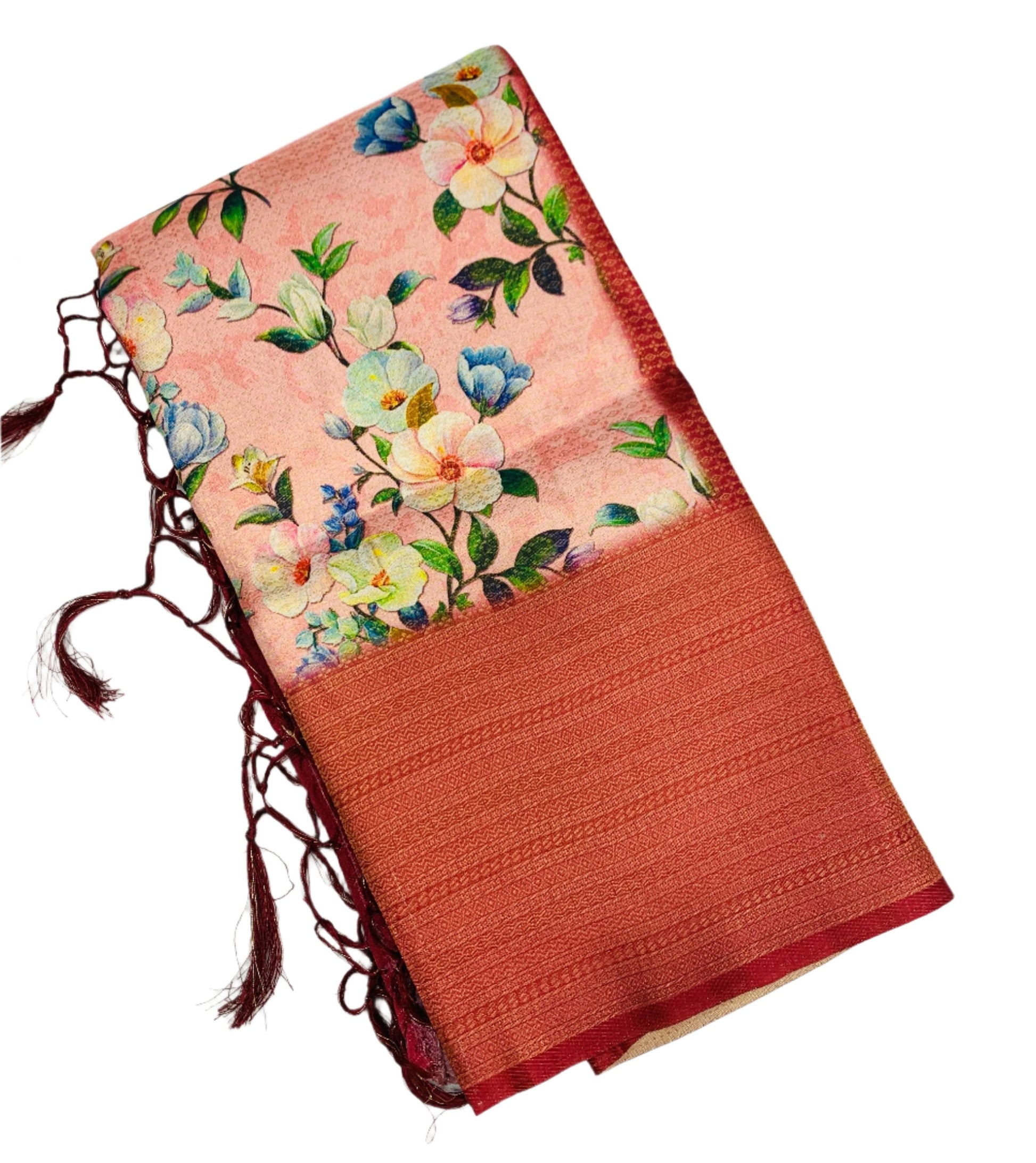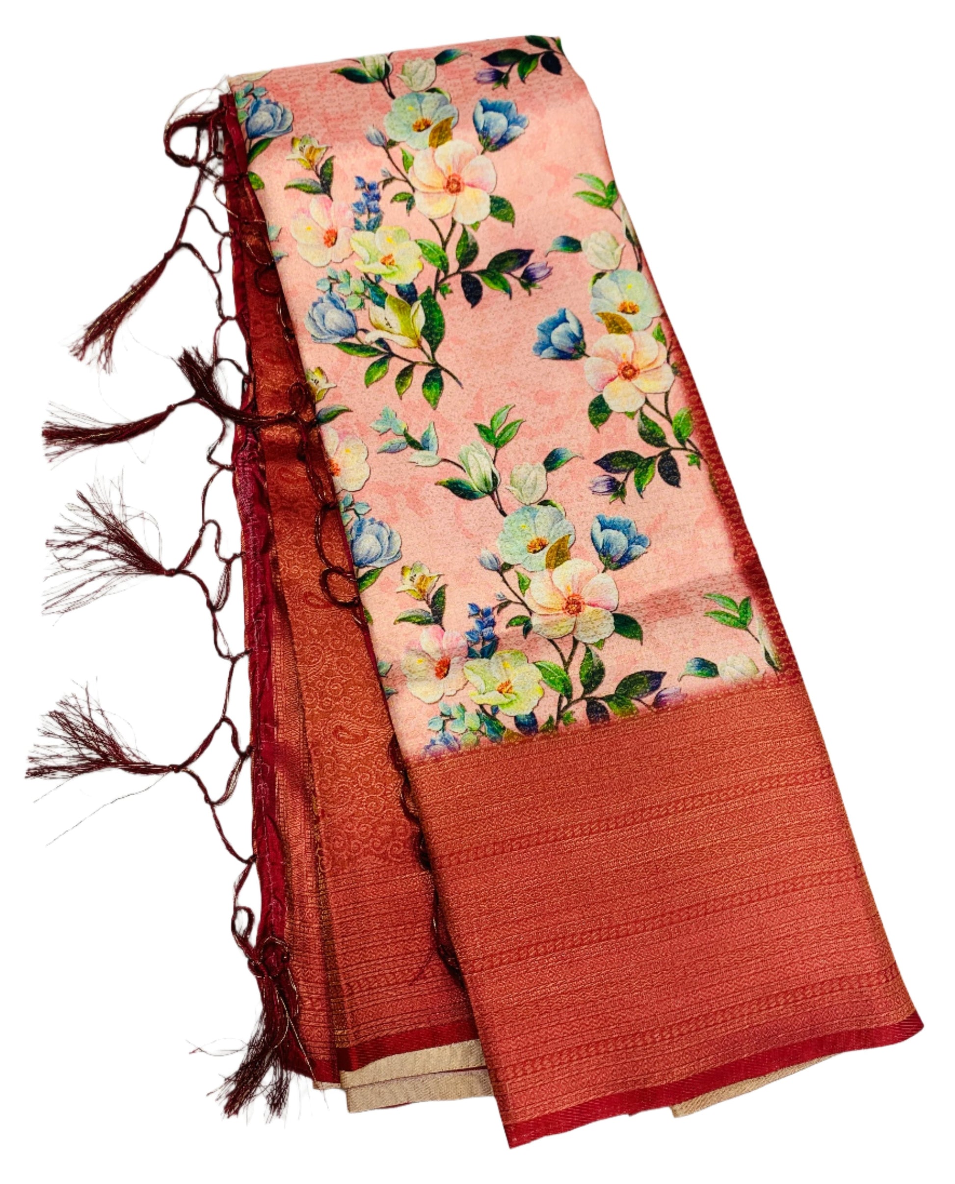 Digital Print Silk Saree Light Maroon Colour with Floral Pattern