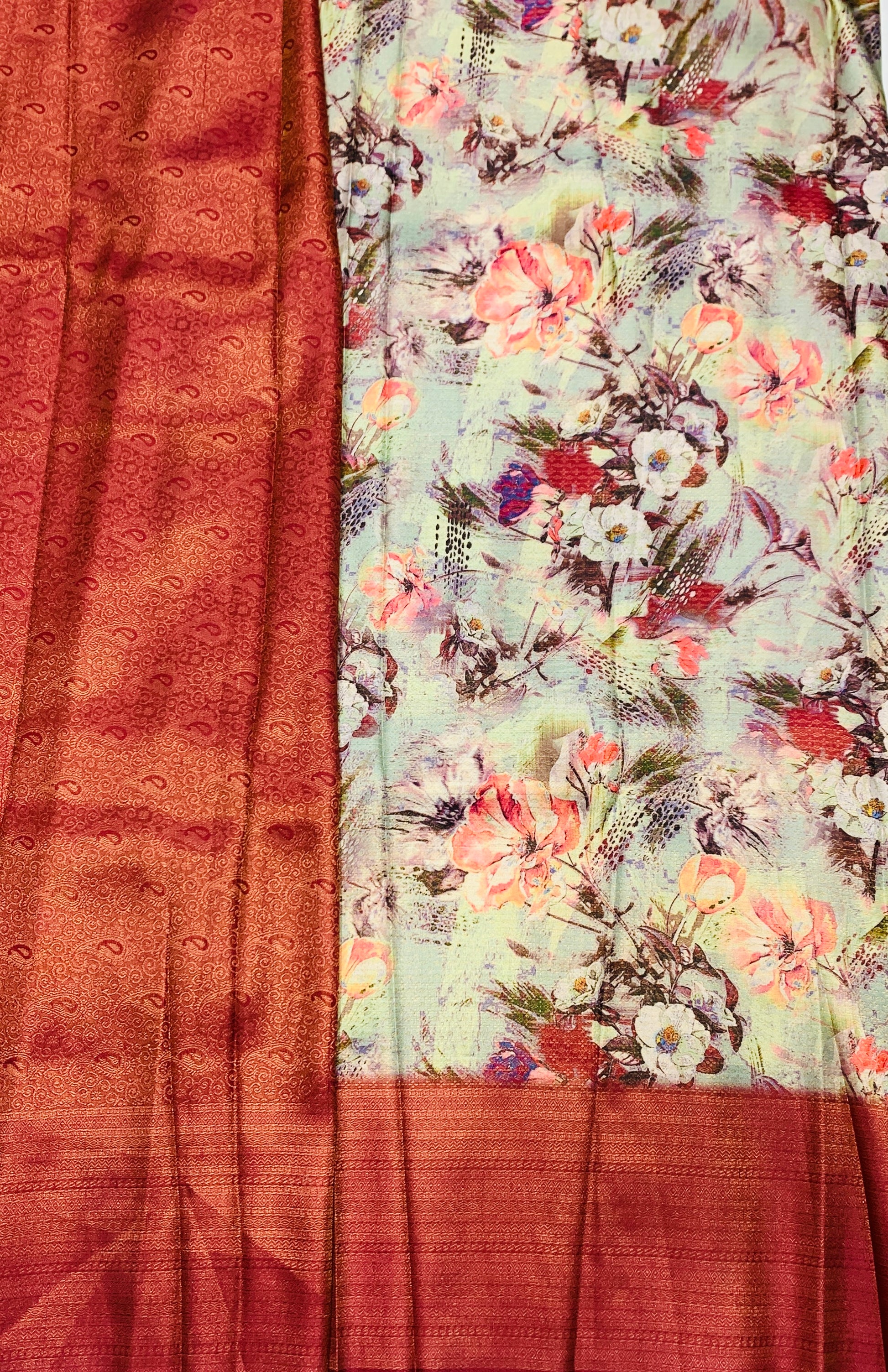 Digital Print Silk Saree Maroon Colour with Floral Pattern