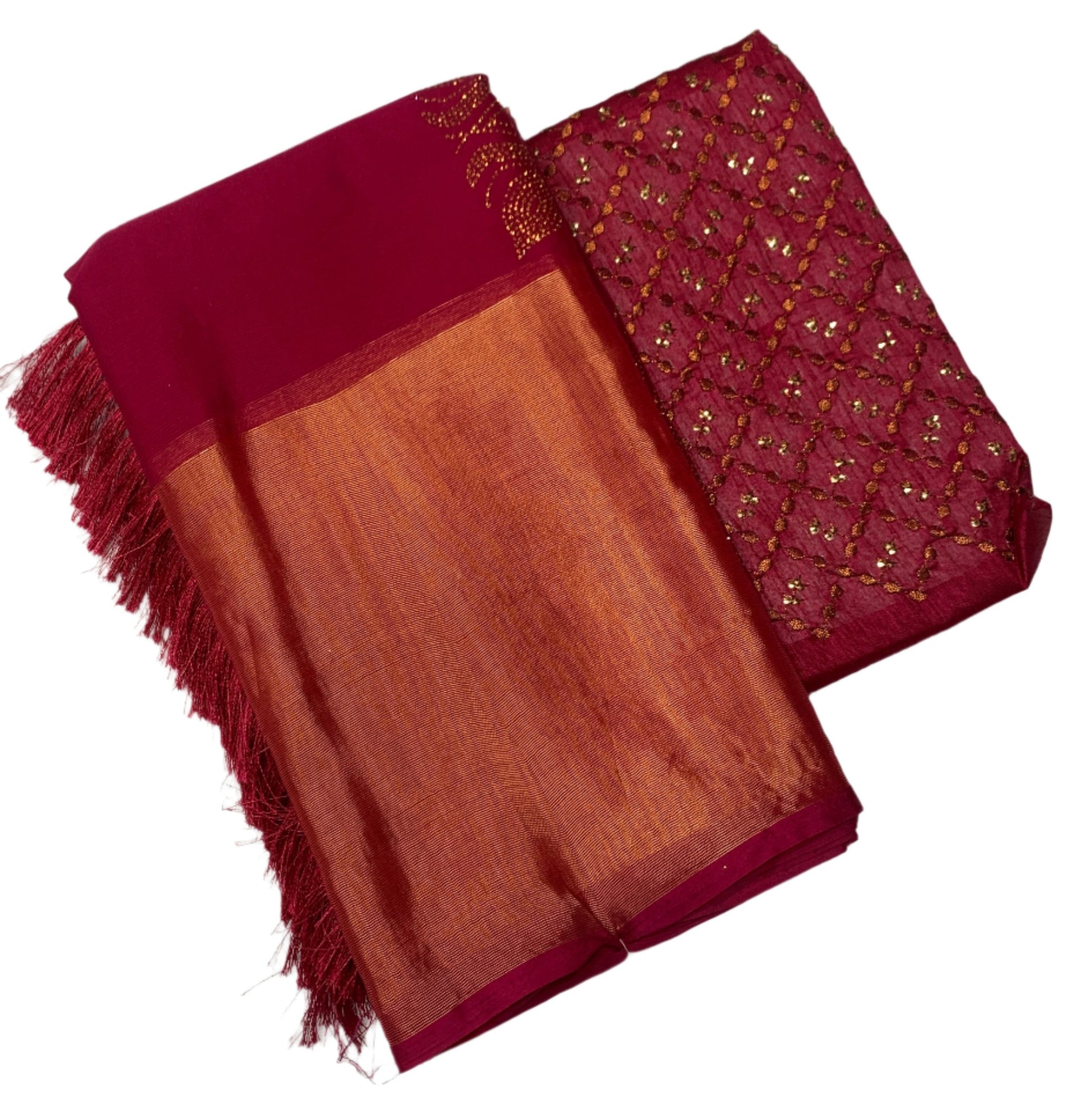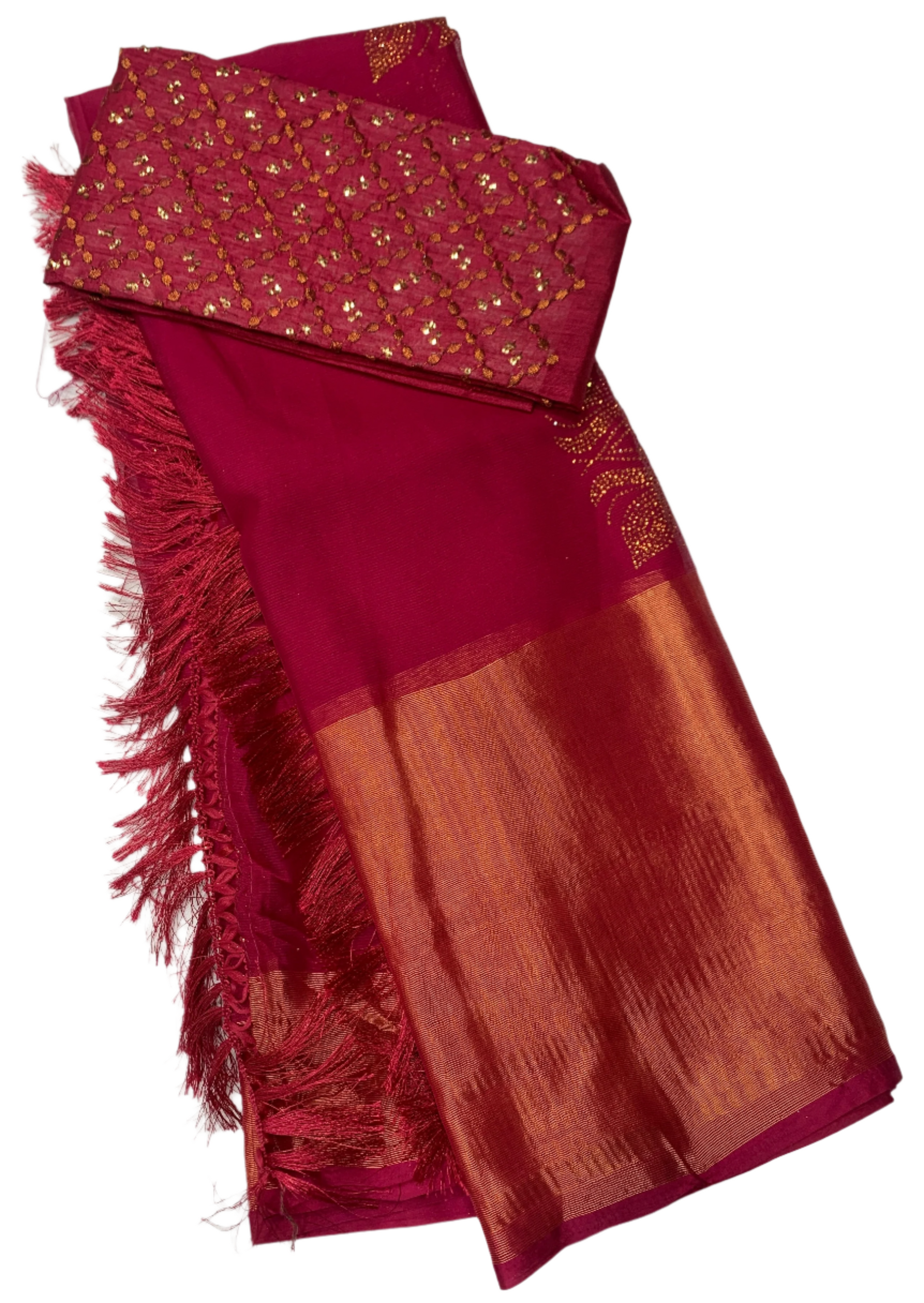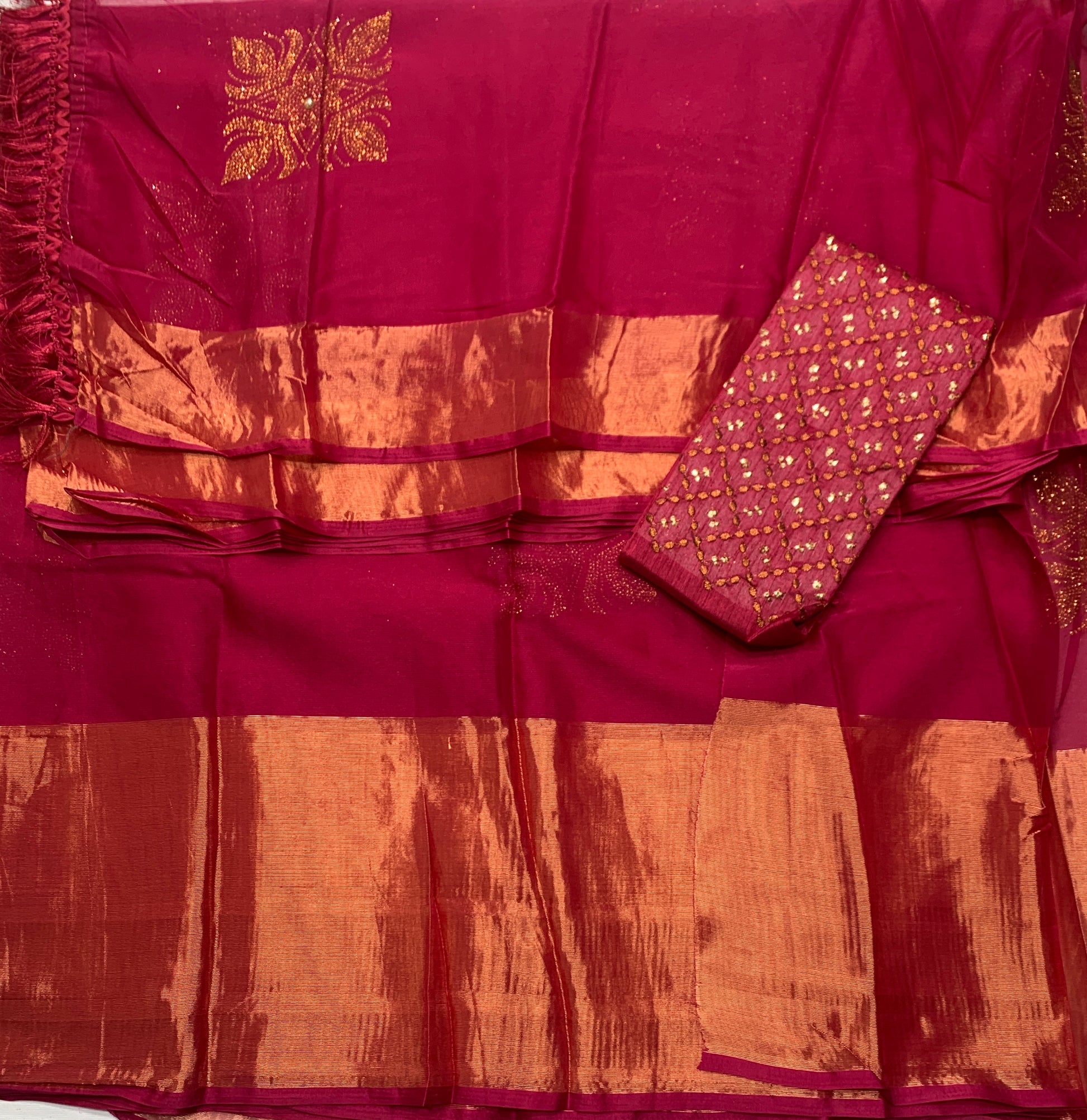 Easy to drape Pink Saree with Copper border. Light weight and easy to care.