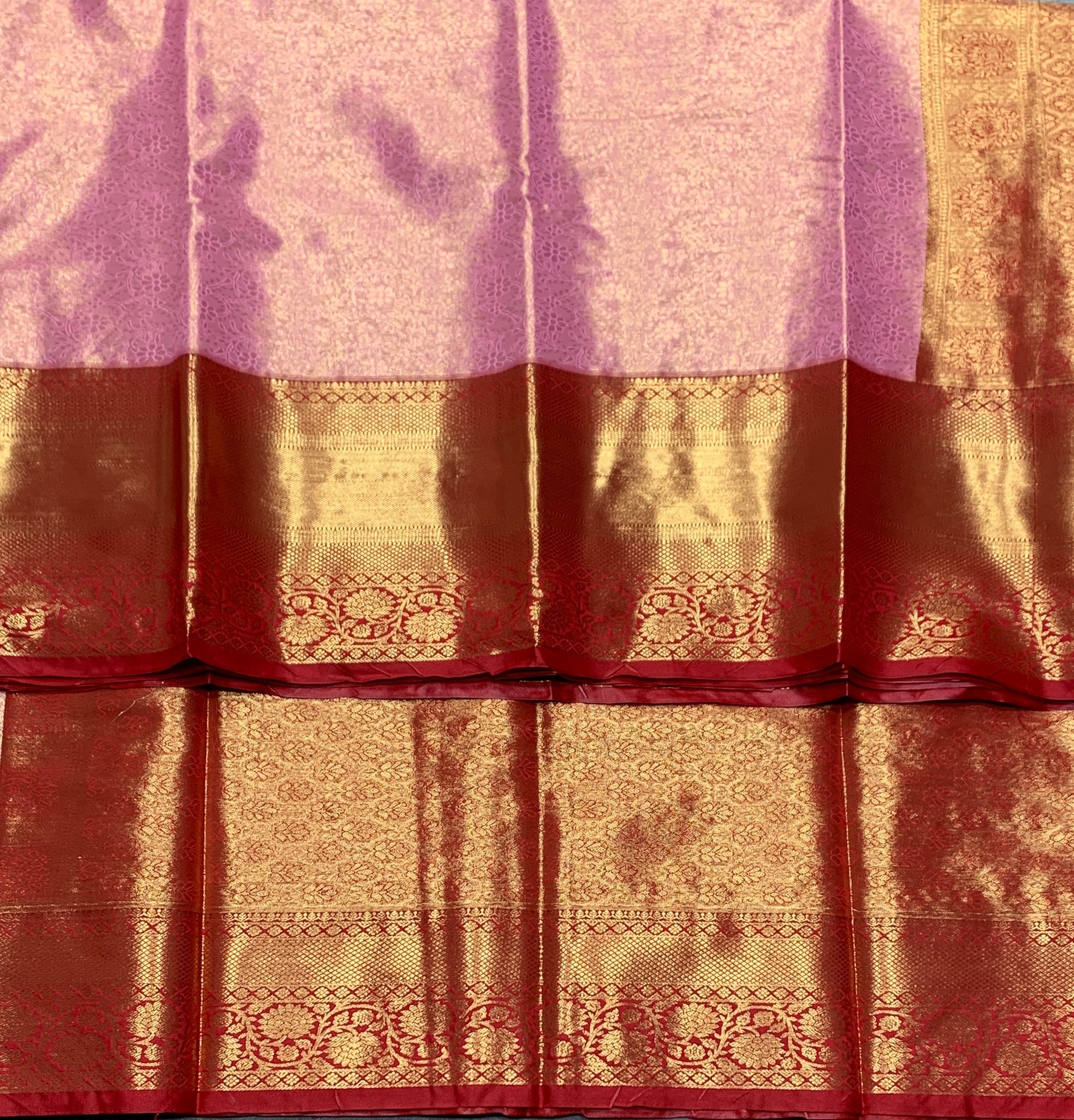 Fancy Tissue Saree Baby Pink Colour with Red Colour Floral Design Border