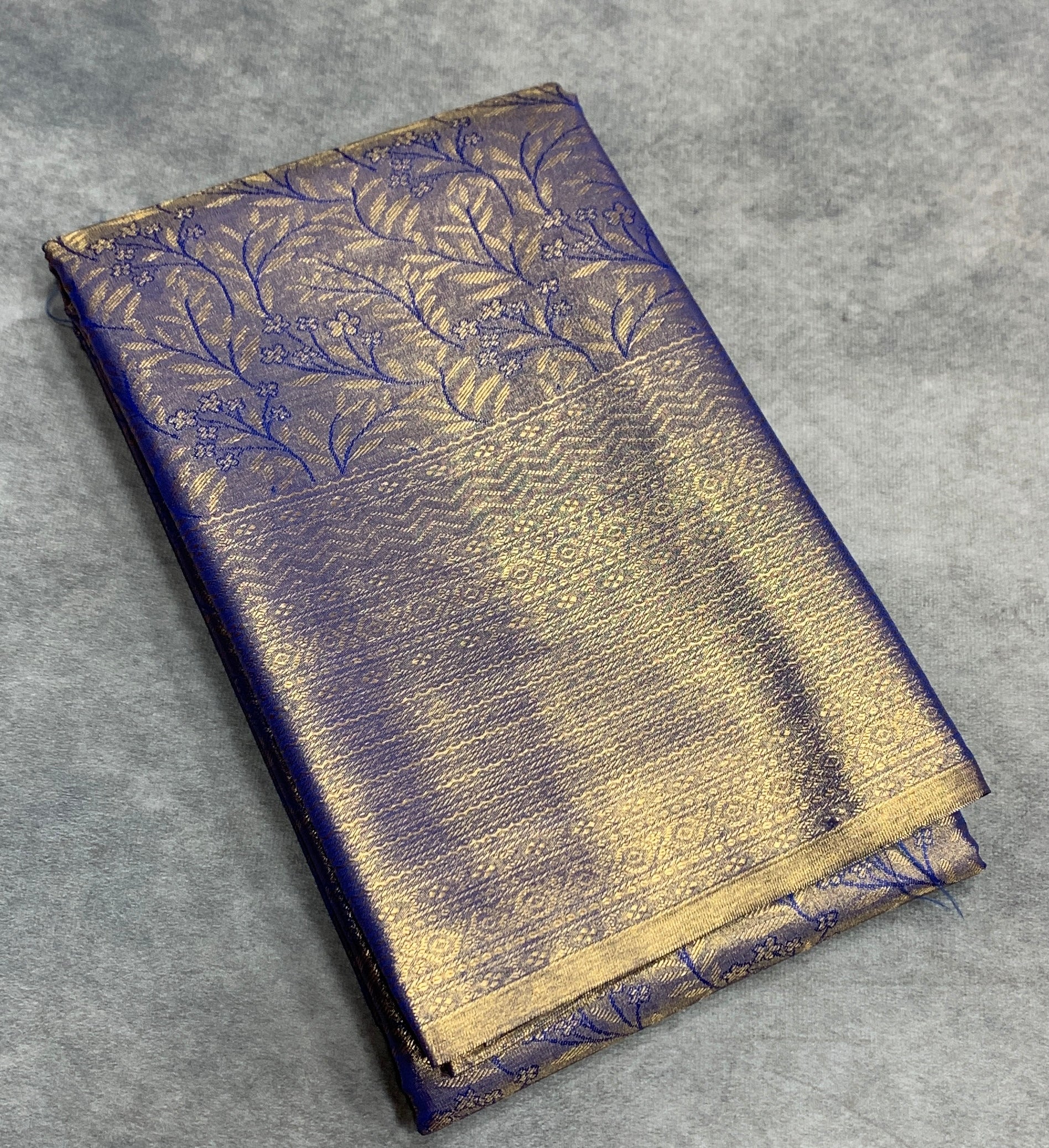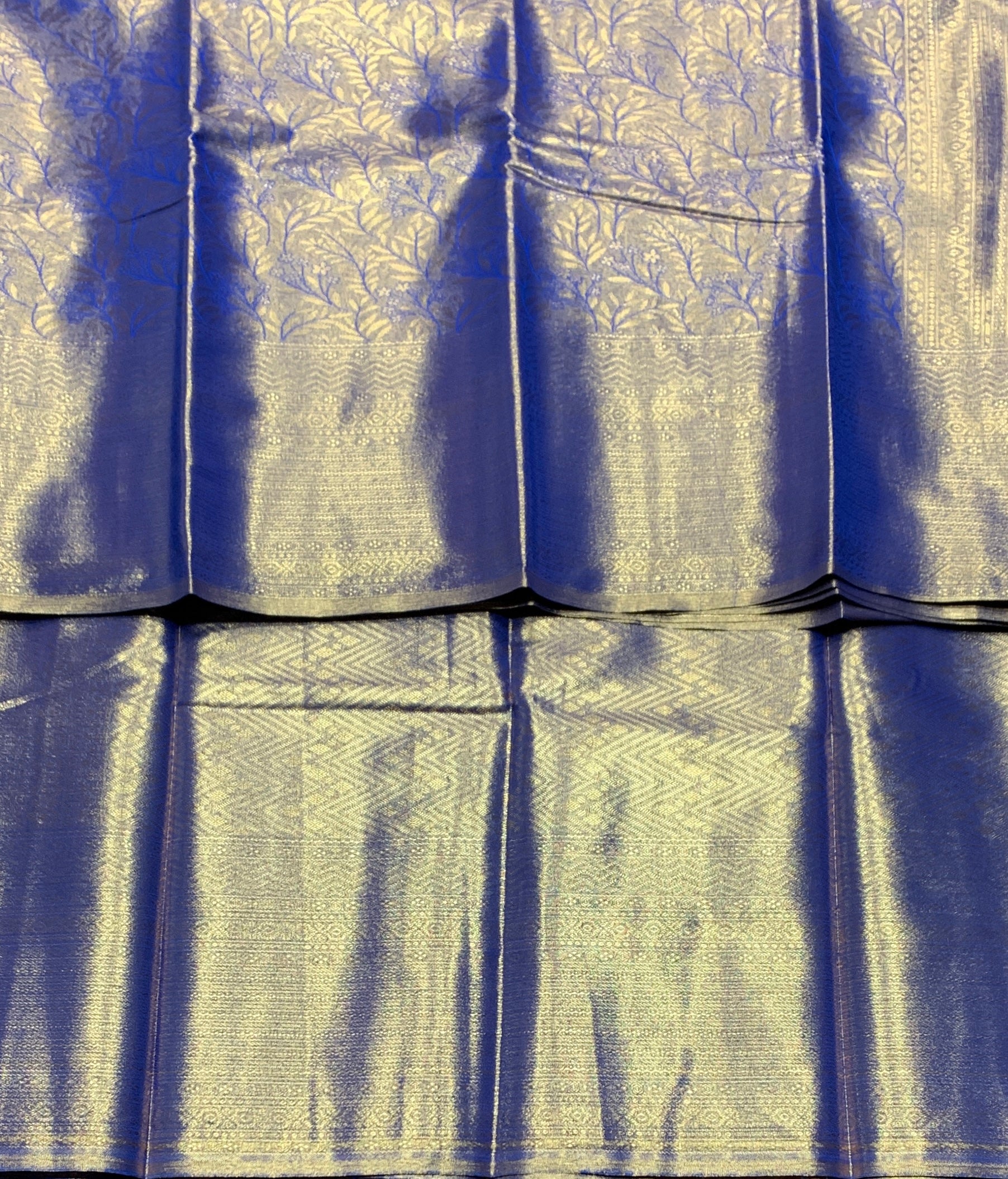 Fancy Tissue Saree Blue Colour with Self Design Border