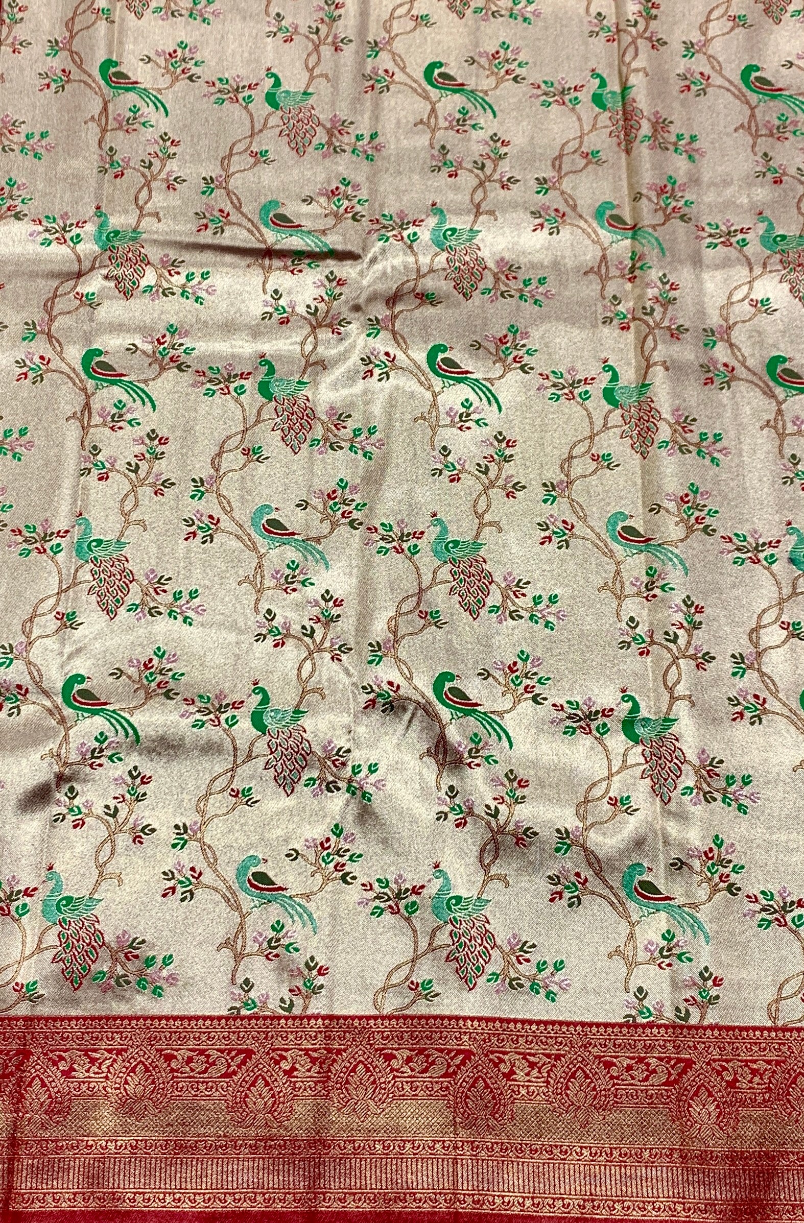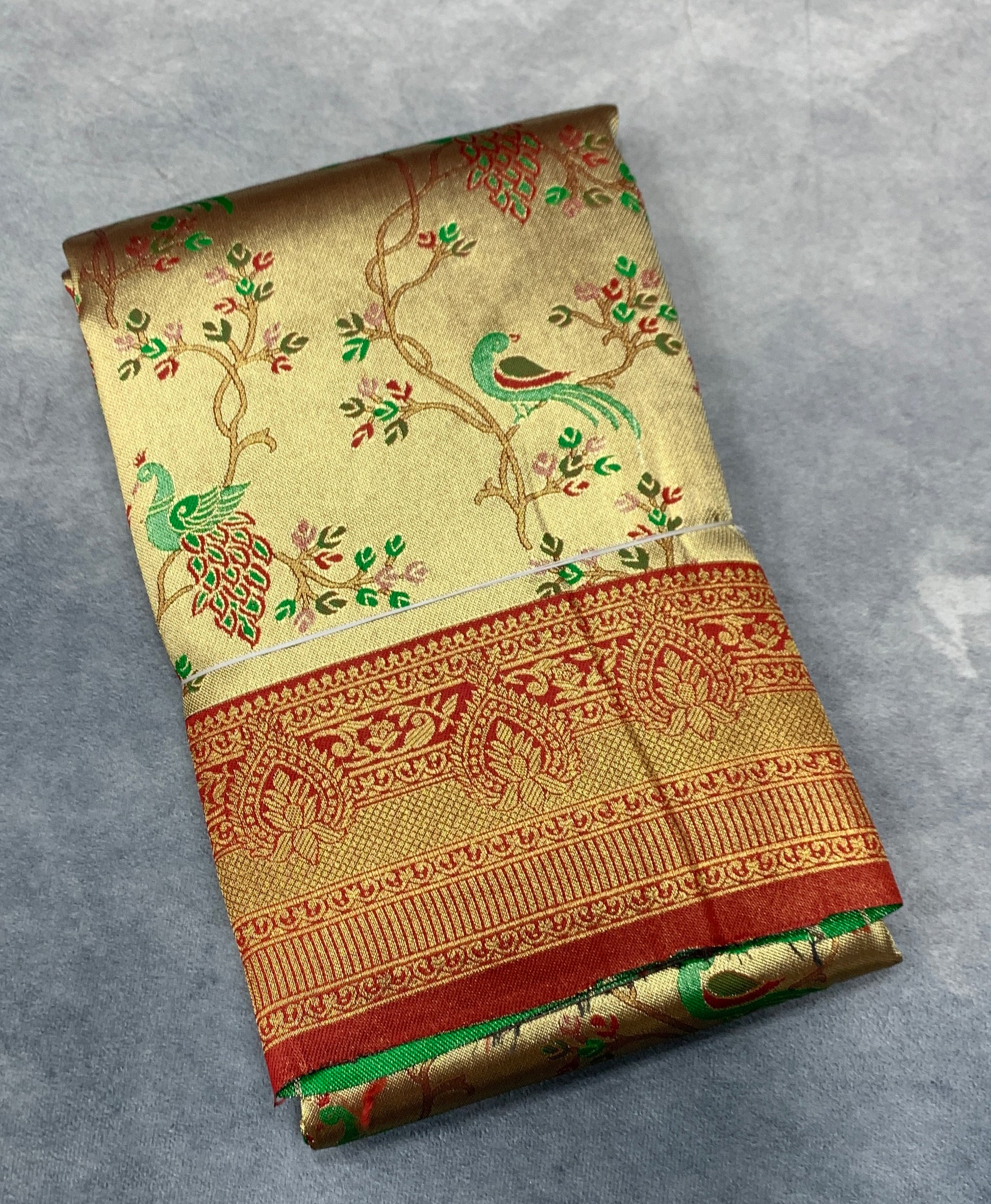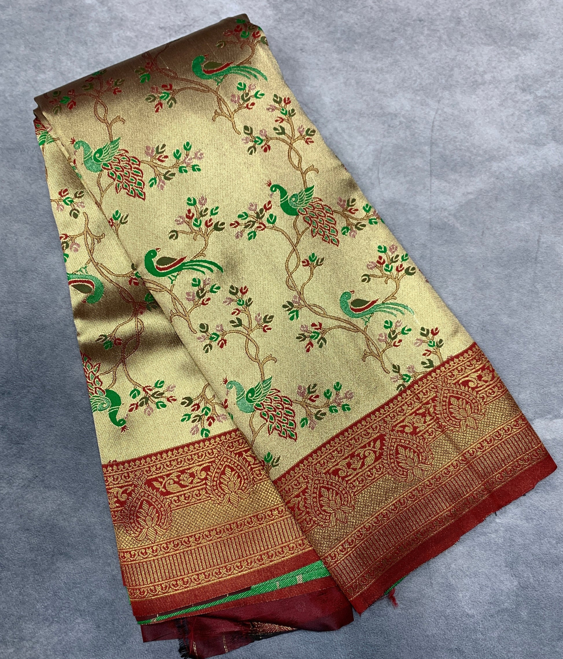 Fancy Tissue Saree Golden Colour with Maroon Border