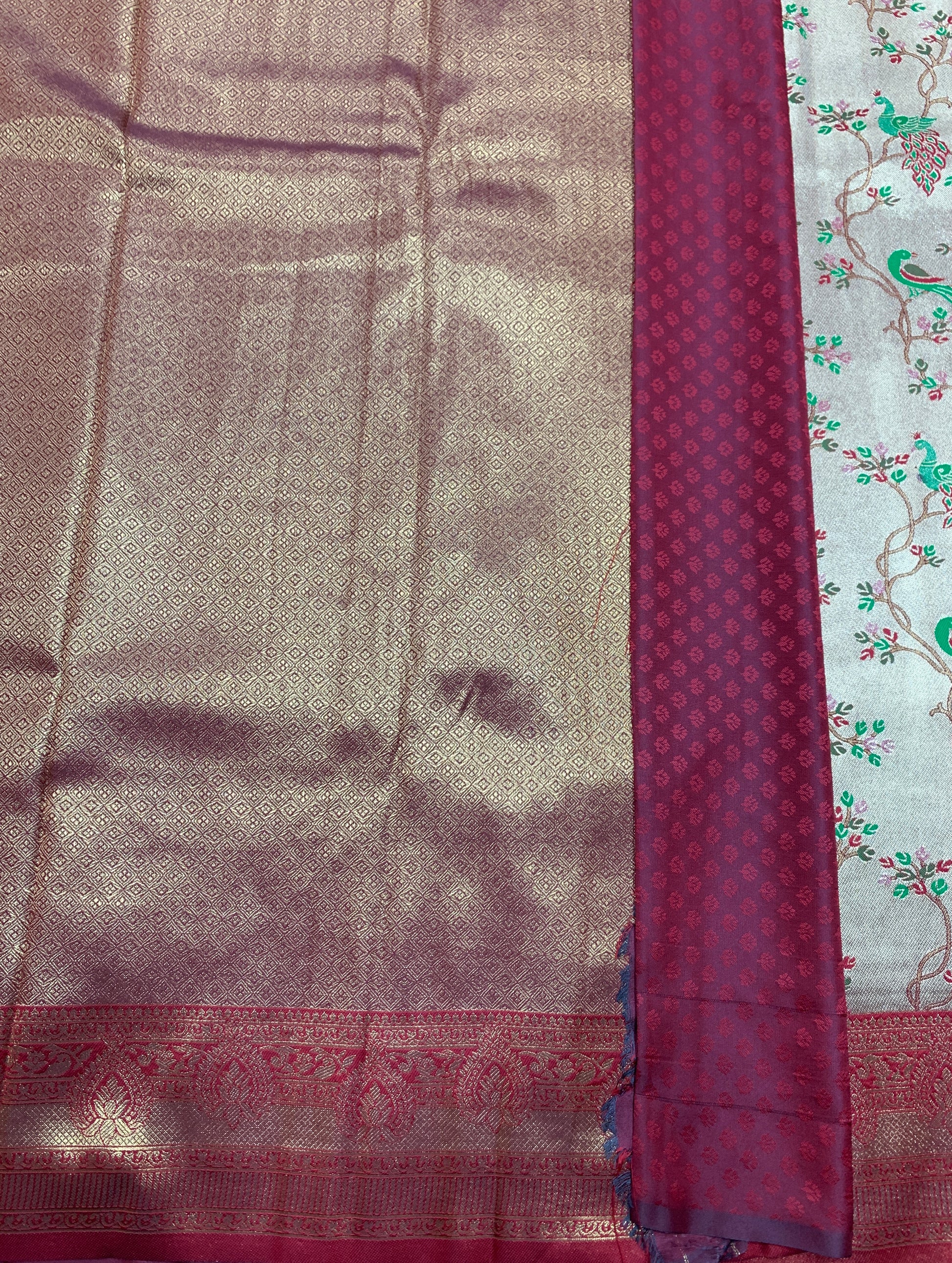 Fancy Tissue Saree Golden Colour with Maroon Border.