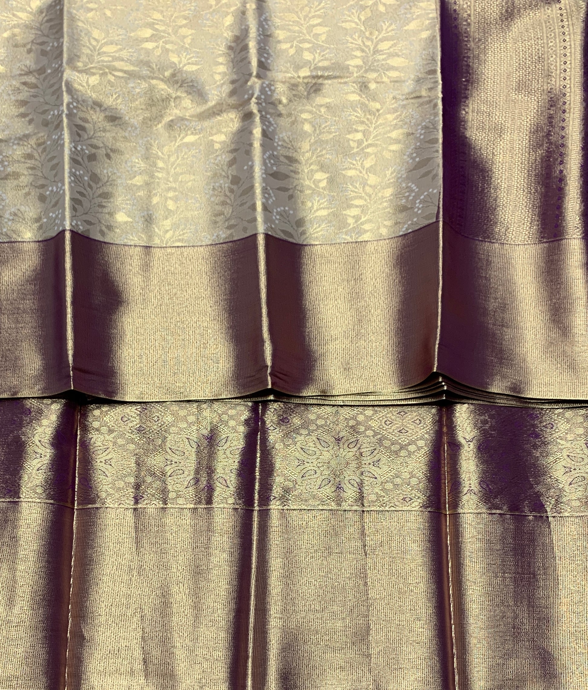 Fancy Tissue Saree Light Golden Colour with Copper Colour Border