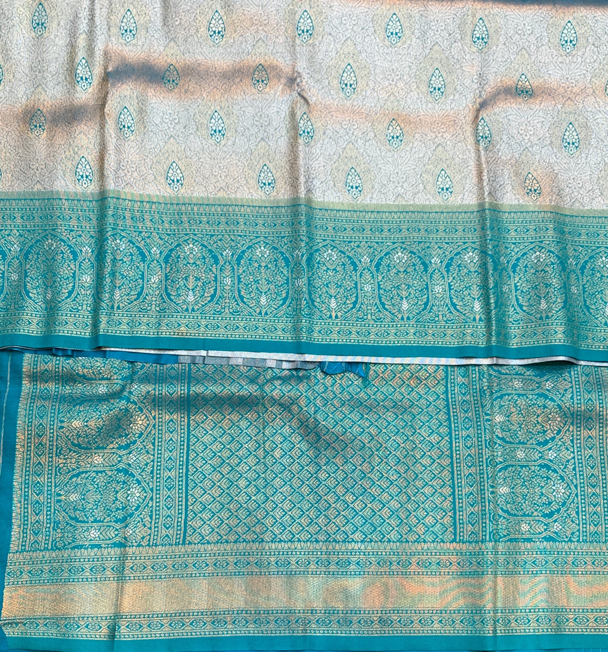 Fancy Tissue Saree Sapphire Golden Colour with Self Border