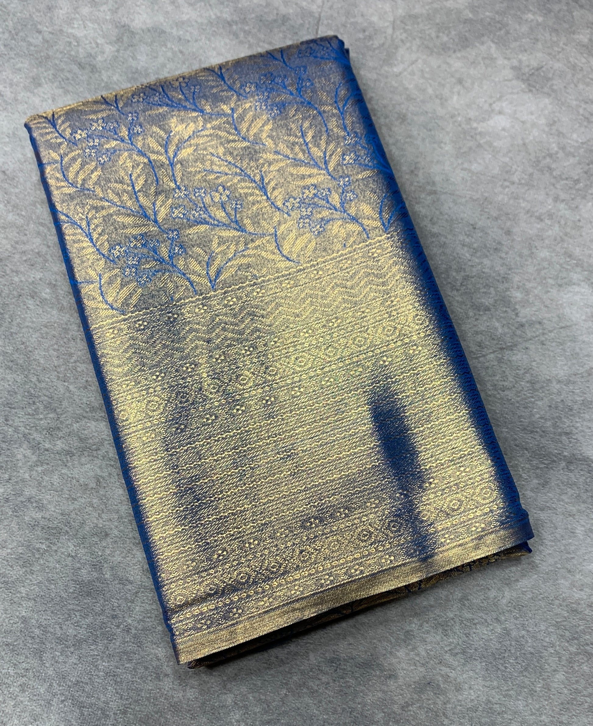 Fancy Tissue Saree Sky Blue Colour with Self Design Border