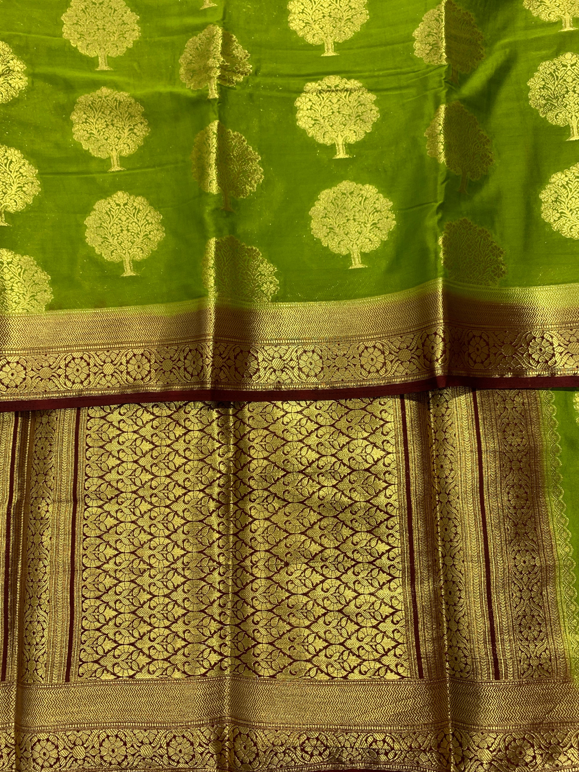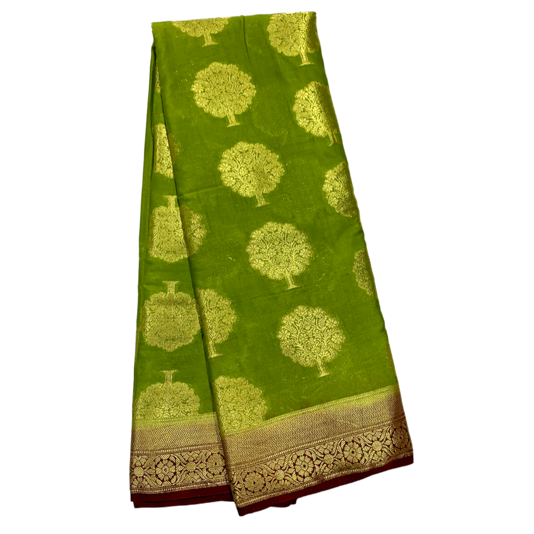 Crepe Saree Olive Green Colour with Medium Motifs.