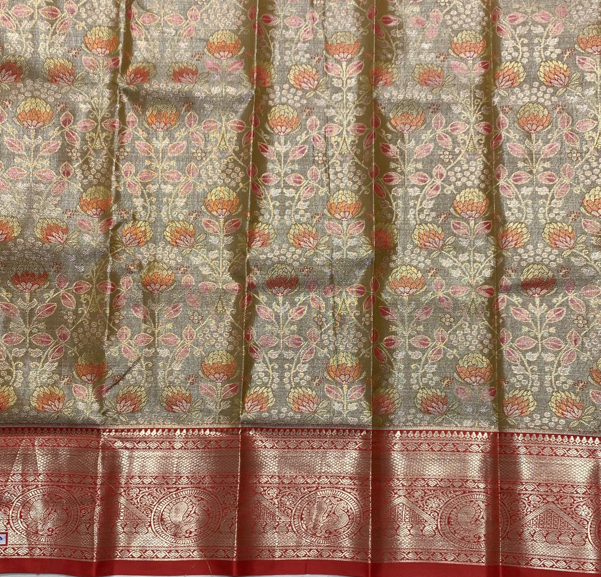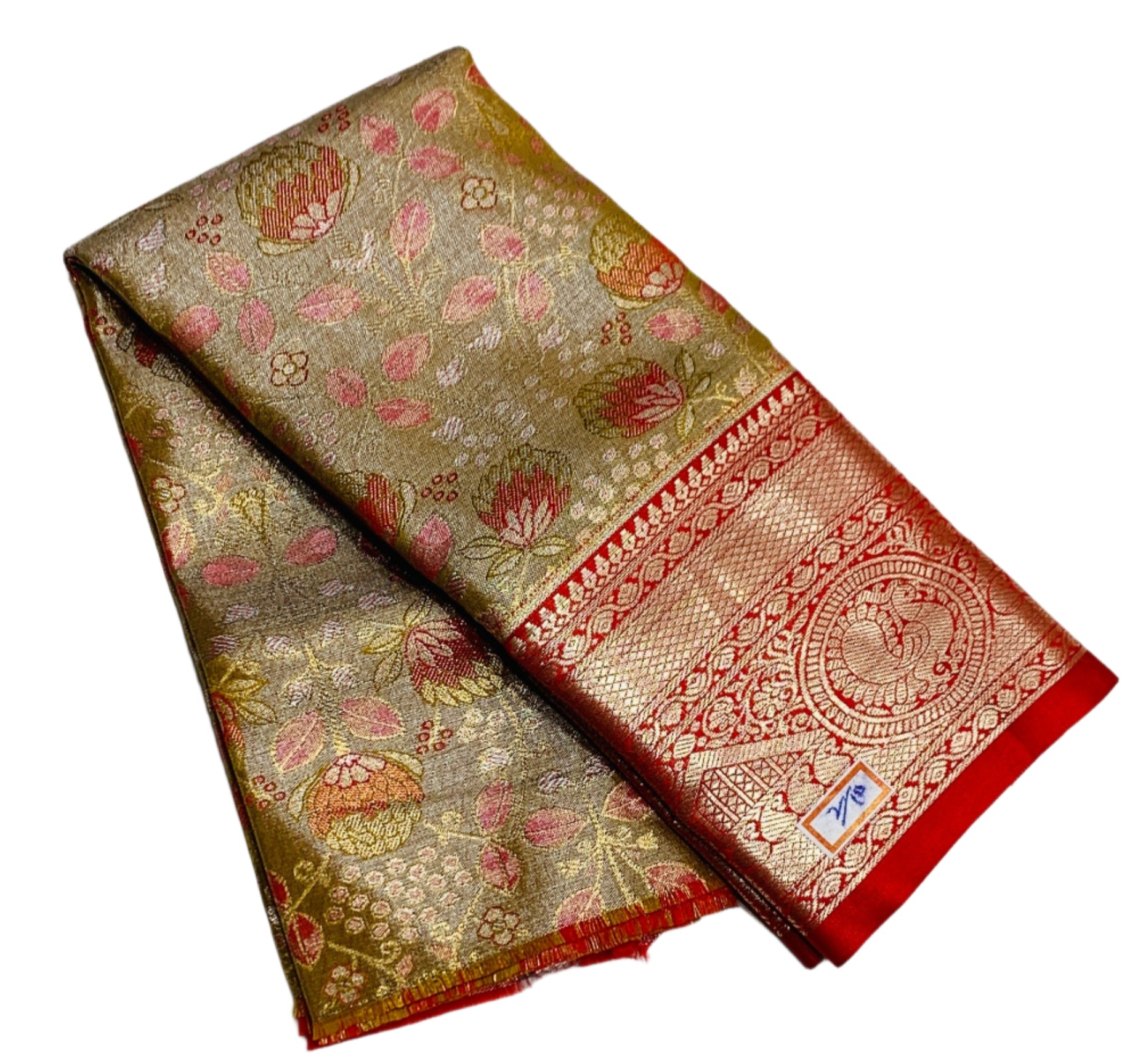 Golden Orange Shade Vegan Silk Kids Pattu Pavadai with Contrast Border unstitched Pattu Pavadai material for kids for age newborn to 2 Years