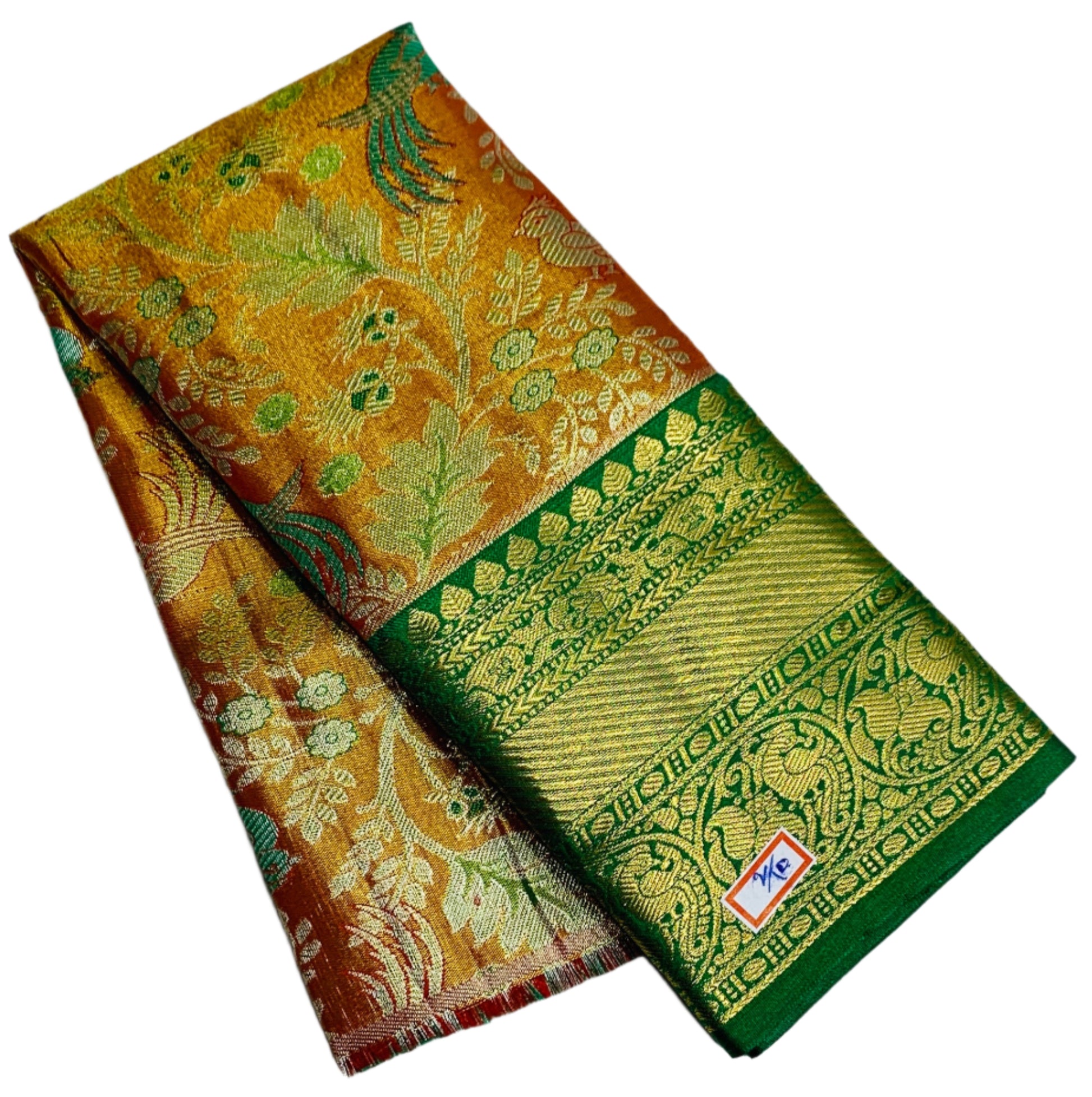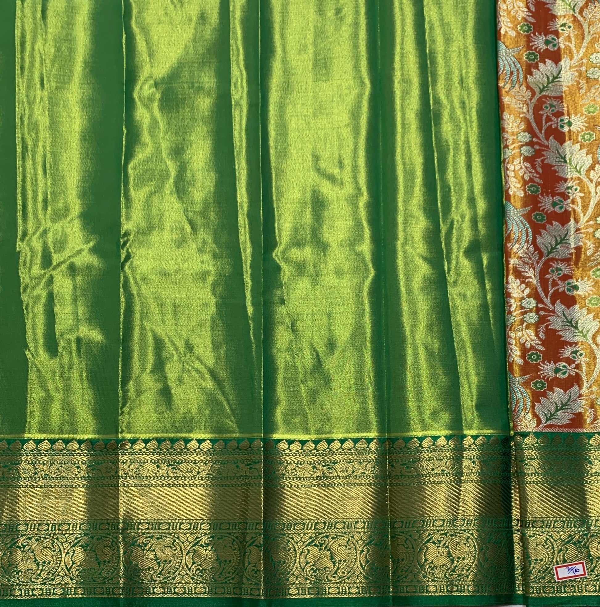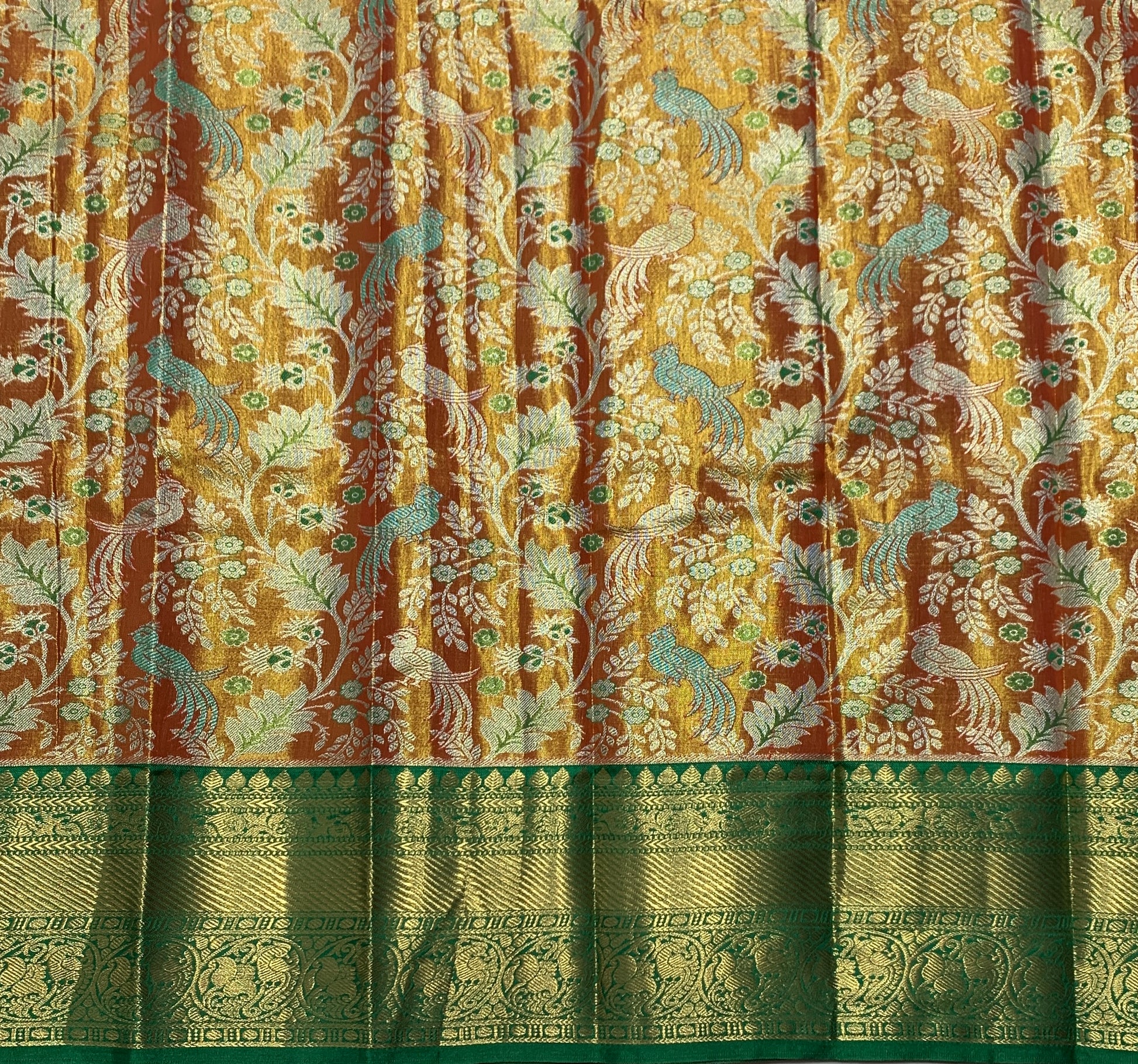 Golden Orange Shade Vegan Silk Kids Pattu Pavadai with Contrast Border unstitched Pattu Pavadai material for kids for age newborn to 2 Years