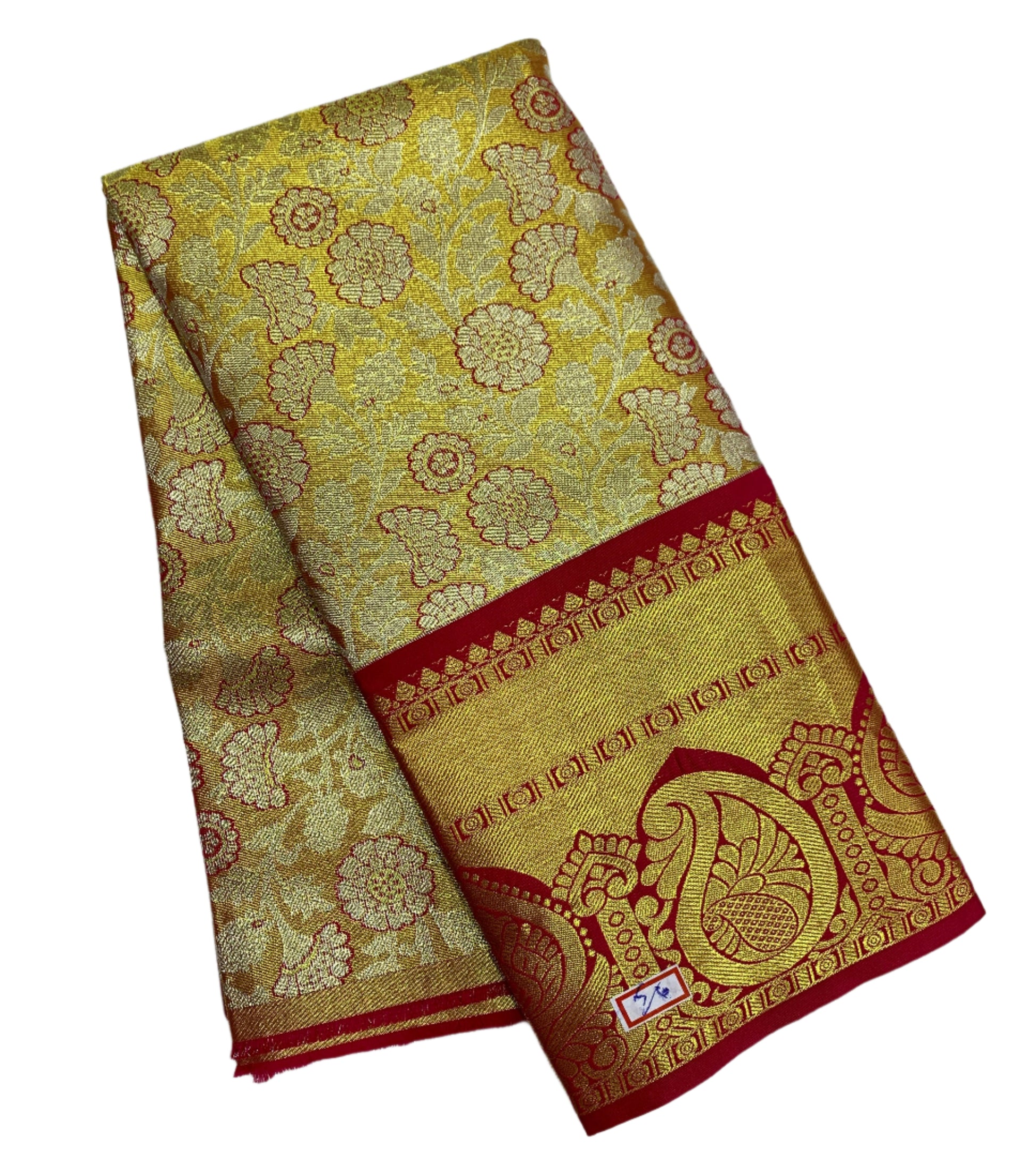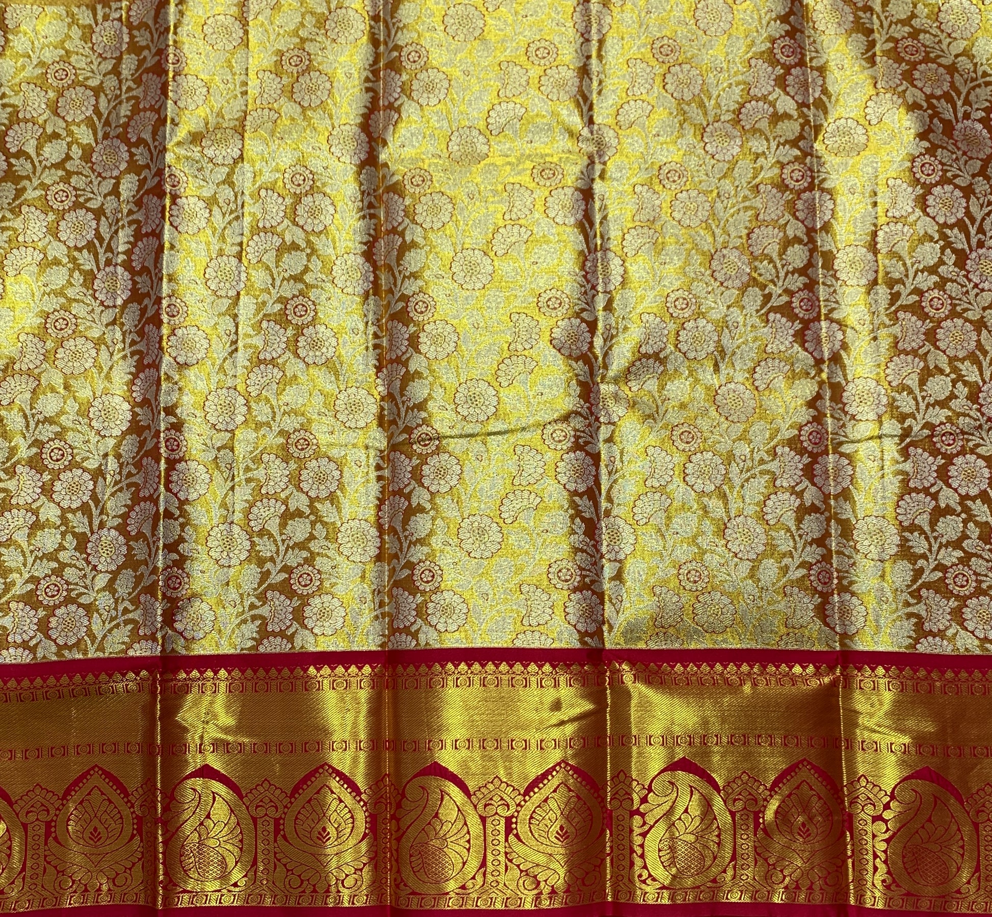 Golden Shade with Contrast Border Vegan silk unstitched Pattu Pavadai material for kids age 2 to 5